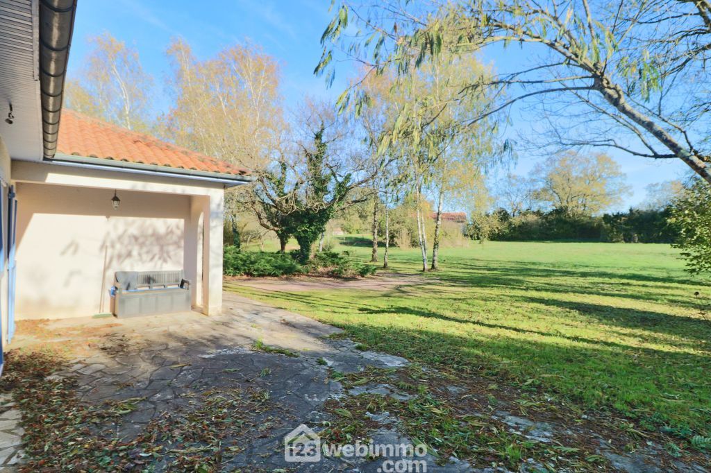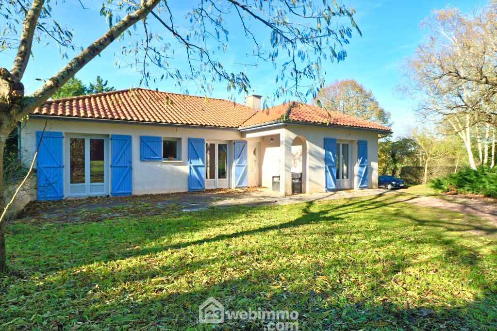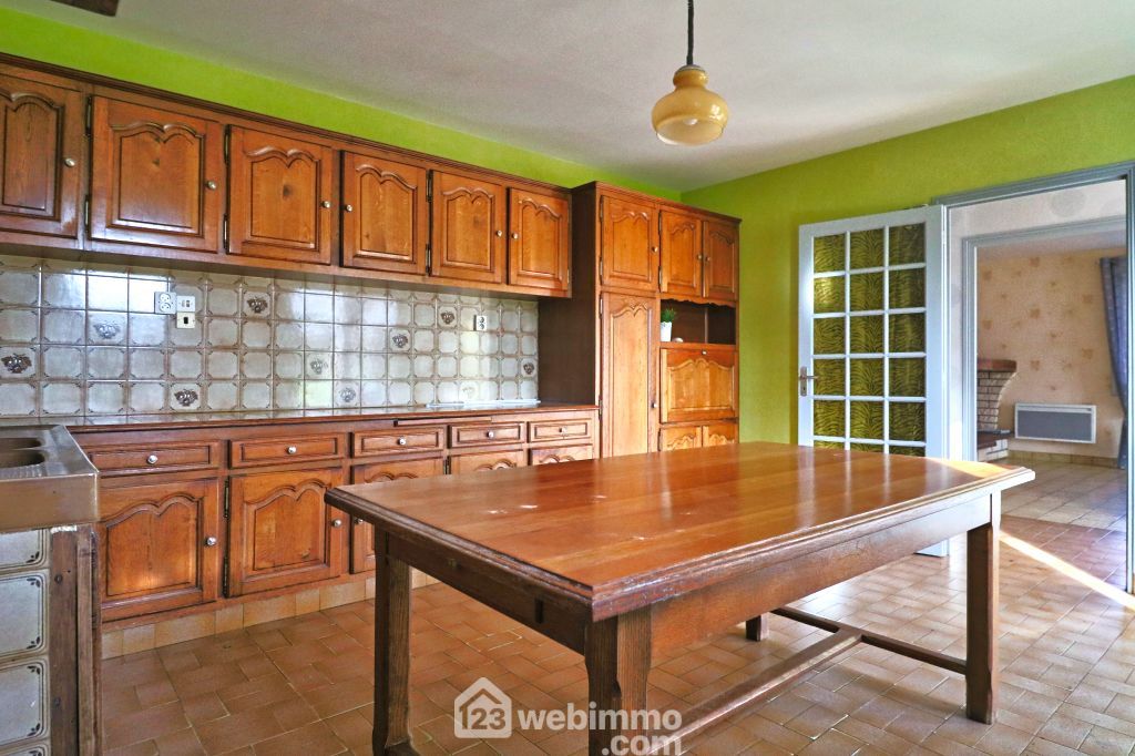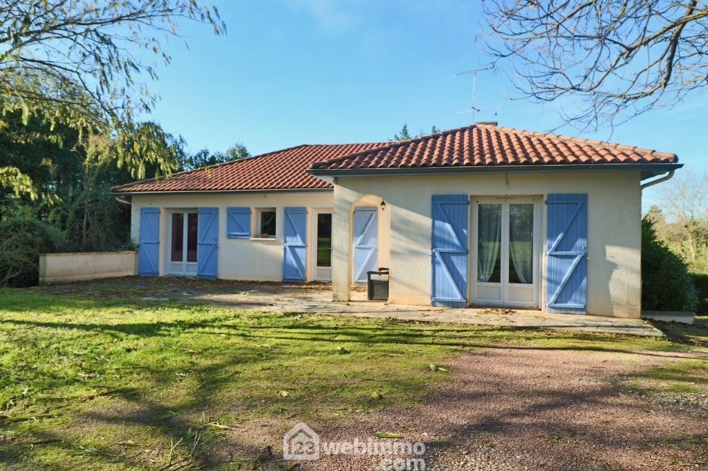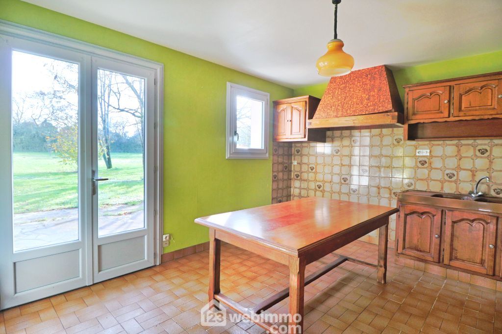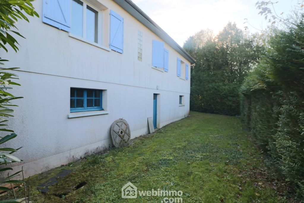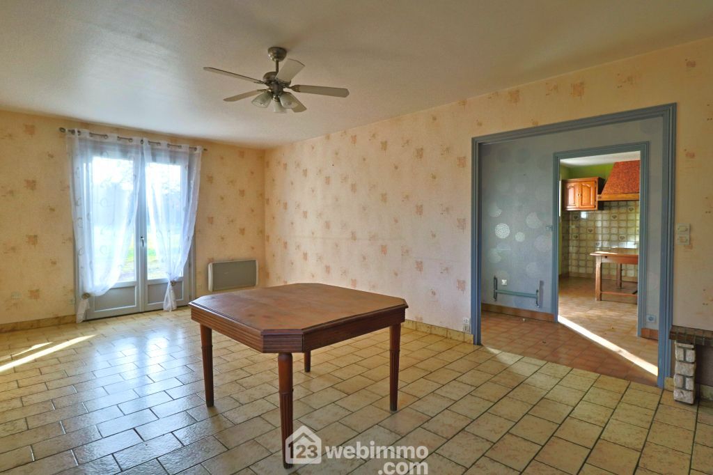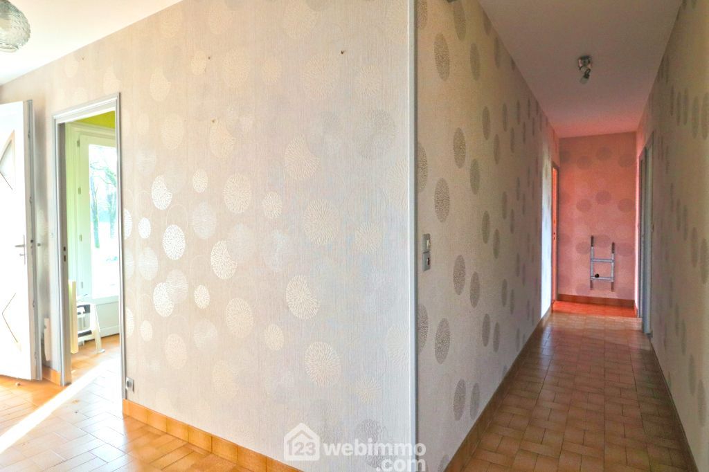 Maison avec vie de plain-pied, 118 m2 habitables, 4 pièces, 3 chambres, terrain de 3262 m2 arboré. Un beau potentiel à rafraîchir.