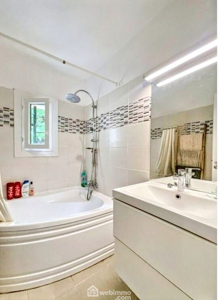À l’extérieur, un jardin paysager de 580 m², joliment arboré, accueille une piscine chauffée, un espace cuisine d’été et une buanderie indépendante, le tout sans vis-à-vis.