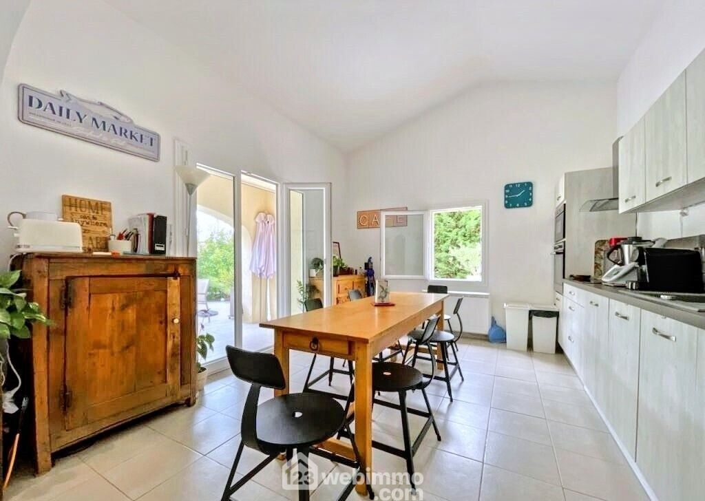 La villa se compose d’une entrée accueillante, d’un vaste séjour lumineux avec cheminée insert et espace salle à manger, d’une cuisine ouverte entièrement équipée, d’une buanderie indépendante, d’une salle de bains, de WC séparés et de trois chambres de plain-pied.