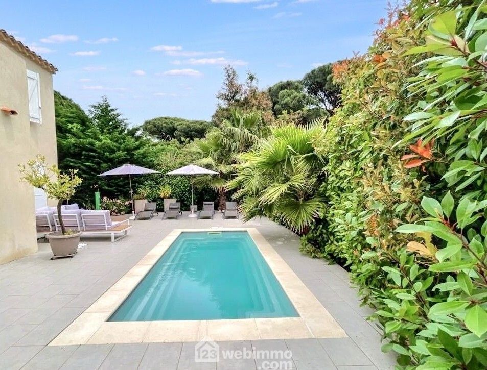 Sainte-Maxime, au cœur d’un domaine privé avec tennis et piscine, belle villa 6 pièces avec jardin paysager, piscine chauffée.