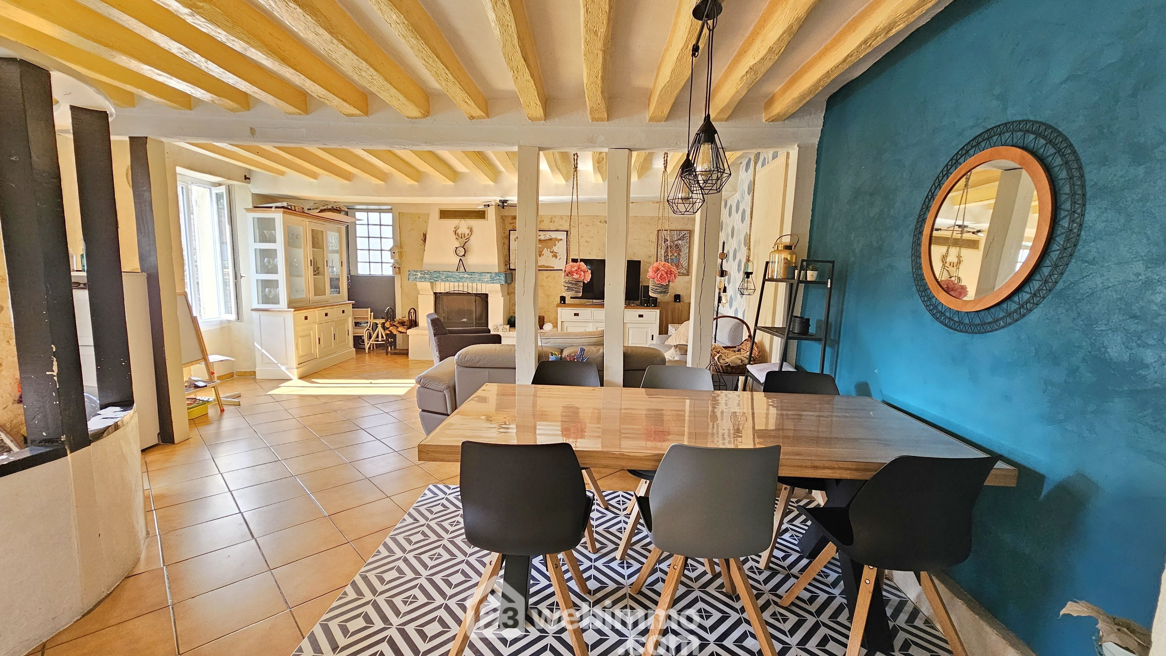 Au Nord de Milly-la-Forêt, une belle longère de 120 m² hab sur un terrain de 604 m² clos. Deux dépendances attenantes. Beaux volumes.