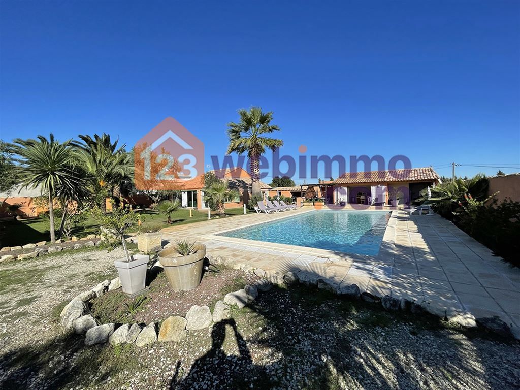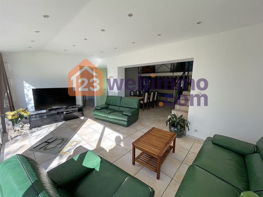 Maison de 120m2 sur 1622m2 de terrain avec piscine dans quartier résidentiel. Bon état. Garage possible. Visite virtuelle disponible.