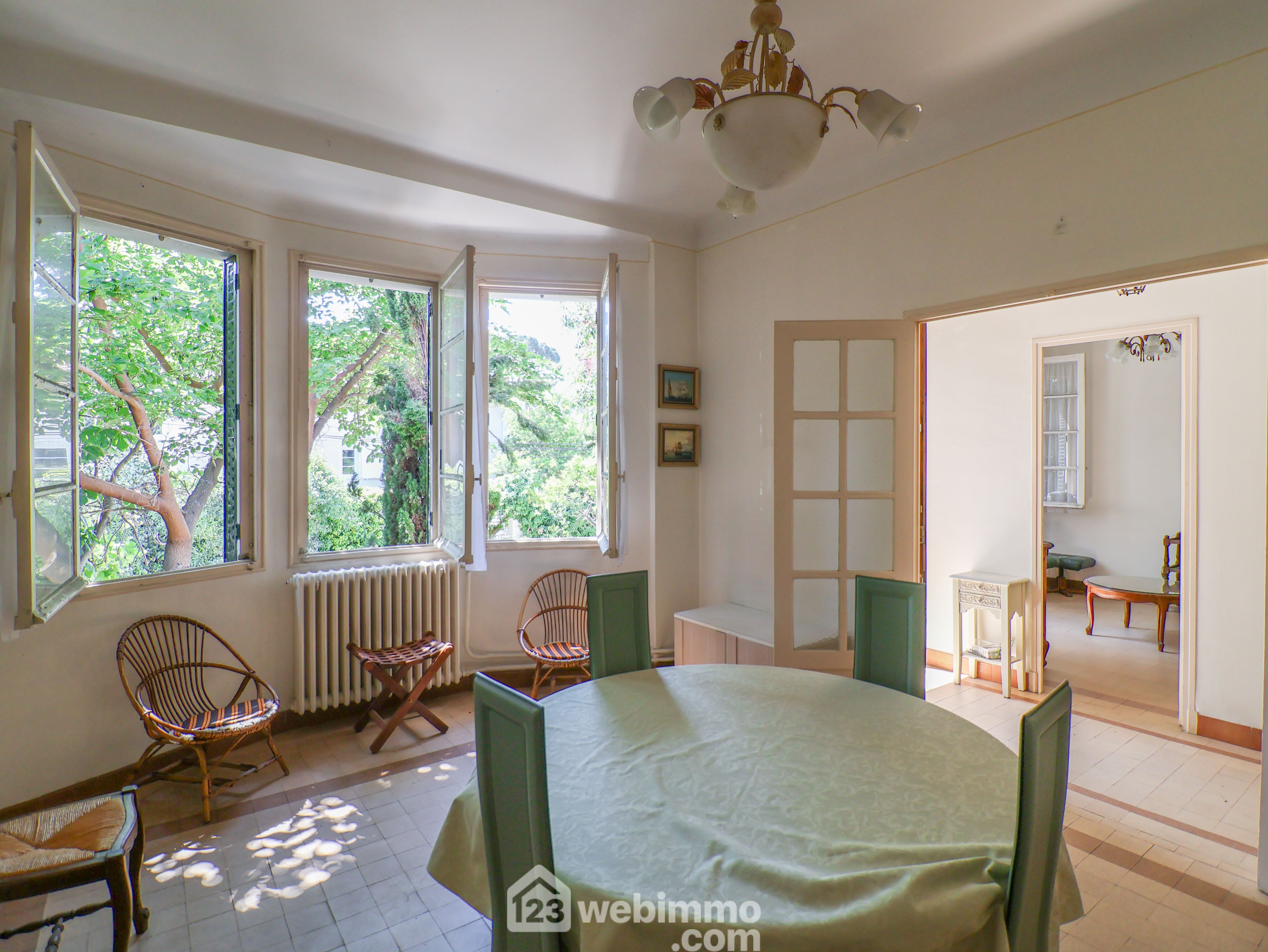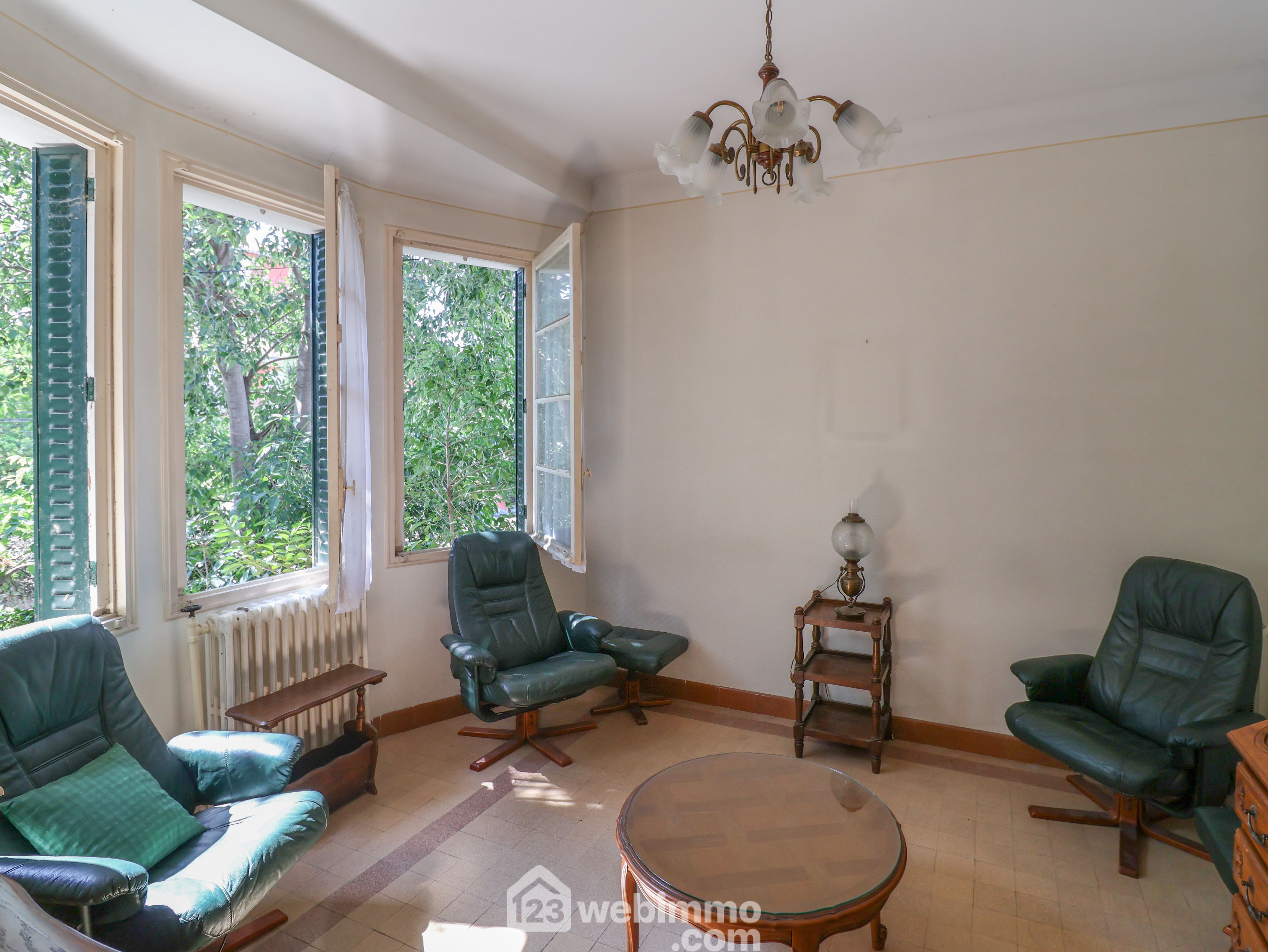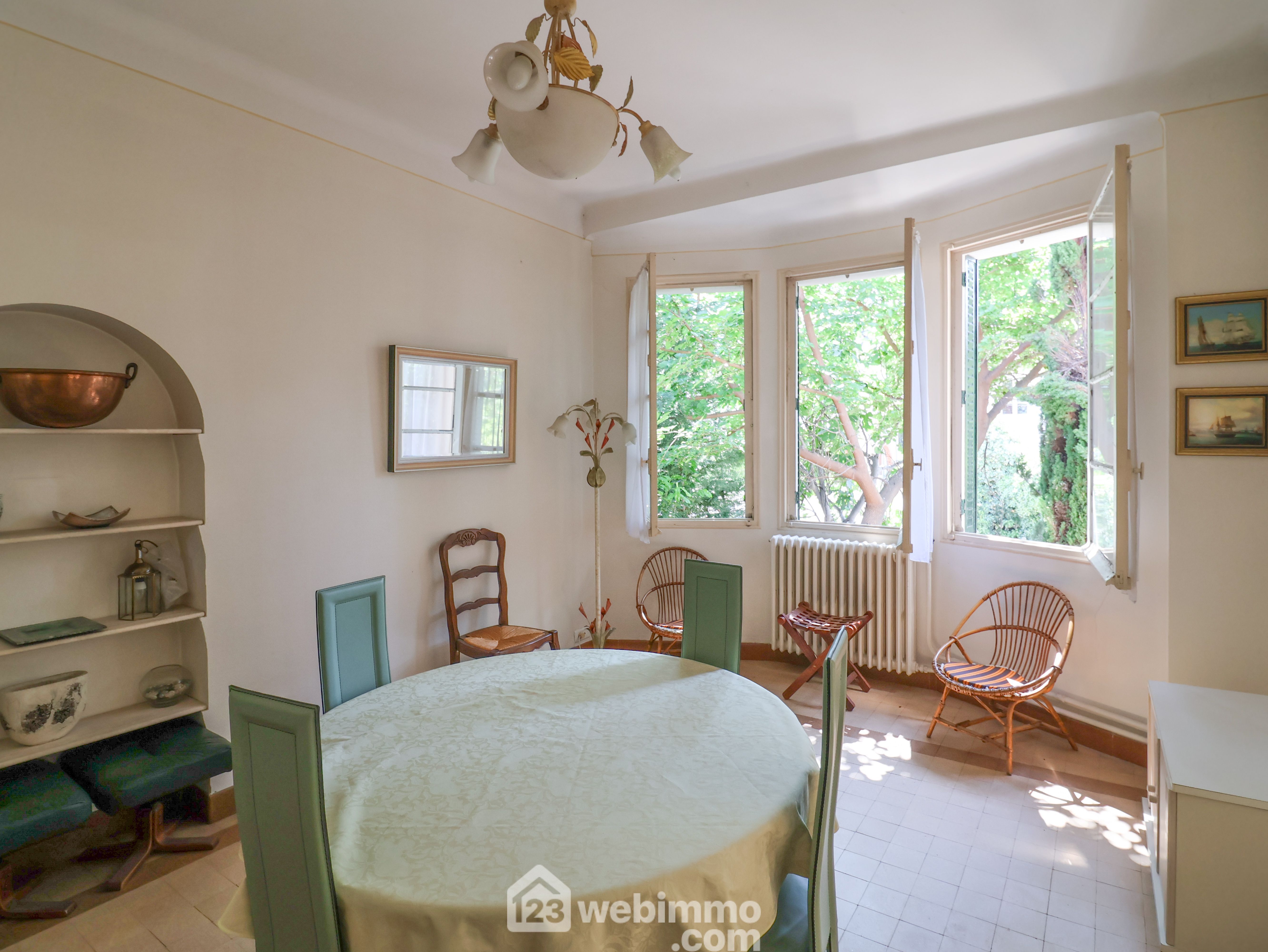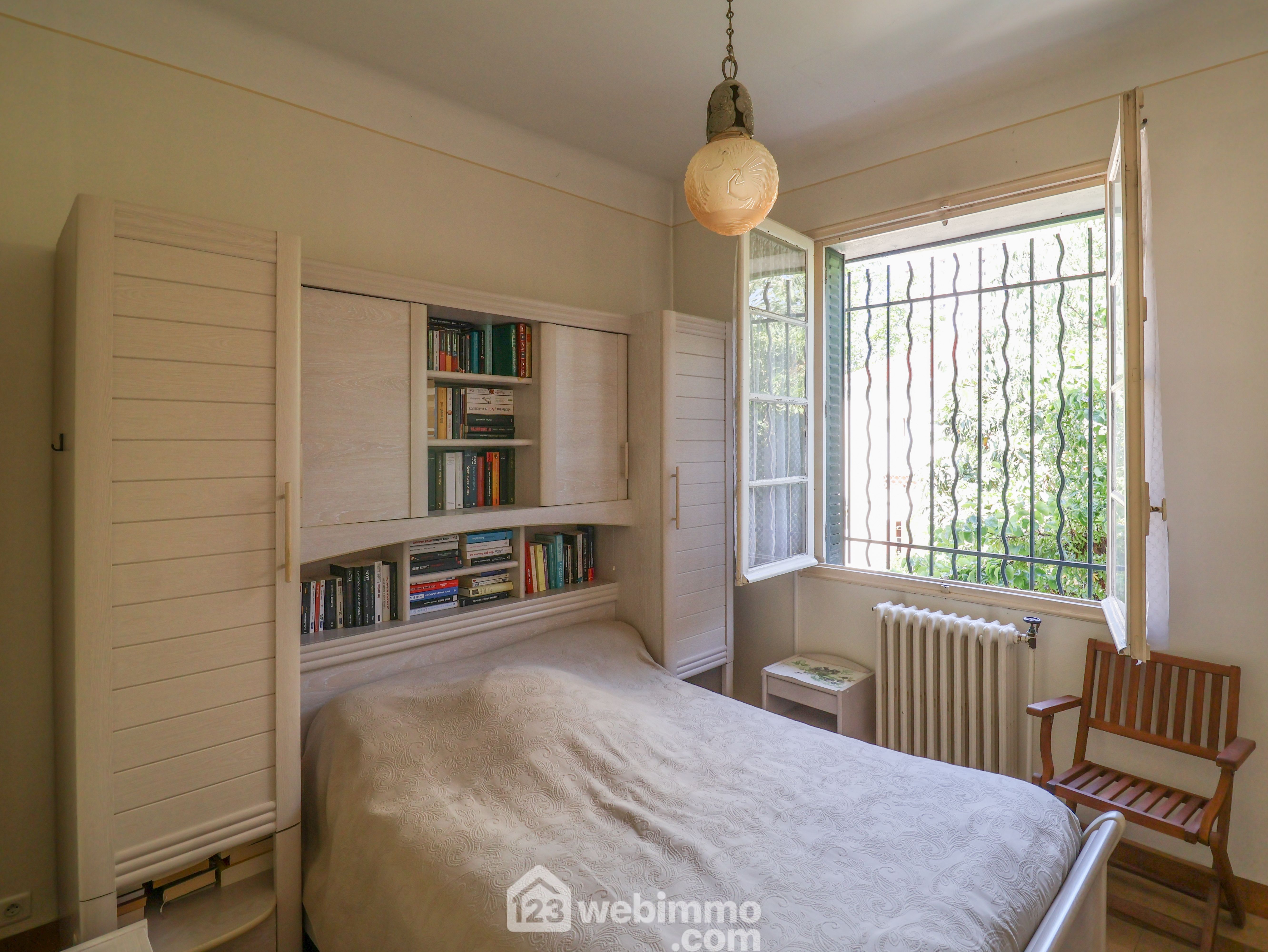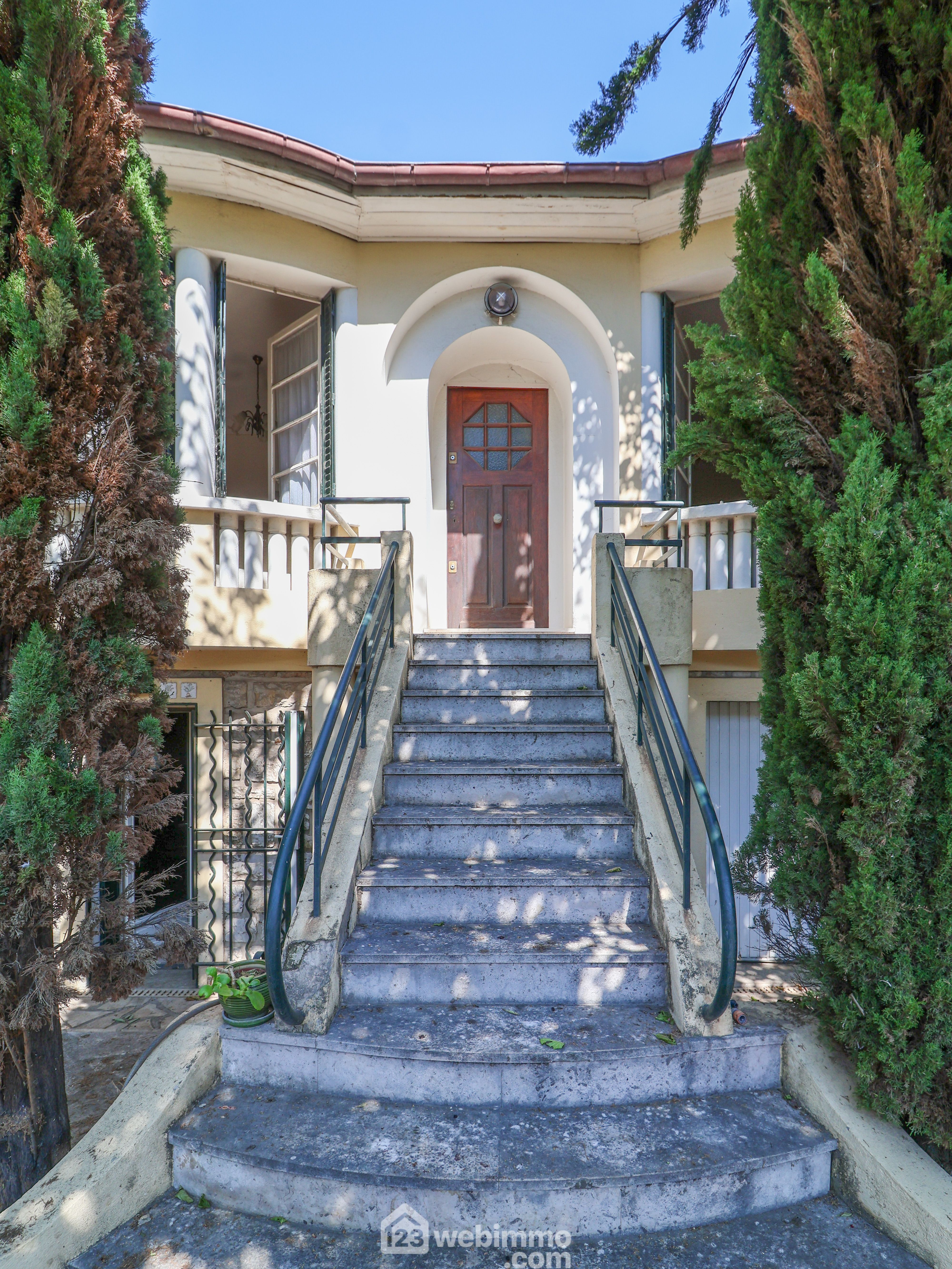 SAINTE MARGUERITE. EXCLUSIVITE. Dans une allée close au calme absolu proche de Michelet avenue Jacques Bainville. Charmante maison de type 5 de 120 m2, 140m2 au total avec garage, exposée au sud-est, bâtie sur une parcelle de 260m2, dotée d'un jardin de 80m2 piscinable à l'arrière. A l'étage on trouve un lumineux séjour, une cuisine, deux chambres, un espace bureau, une vaste salle de d'eau et un toilette séparé. Le premier niveau se compose d'un salon donnant sur une chambre avec salle d'eau toilette et dressing. Une buanderie avec accès au jardin arrière et un garage complètent le premier niveau. Un escalier intérieur relie les deux niveaux. A l'avant de la maison se trouve un jardin de 80m2 donnant accès au garage fermé de 20m2. Futur tramway, commerces très proches. Plan des 2 niveaux, 25 photos et visite virtuelle sur 123webimmo Marseille 9.