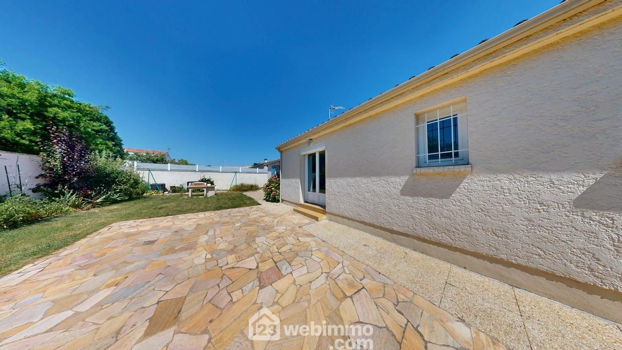 Maison de plain-pied de 122 m² à 300 m du bourg, 3 km des plages, 3 chambres, jardin. Quartier calme et recherché.