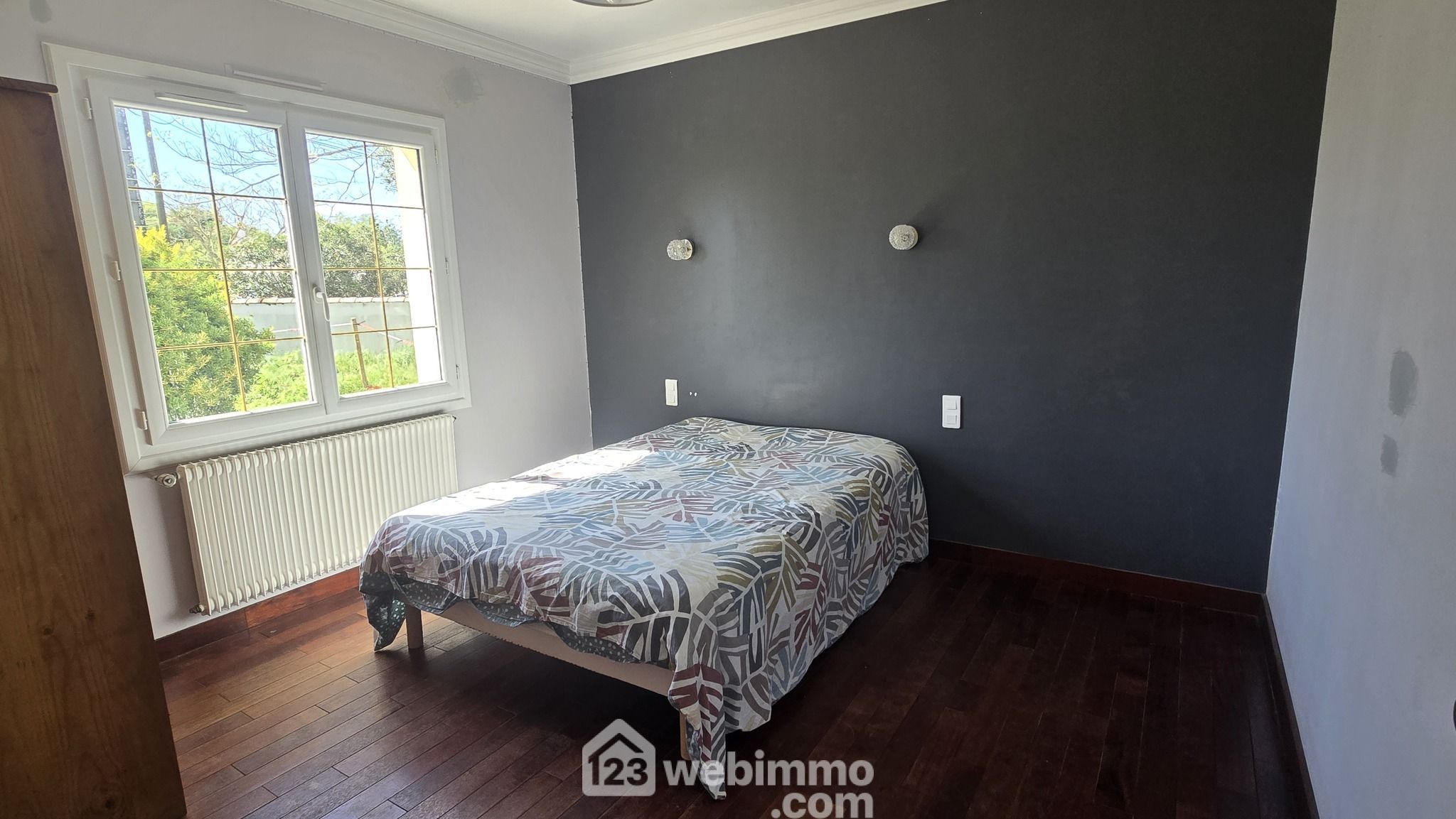 À l’étage, le palier dessert une suite parentale généreuse de près de 17 m². Elle dispose d’un grand placard intégré et d’une salle d’eau privative avec douche et WC, offrant un espace plus intime et confortable.