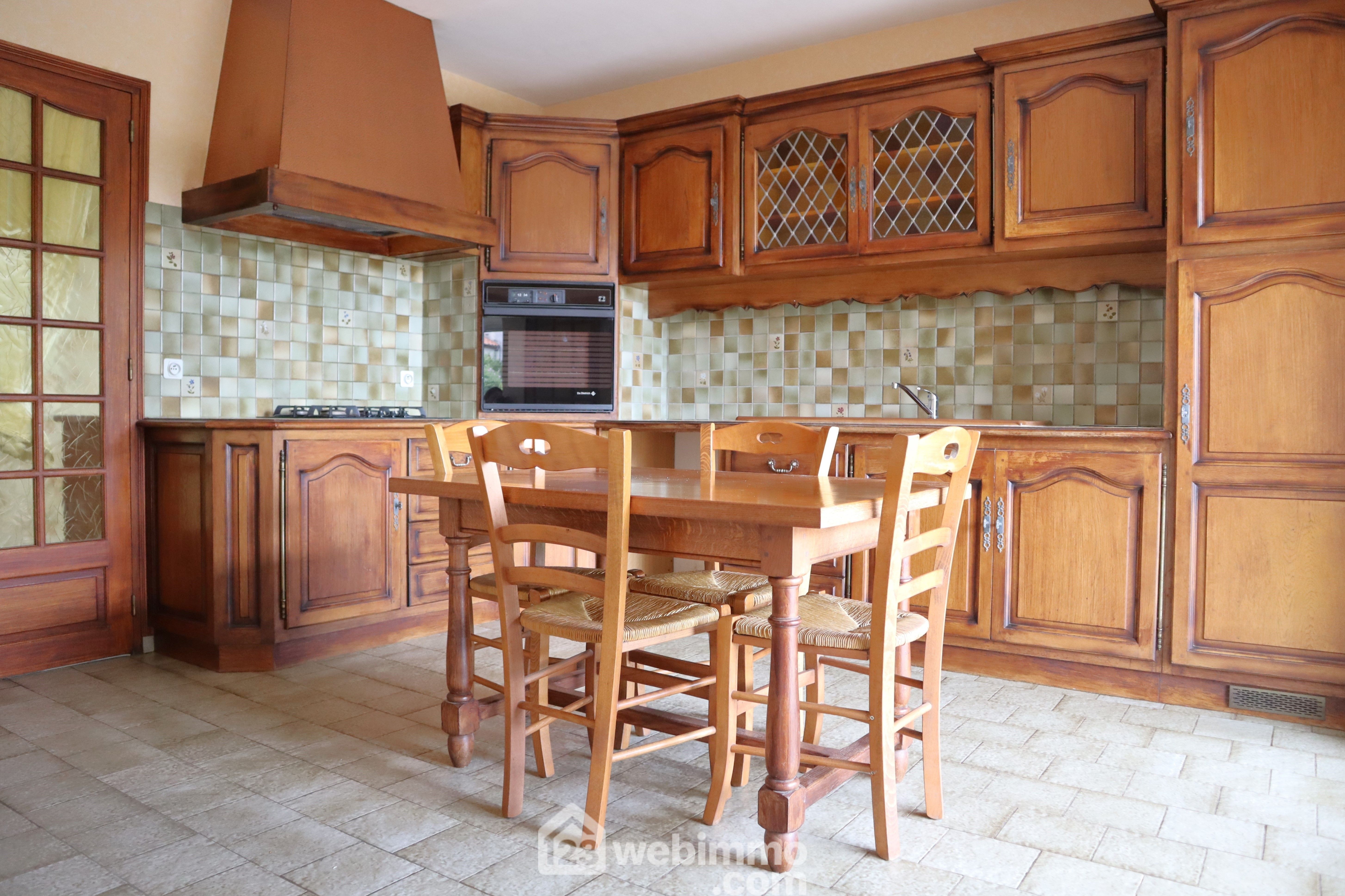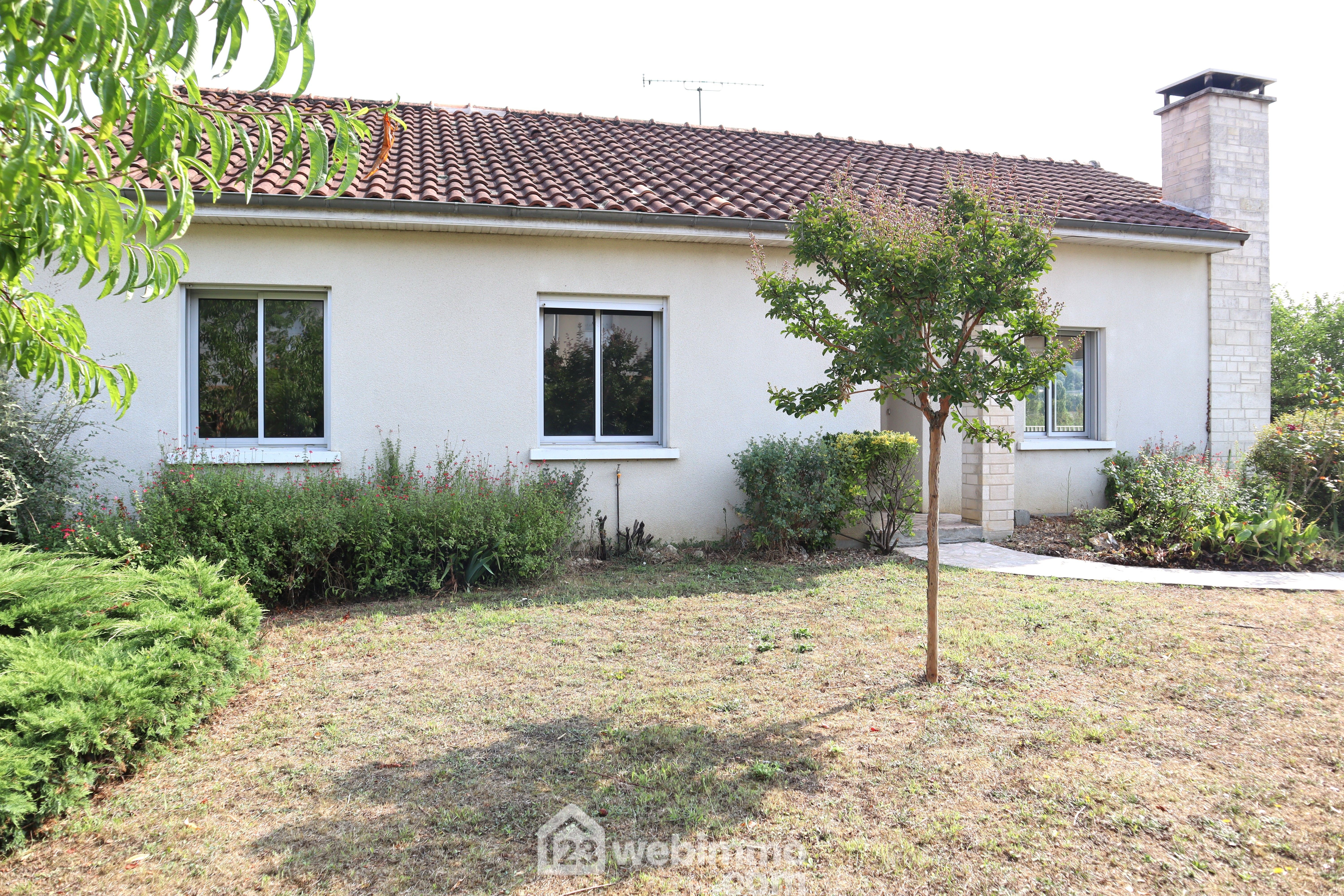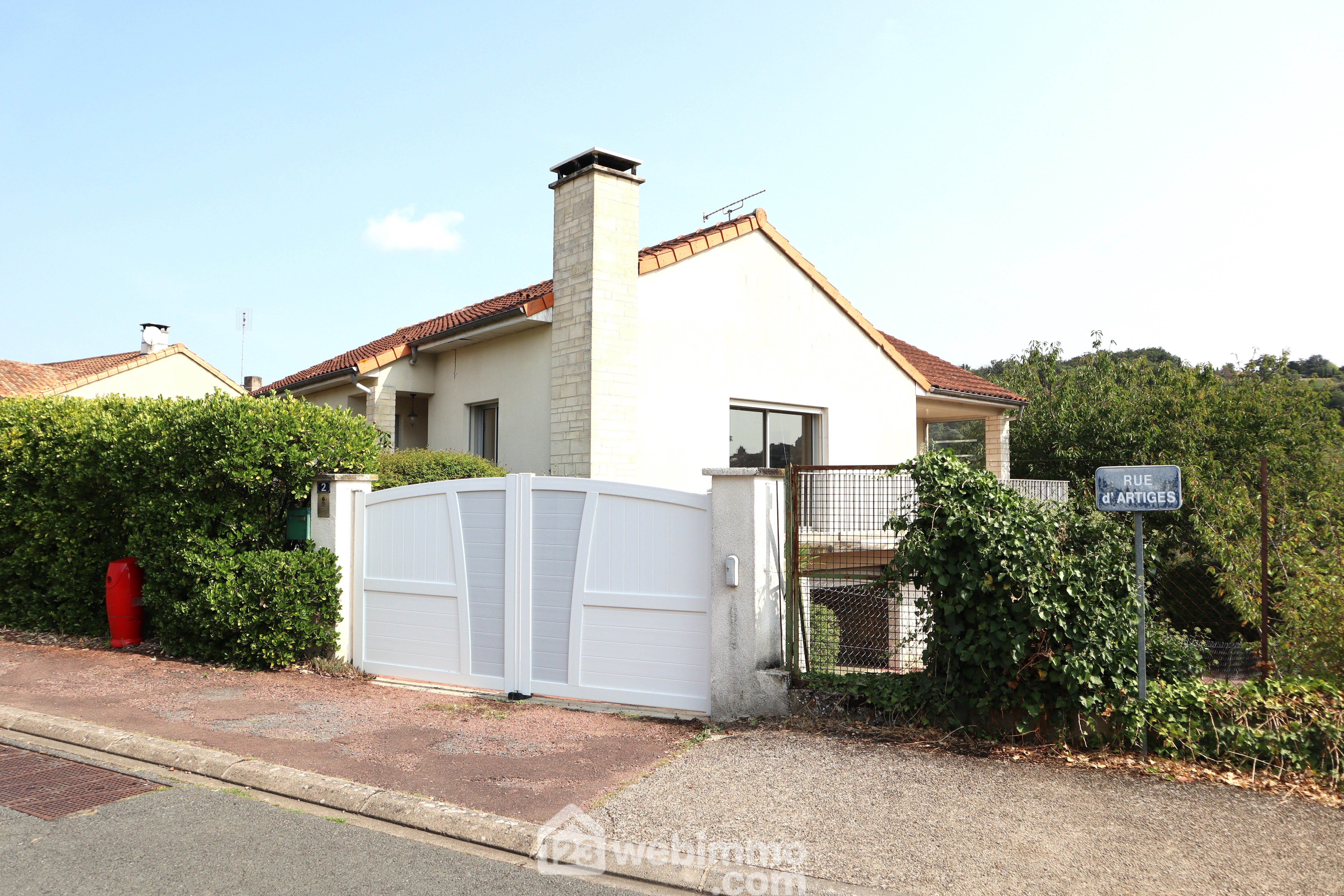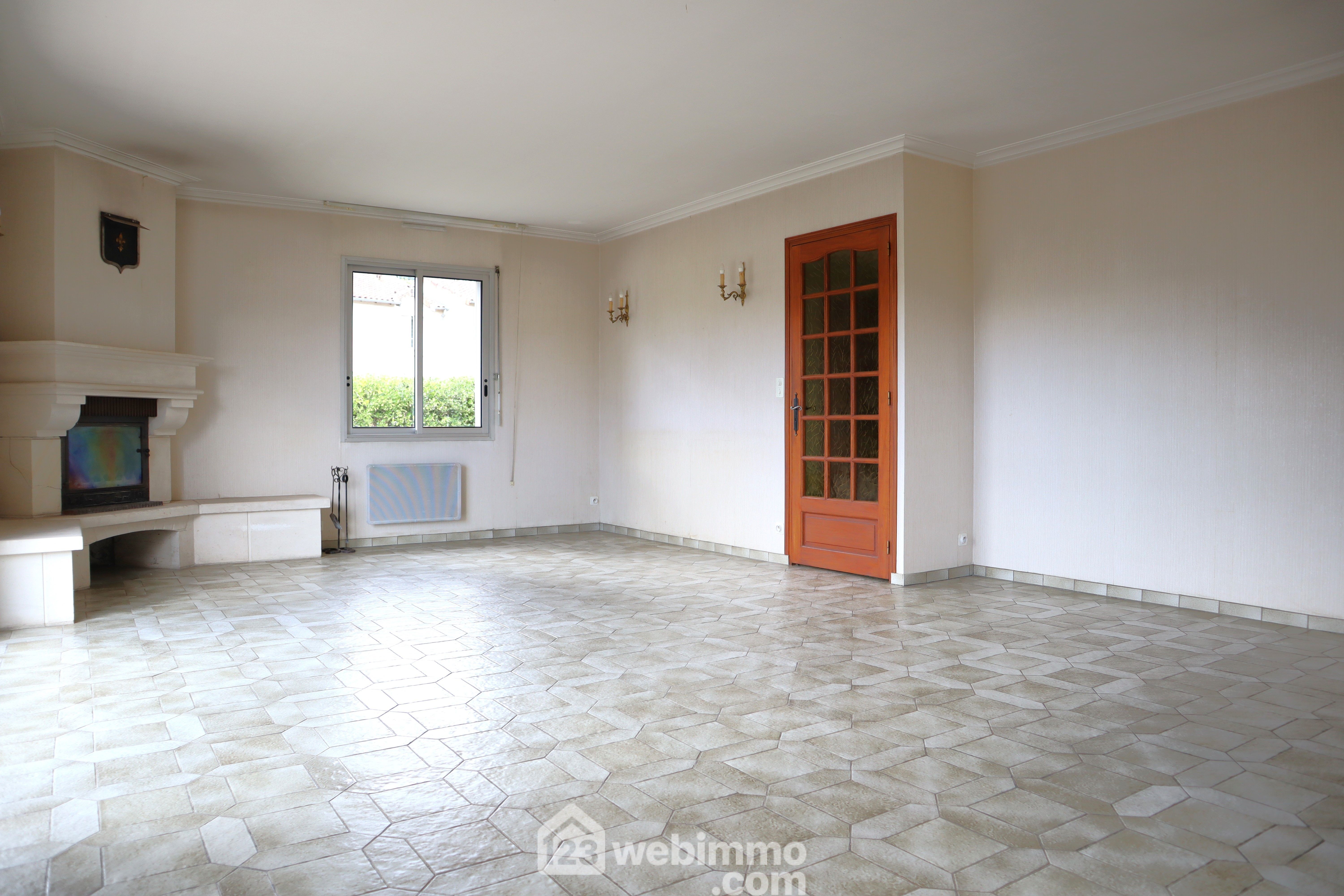 Maison sur sous-sol avec vie de plain-pied, 124 m2 habitables, 5 pièces, 4 chambres. Terrain de 721 m2 avec puits et arbres fruitiers.