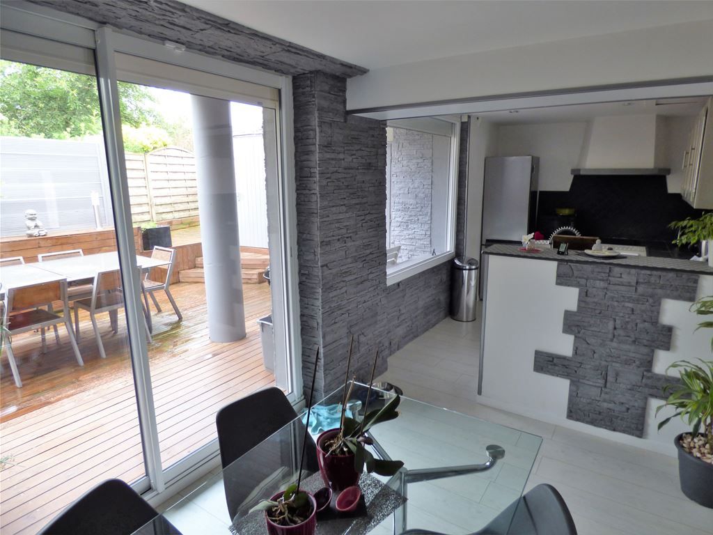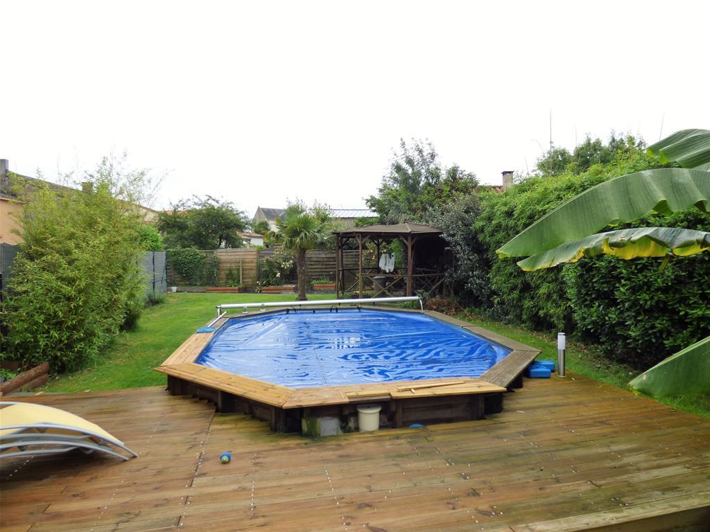 Elle offre un spacieux hall d'entrée, un salon de 25 m² avec cheminée insert, un lumineux espace cuisine/repas de 19 m² donnant accès à une grande terrasse bois. A l'étage, 3 chambres de 13 / 13,6 et 23 m², une pièce d'eau/lingerie de 17 m². Un wc par niveau. Terrain avec piscine bois semi enterrée chauffée et dépendance de rangement (ou cuisine d'été), le tout sans vis-à-vis. Bus Impuls'yon, écoles et commerces à quelques dizaines de mètres. A voir.