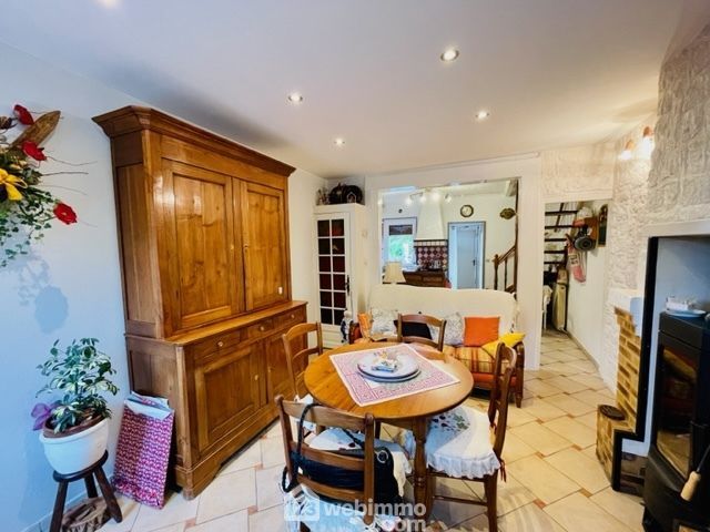 Au RDC : Entrée par salle à manger avec poêle à bois, une cuisine aménagée et équipée, dégagement, cellier/chaufferie, une salle d'eau et wc indépendant.