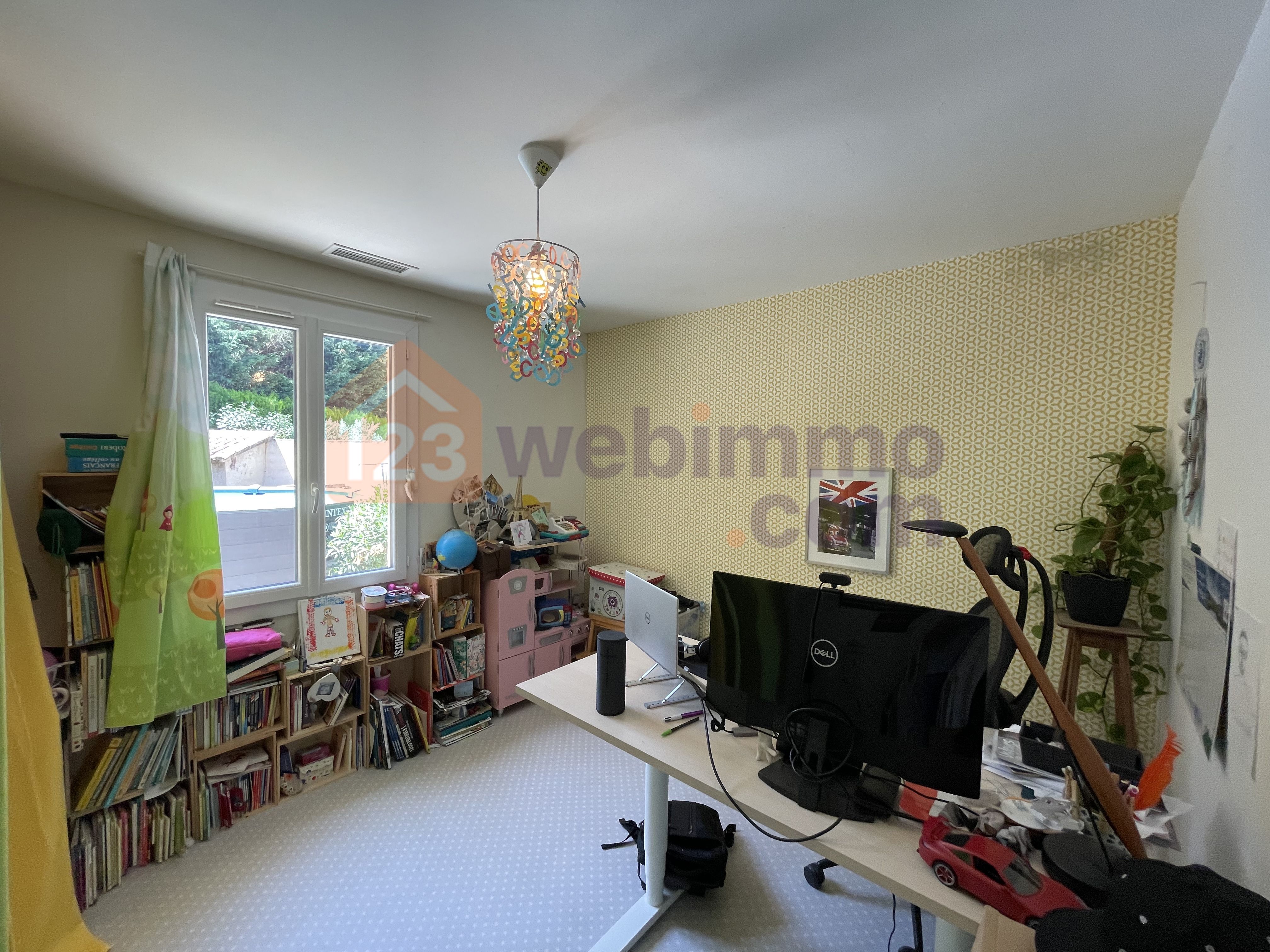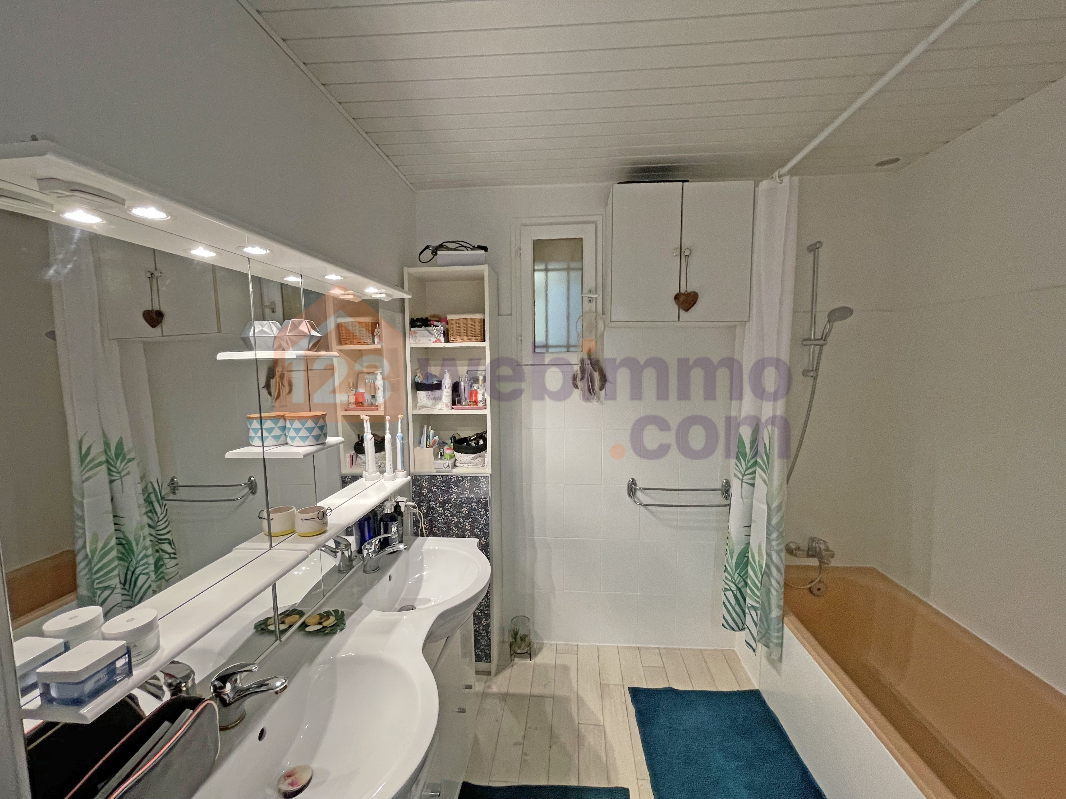 La maison est composée de : entrée, pièce de vie composée de salon salle-à-manger, cuisine aménagée, arrière-cuisine, buanderie, 2 chambres, salle de bains, wc. A l'étage : 2 chambres dont une avec terrasse, wc. Quartier résidentiel calme, proche des commodités, climatisation réversible. Proche accès autoroute. Visite virtuelle disponible.