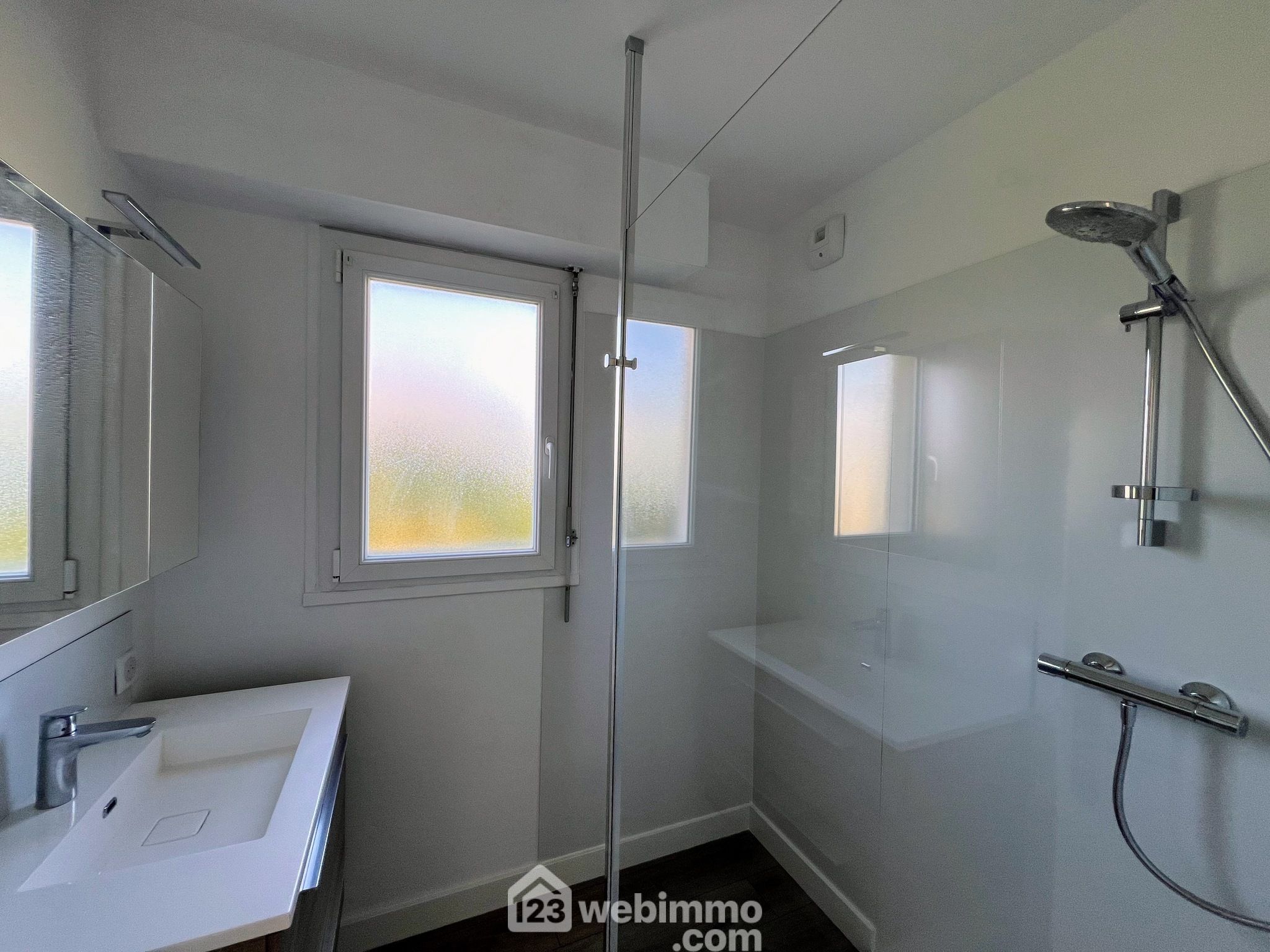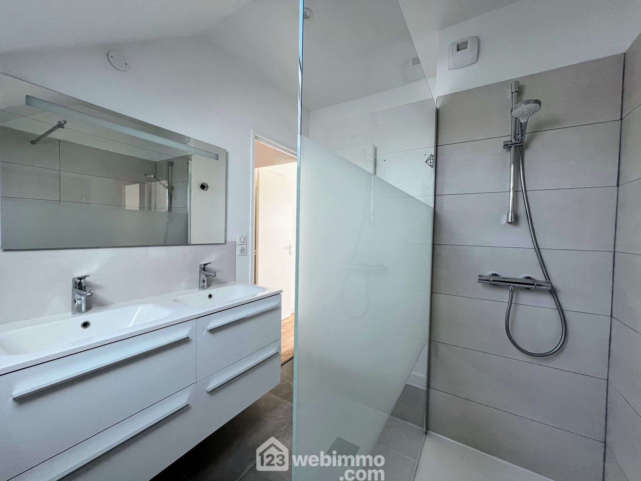 Au rez-de-chaussée, vous découvrirez un espace de vie lumineux de 38 m², composé d'un séjour convivial ouvert sur l’extérieur et d'une cuisine aménagée et équipée. Un salon de 15 m² communique également avec la grande pièce de vie. Une chambre, une salle de douche et un garage avec porte motorisée complètent ce niveau.