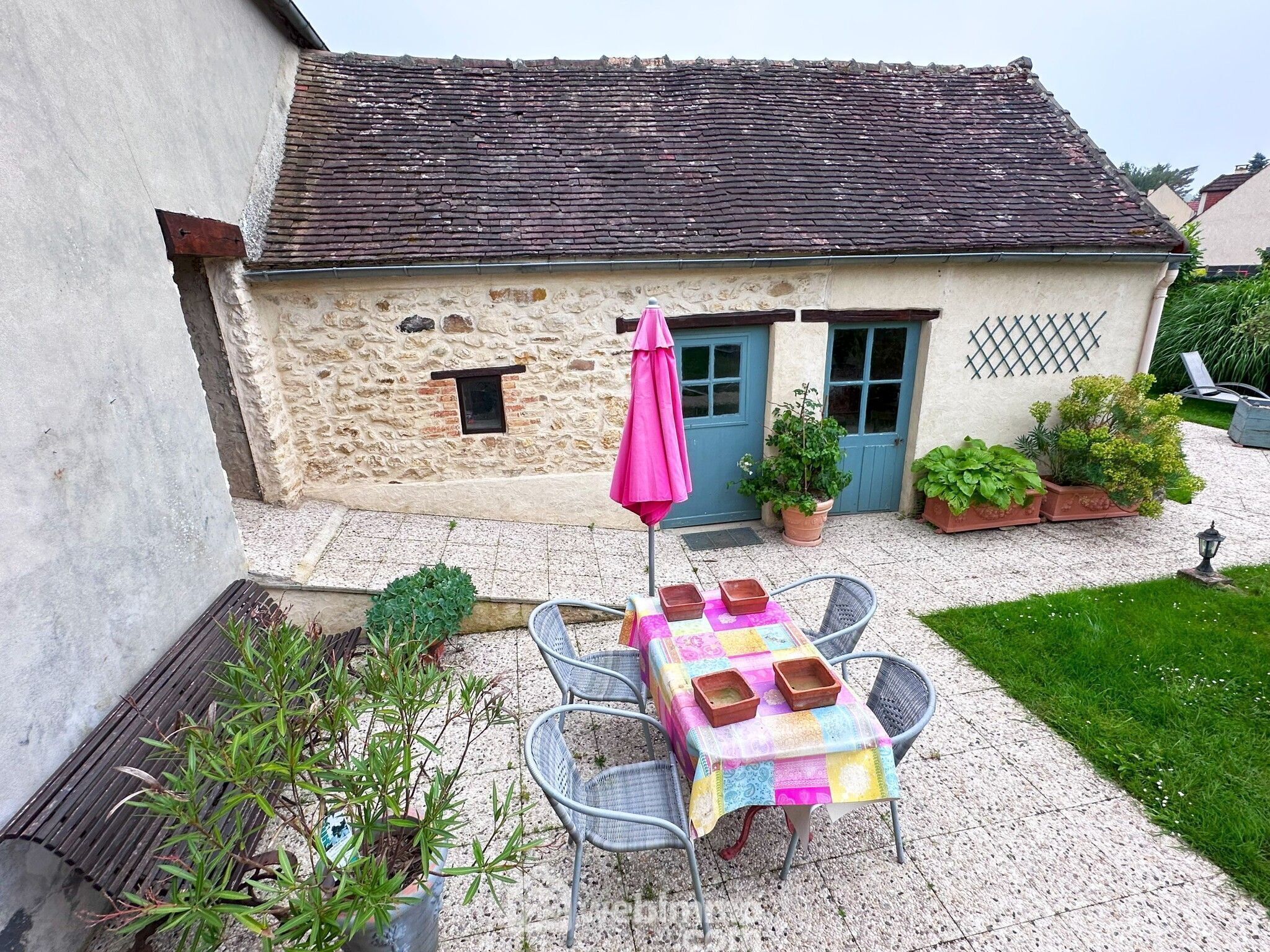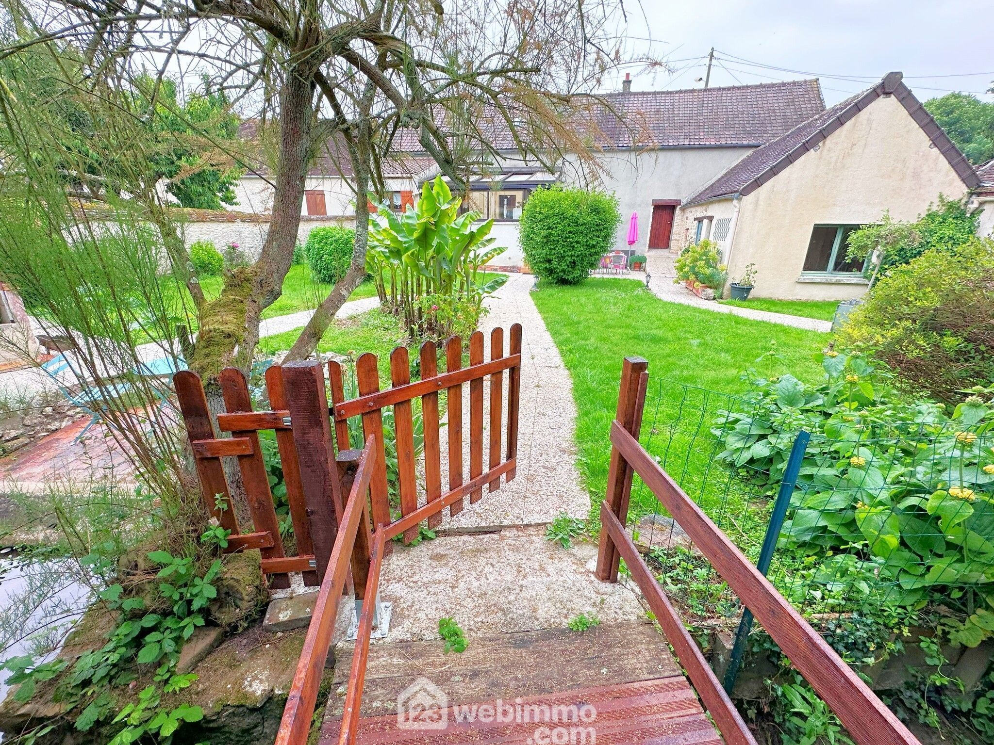 Dans le village de Donnemarie-Dontilly, très jolie fermette bordée par l'Auxence et son terrain de 655 m². Nombreuses dépendances.