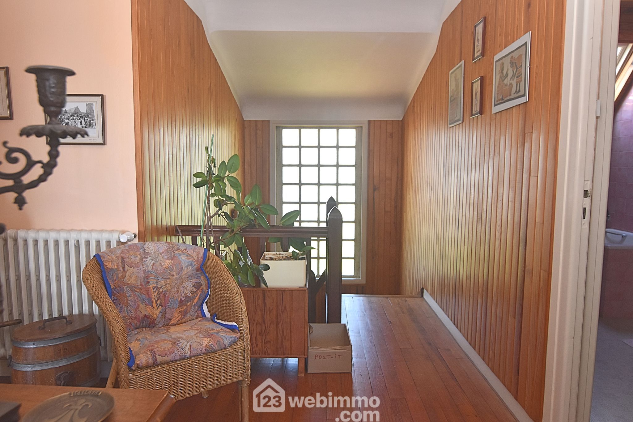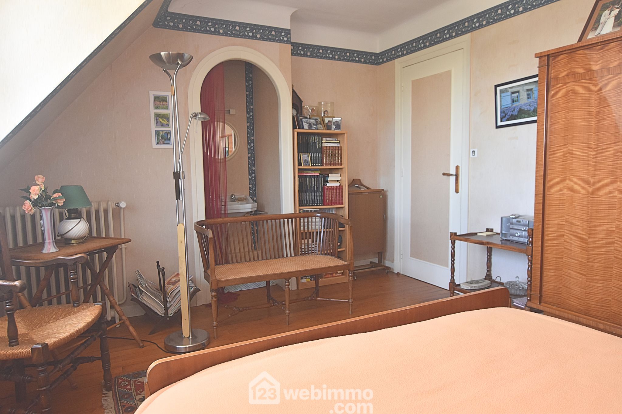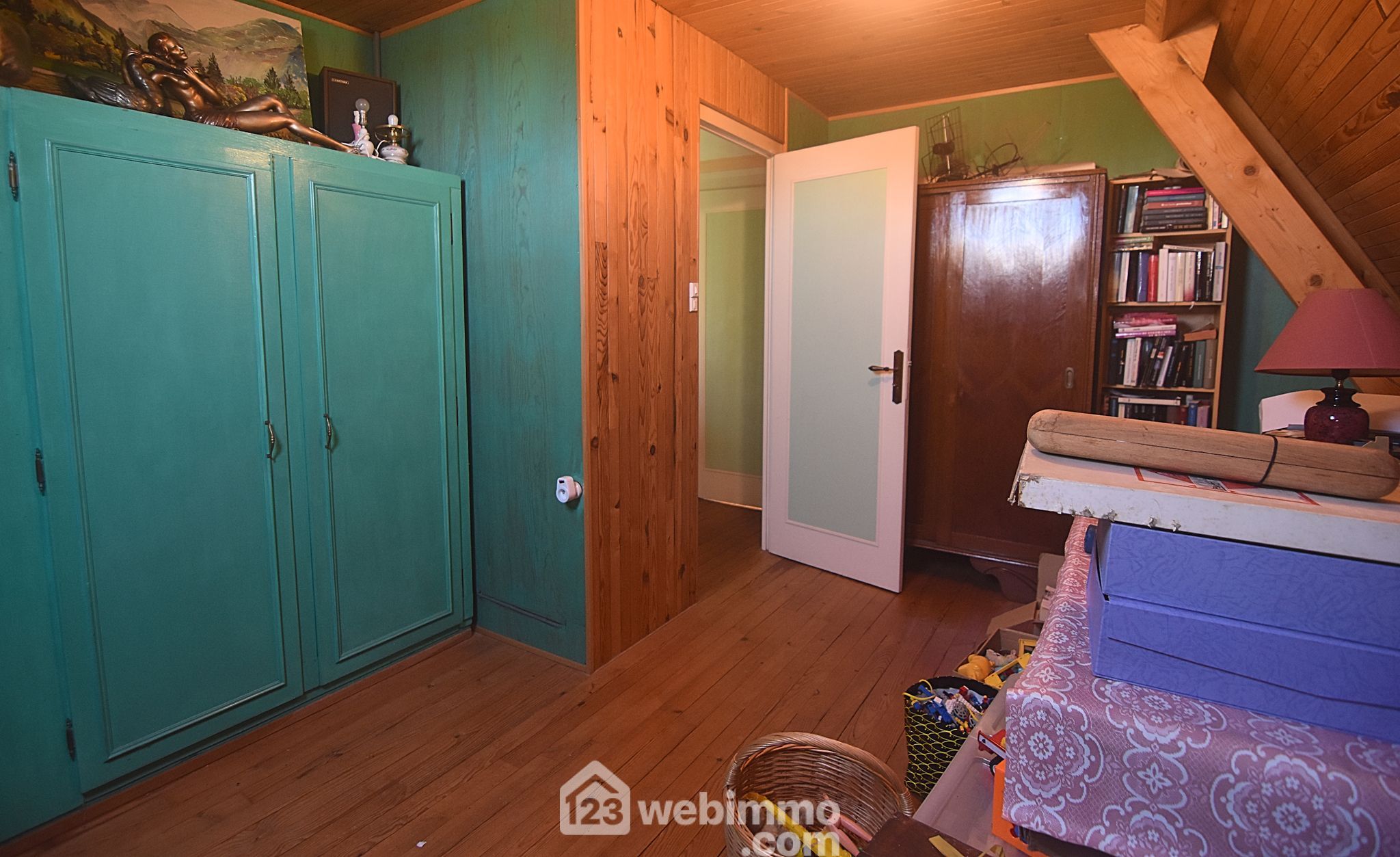 À l’étage : grand palier desservant deux chambres avec lavabo, une salle d’eau avec WC, une pièce de stockage facilement transformable en chambre, et un grenier avec accès aux combles.
