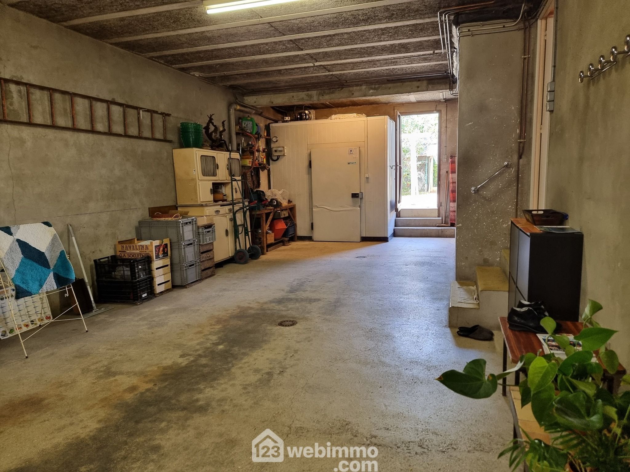 Ce bien comprend au rez-de-chaussée, un grand garage, un bureau (pouvant être transformé en chambre) une chambre spacieuse et une salle de bains avec WC.