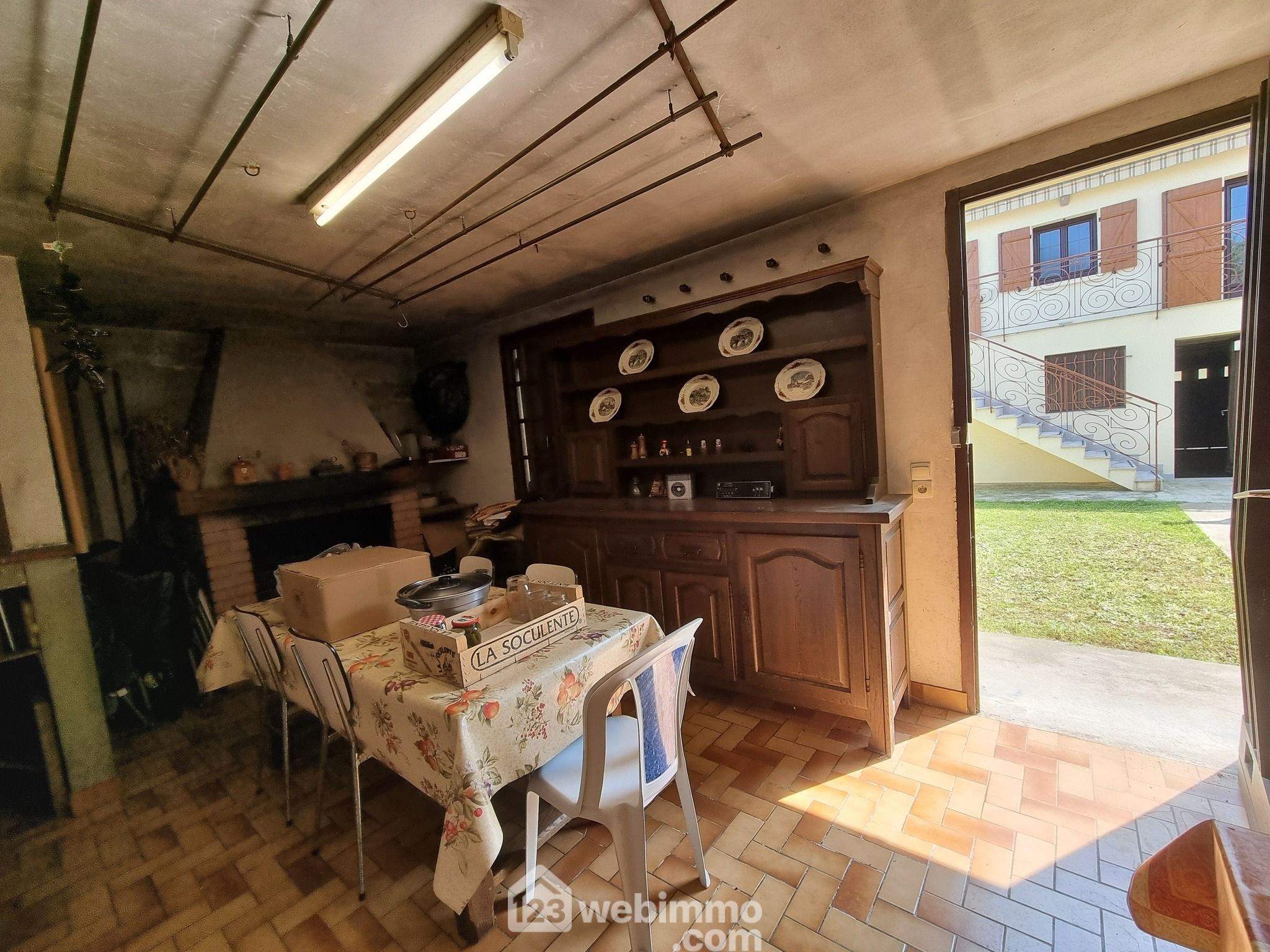 L'extérieur comprend également un grand abri de jardin doté d'une cheminée, idéal pour une cuisine d'été.