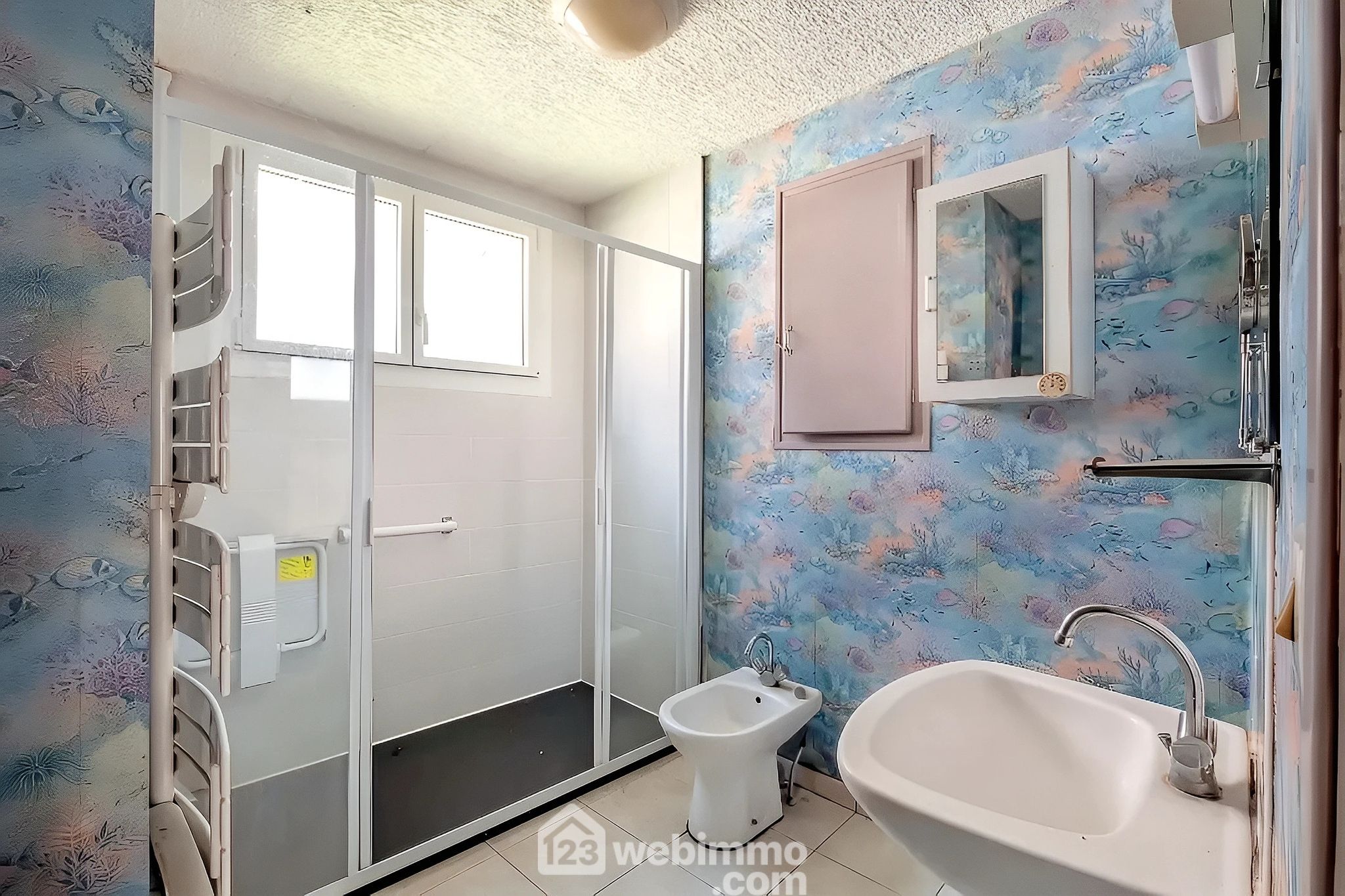 2 salles d'eau, dont une équipée d'une douche, sèche-serviette et lavabo