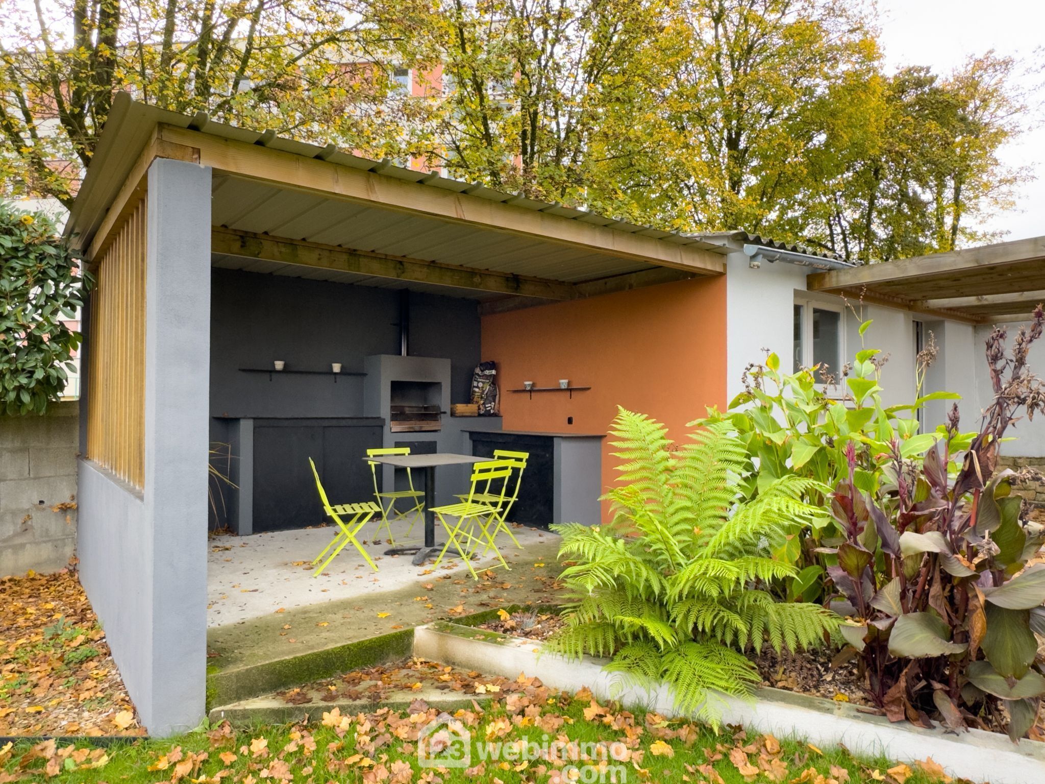 À l’extérieur, le jardin clos, la terrasse en bois surélevée et la cuisine d’été promettent de beaux moments de partage dès les beaux jours.