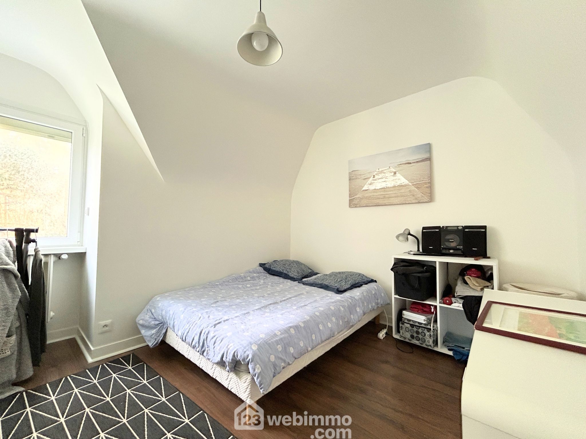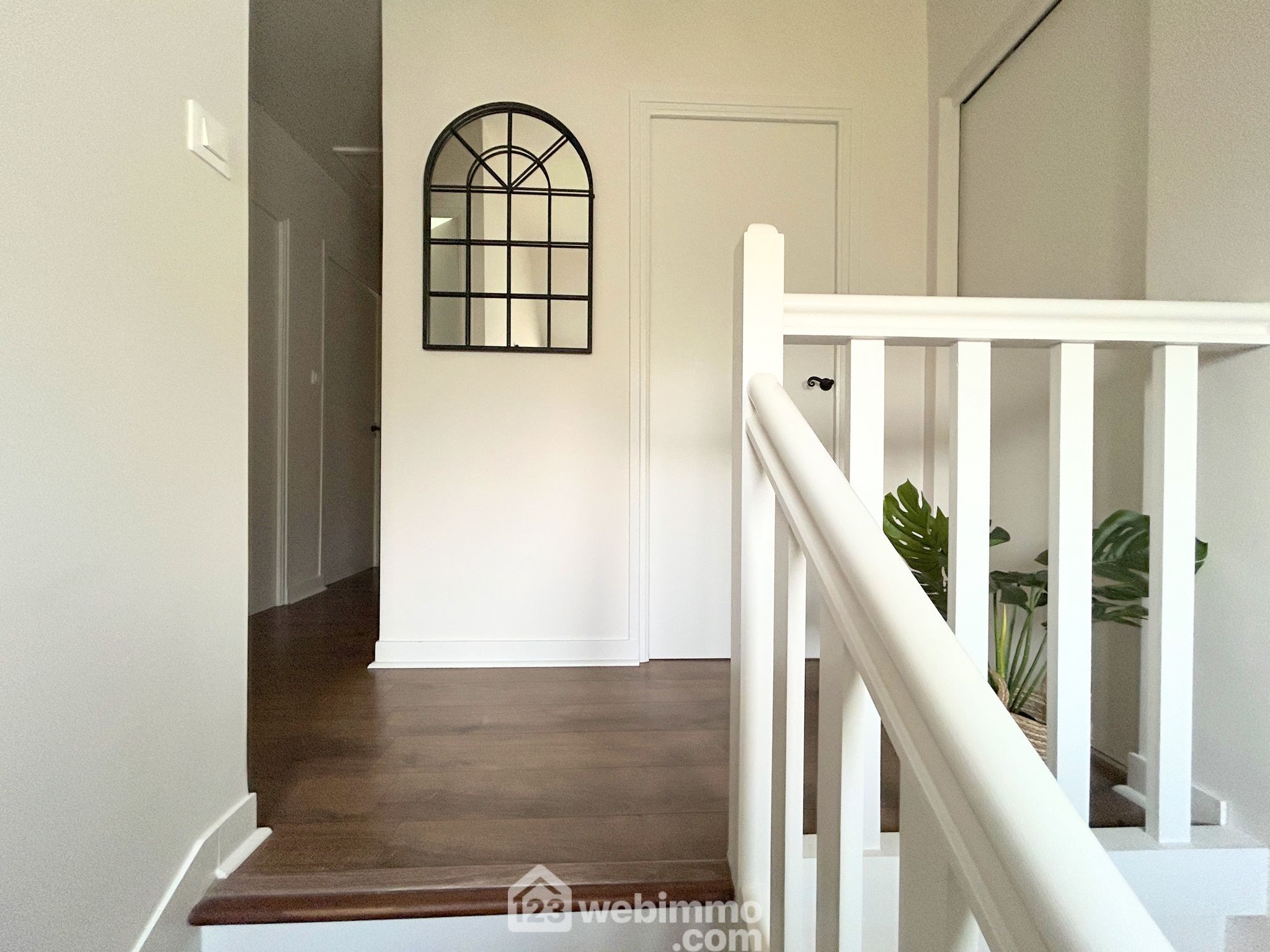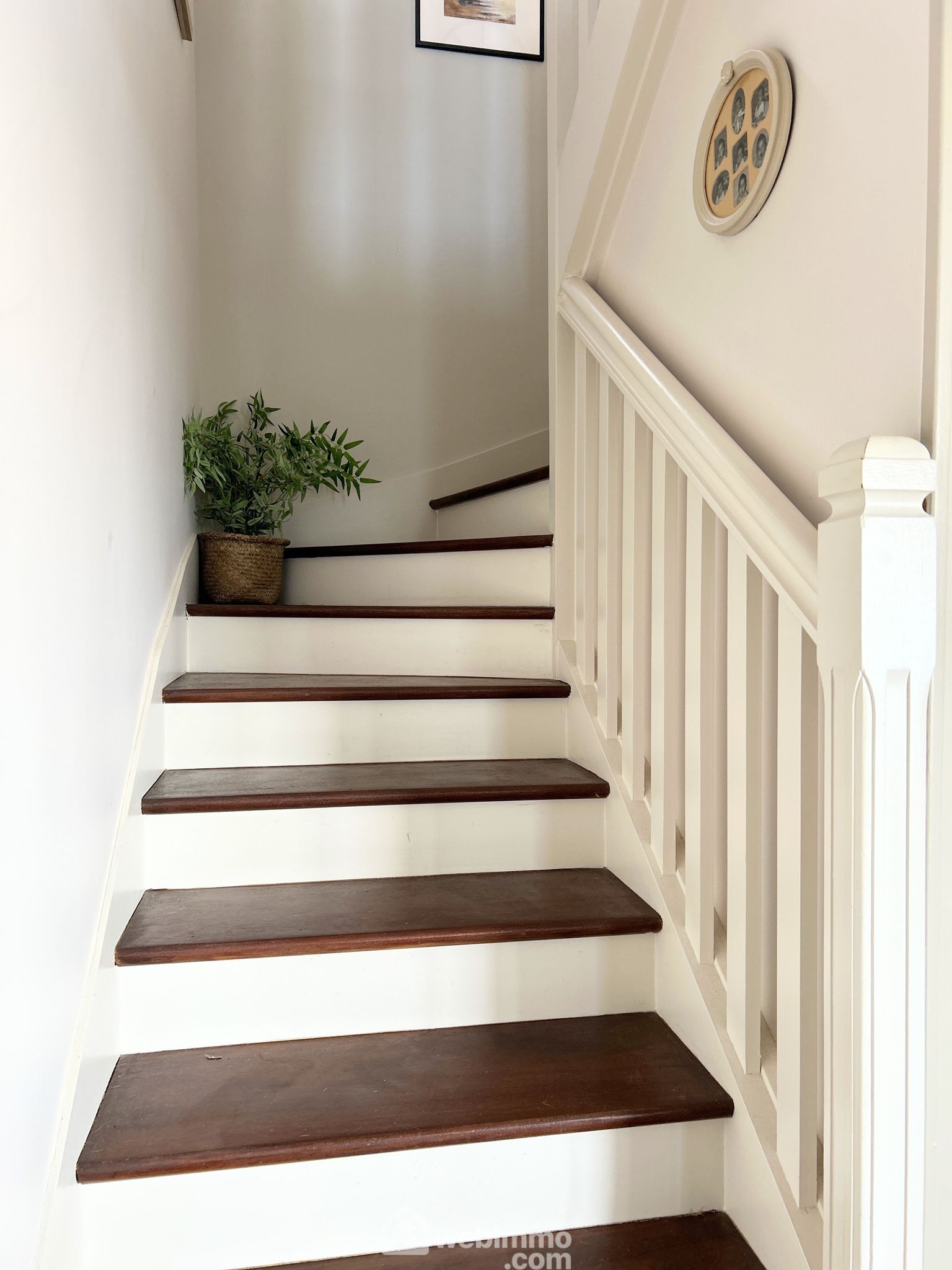 A l'étage, le palier dessert, 3 chambres de 11 à 13m2 habitables, une salle de bains de 5m2 et un WC séparé.