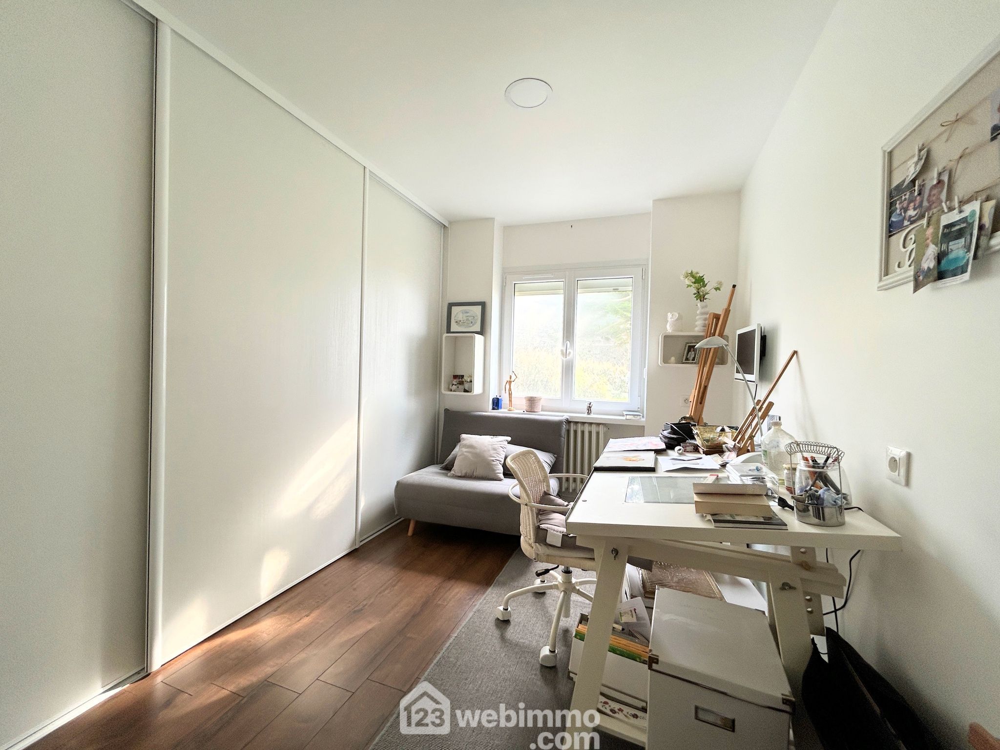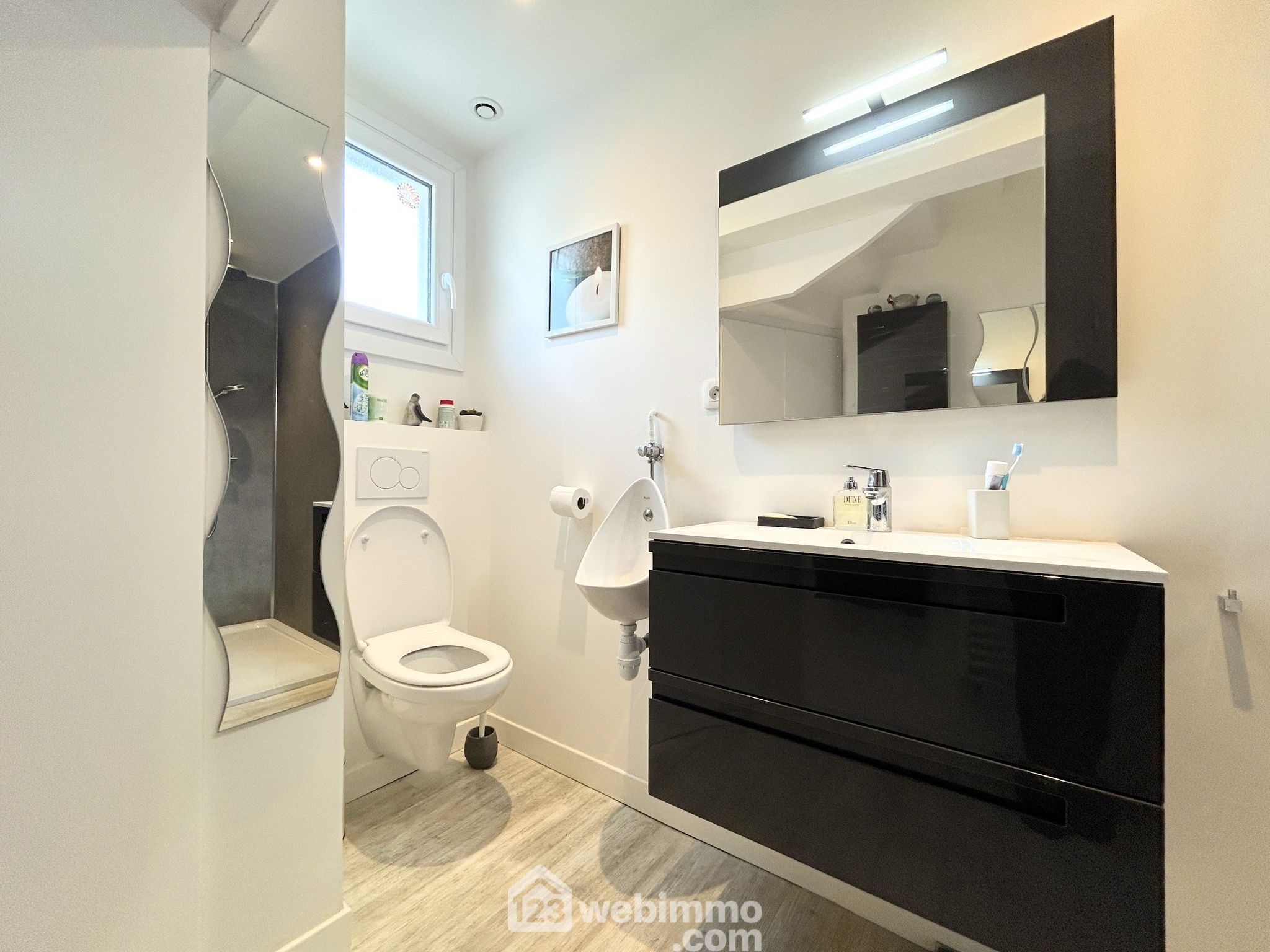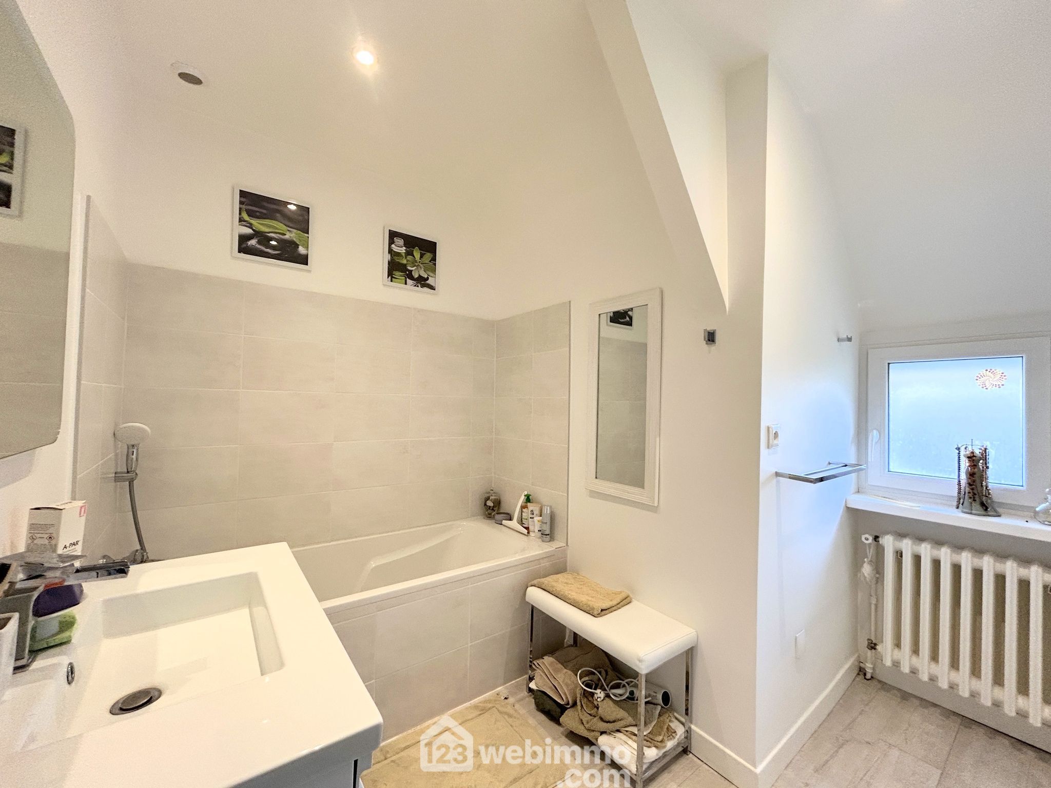 A l'étage, le palier dessert, 3 chambres de 11 à 13m2 habitables, une salle de bains de 5m2 et un WC séparé.