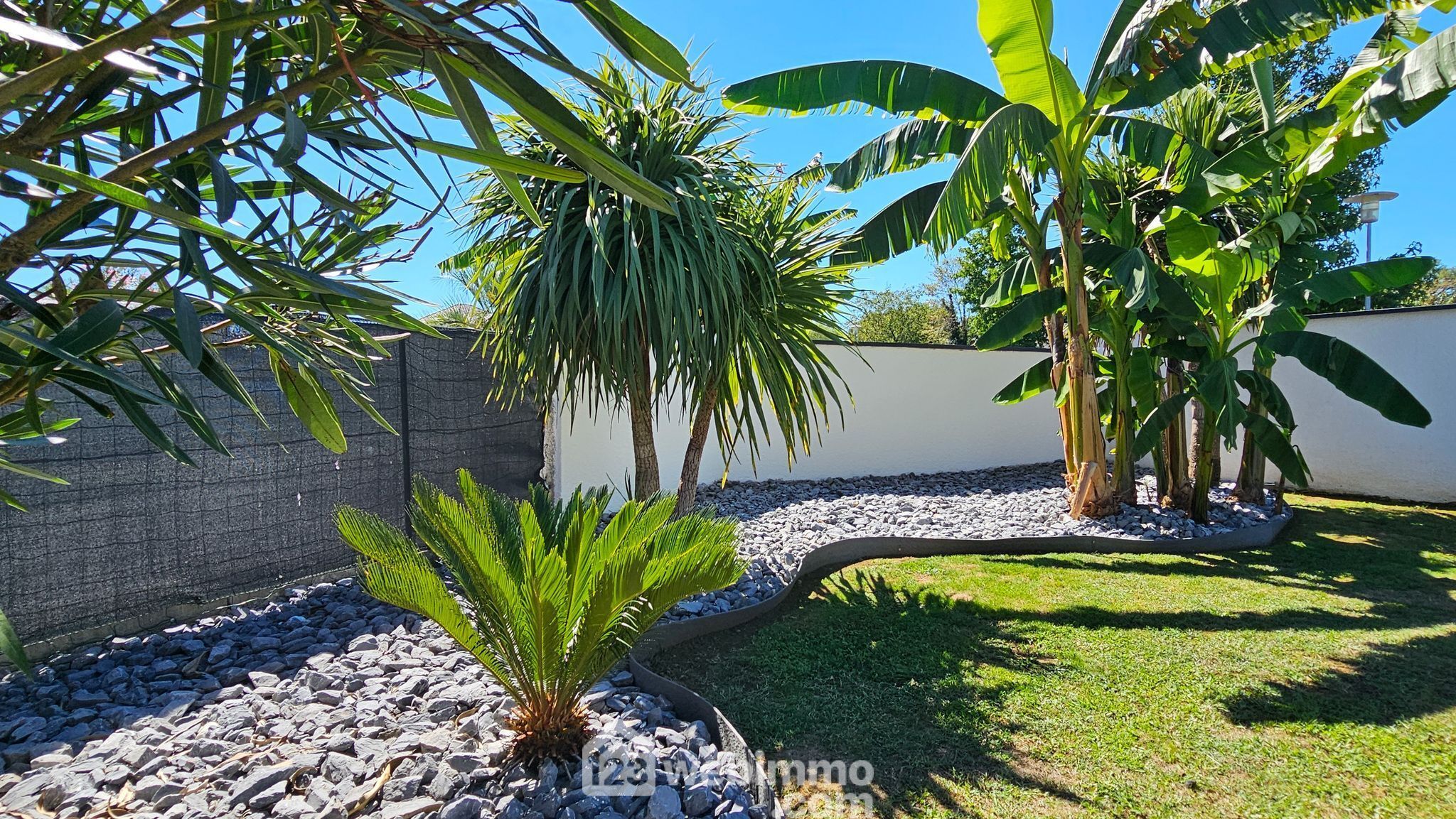 L’extérieur est agrémenté de belles végétations type palmiers, cordylines, bananiers, phœnix, c’est vraiment très beau!!
