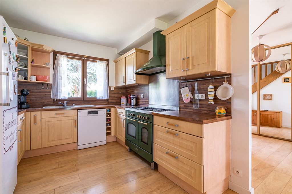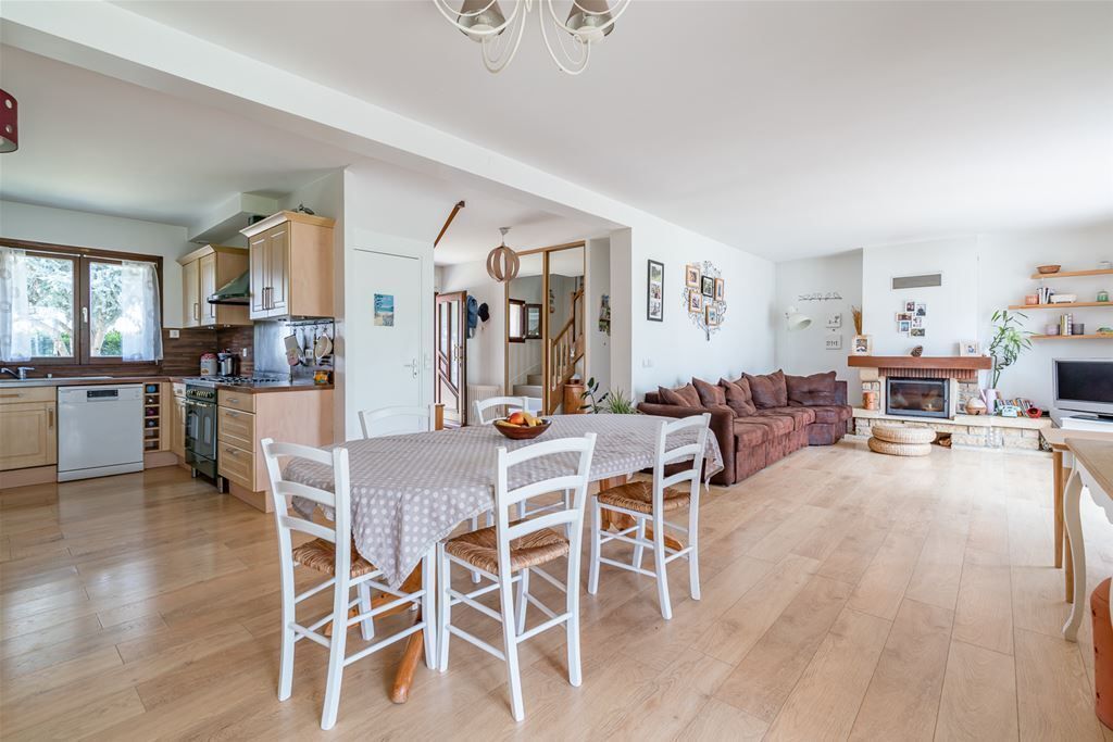 A deux pas du centre et des écoles, ce pavillon entretenu offre: une entrée, une vaste pièce de vie de 47m2 avec cheminée ouverte sur sa cuisine équipée, une chambre et un wc , à l'étage deux grandes chambres dont une avec placard, une salle d’eau, une grande salle de bains, un dressing avec mezzanine, un bureau avec mezzanine et accès à un grand grenier. Le sous sol total est divisé en deux pièces et une buanderie.