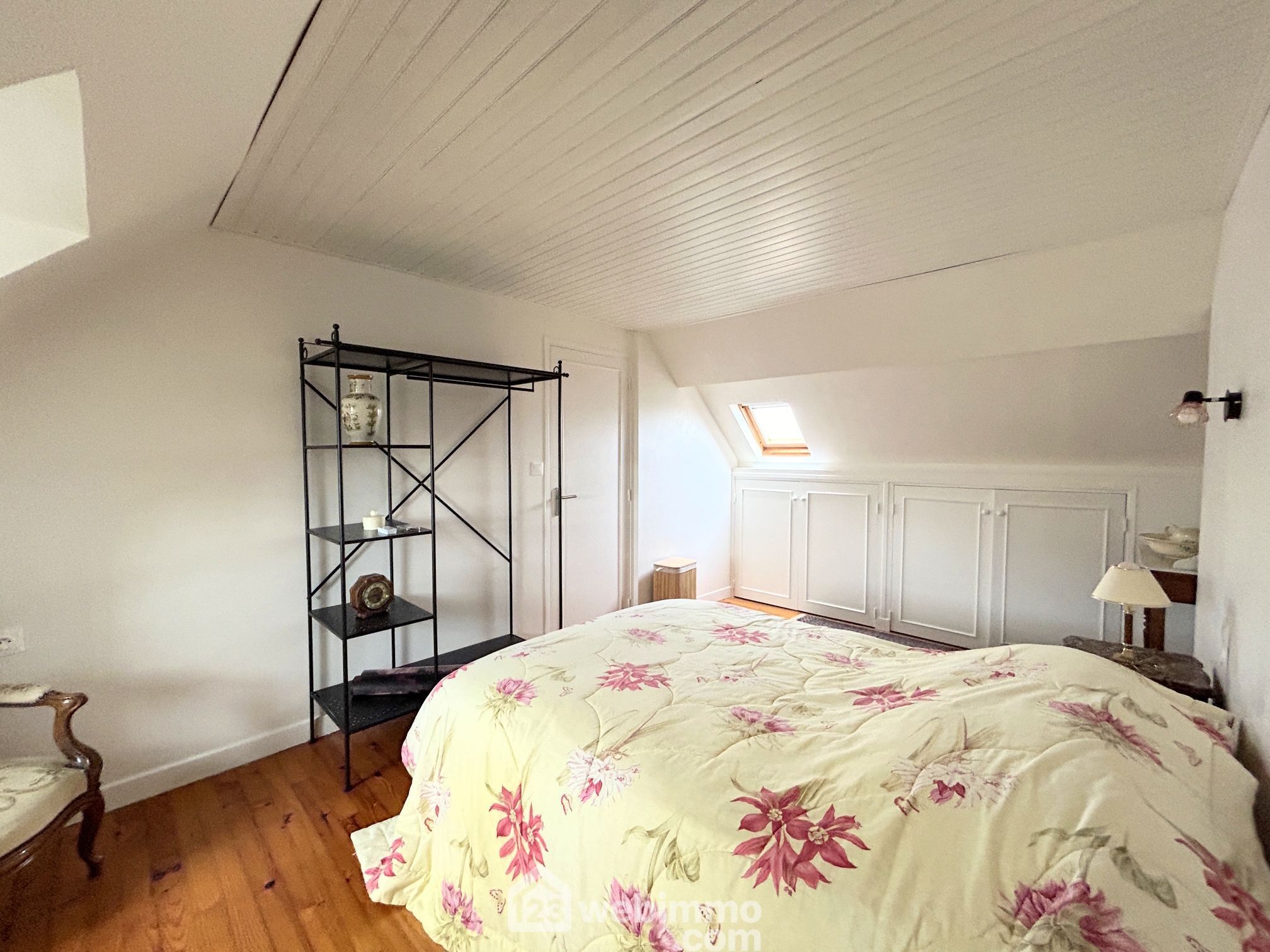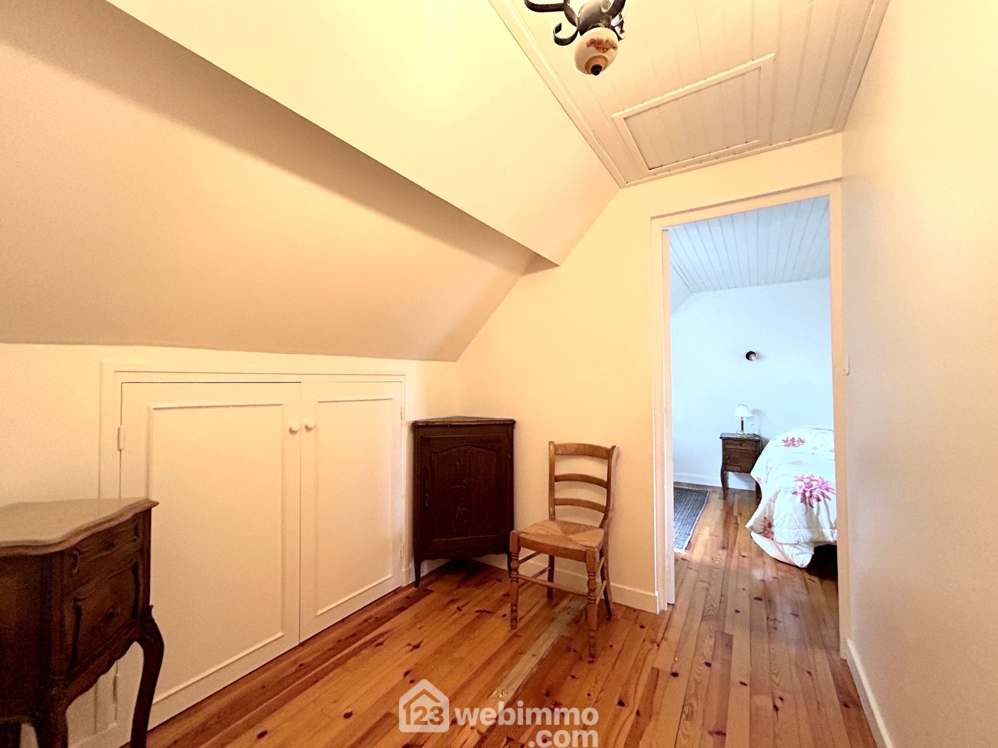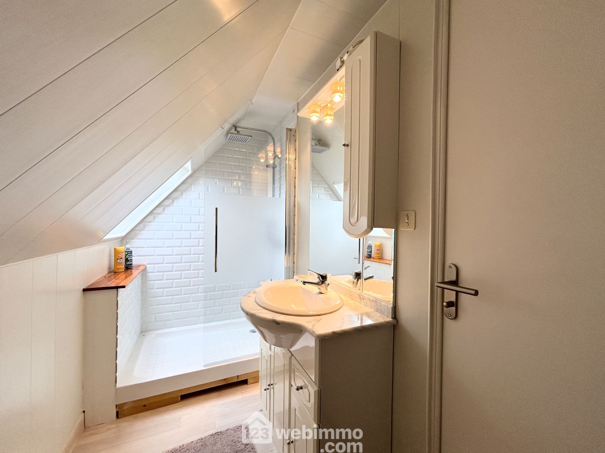 A l'étage, un palier couloir de 9m2 avec rangements dessert un bureau de 6,5m2 au sol, une salle de douches de 4m2, un WC séparé et 2 chambres de 9 et 15m2 au sol avec de nombreux rangements sous rampants.
