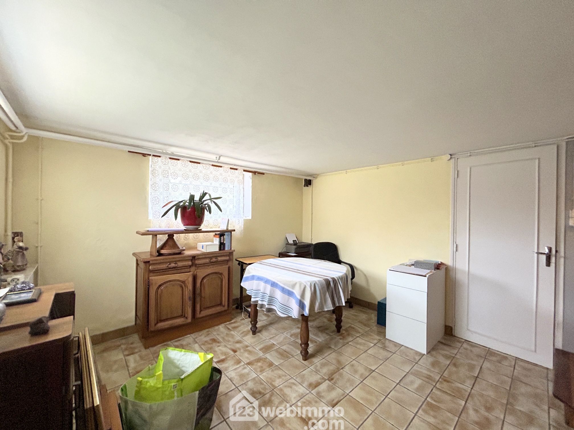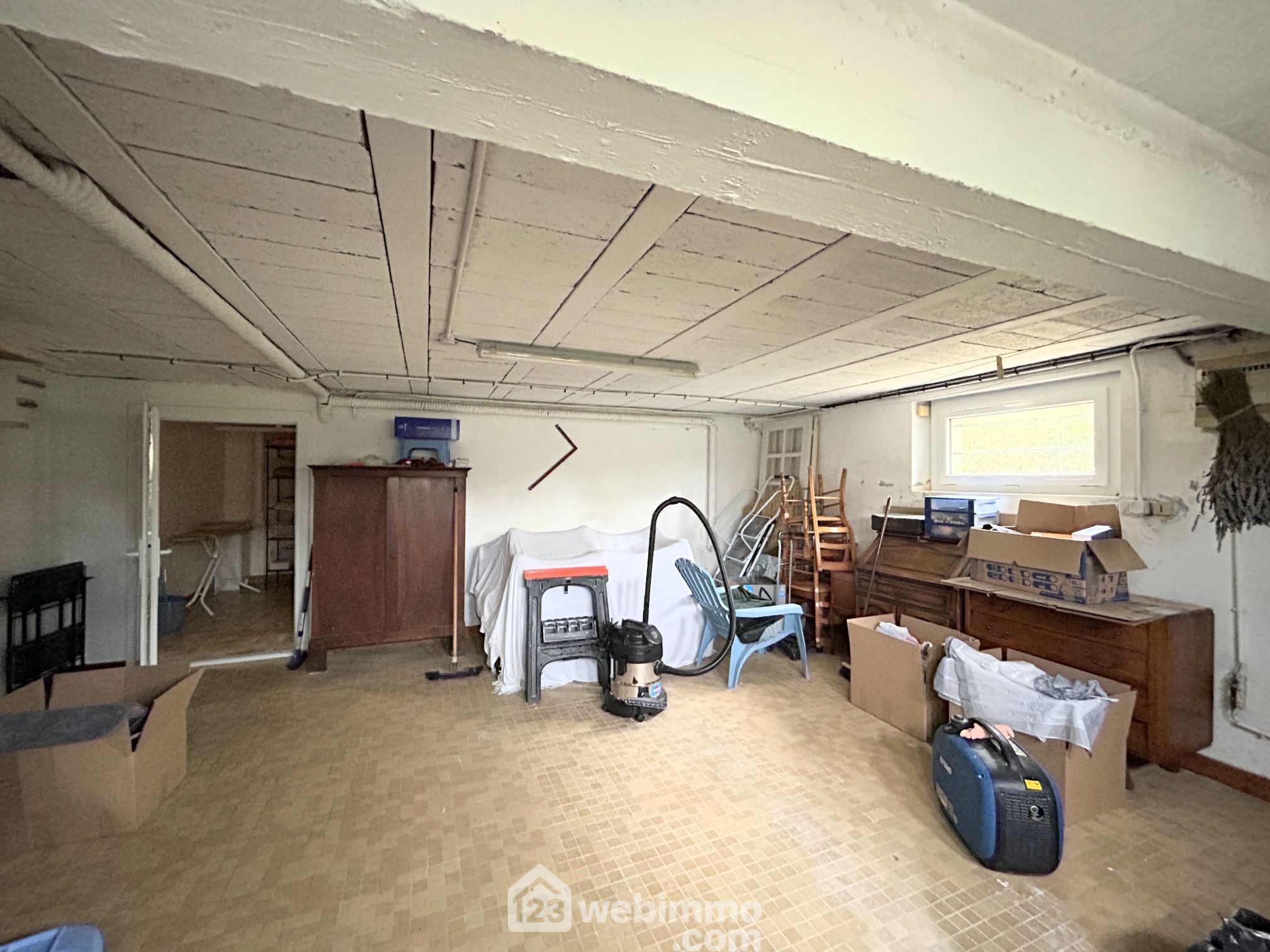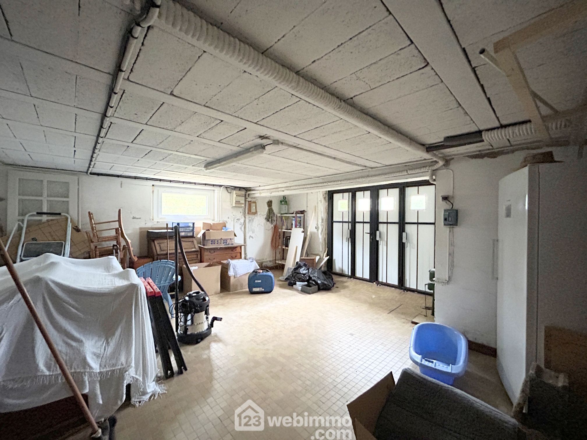 La maison dispose également d'un sous-sol total de 65m2 utiles, accessible par la cuisine. Ce dernier est divisé en un espace garage de 28m2, une chaufferie-buanderie avec évier de 6,5m2, une cave de 3m2, un bureau de 14m2, un dégagement de 6m2 et une chambre avec lavabo de 12,5m2.
