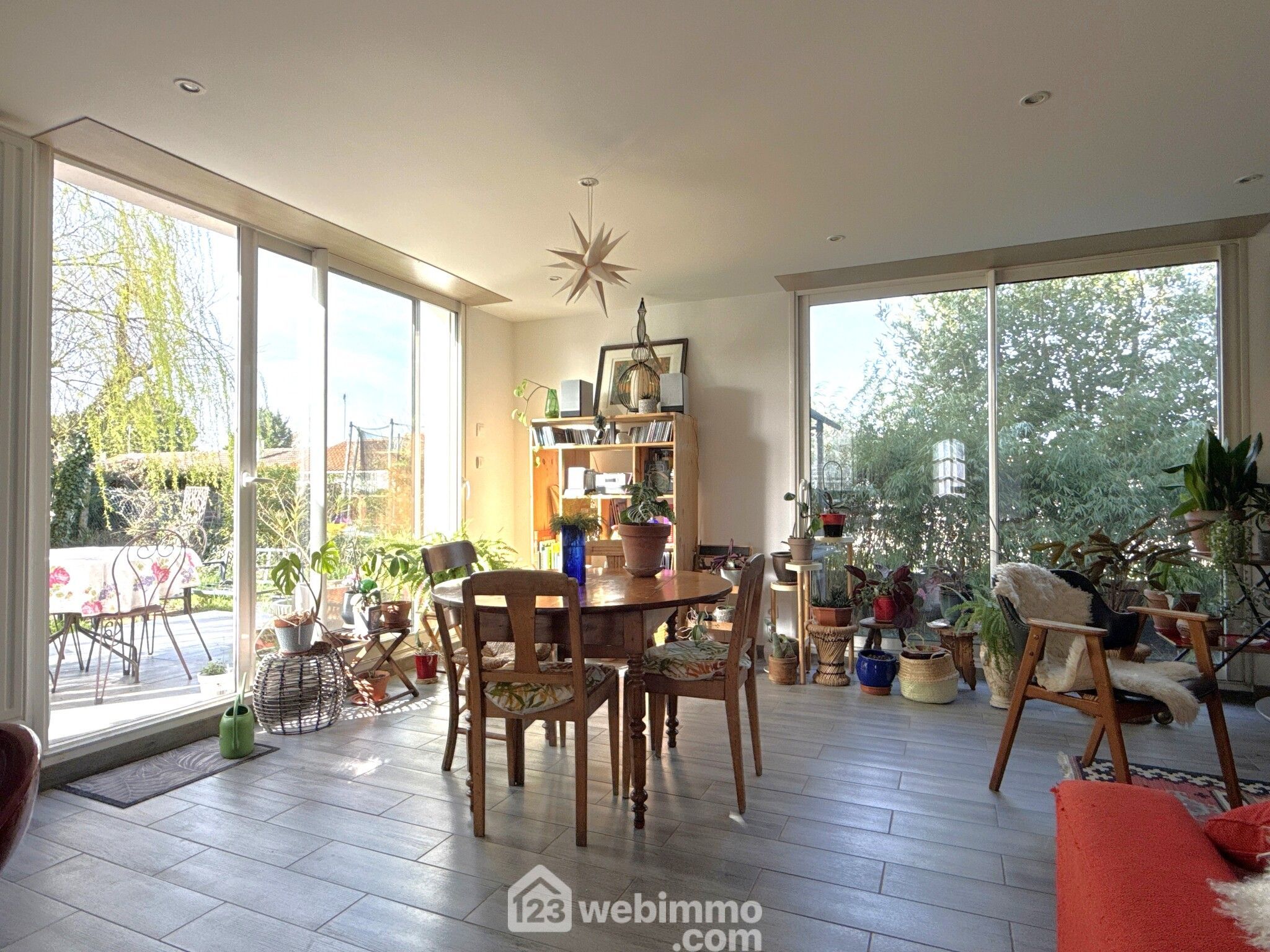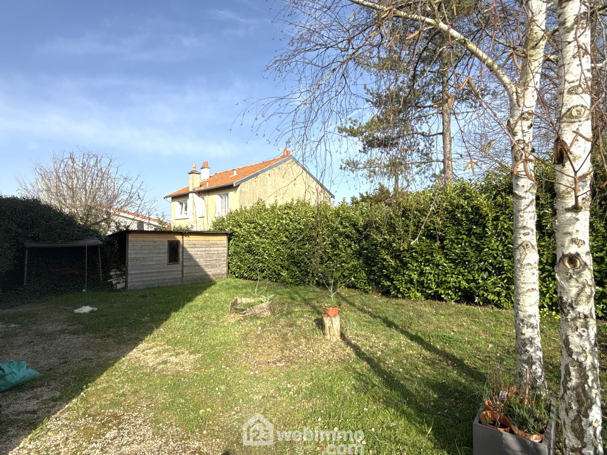 Maison rénovée des années 1980, 134 m2 habitables environ, 6 pièces, 4 chambres, cabanon de jardin, garage. Terrain clos de 549 m2.