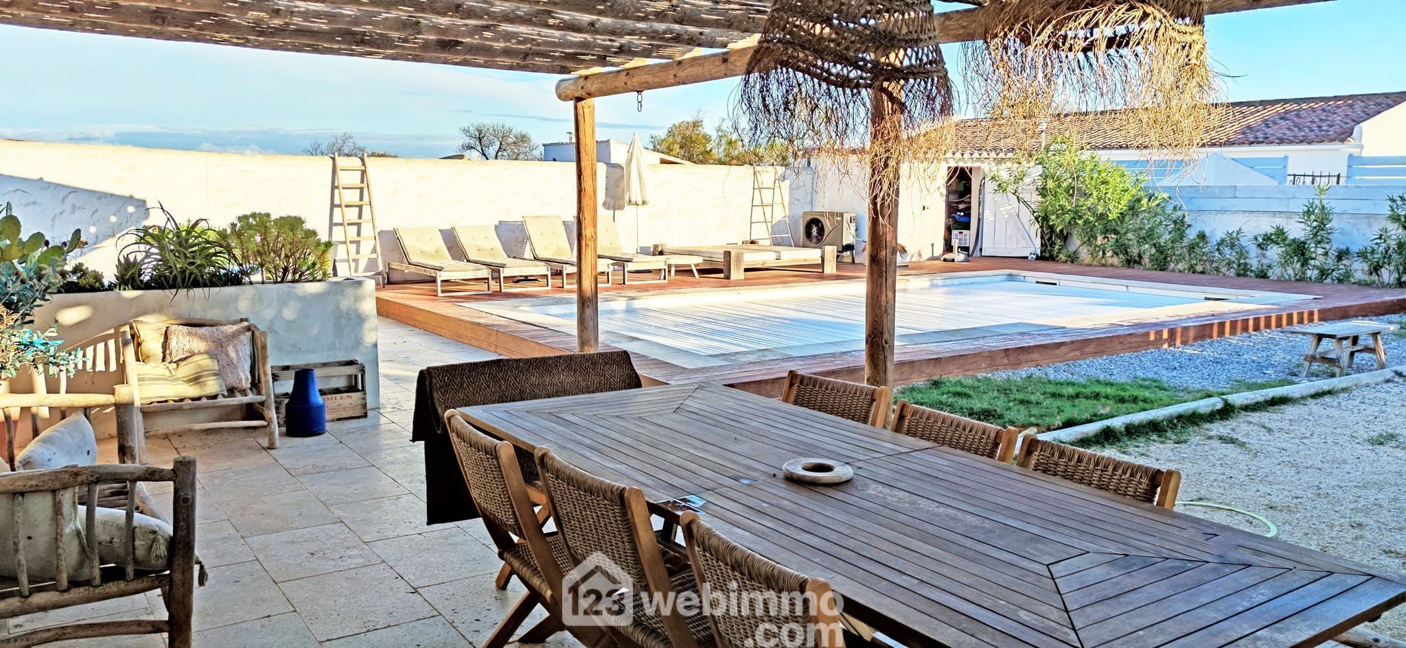 Le poolhouse équipée de sa terrasse ombragée et de sa cuisine d'été, vous feront passer des soirées entre amis ou en famille en admirant les couchés du soleil devant la piscine.