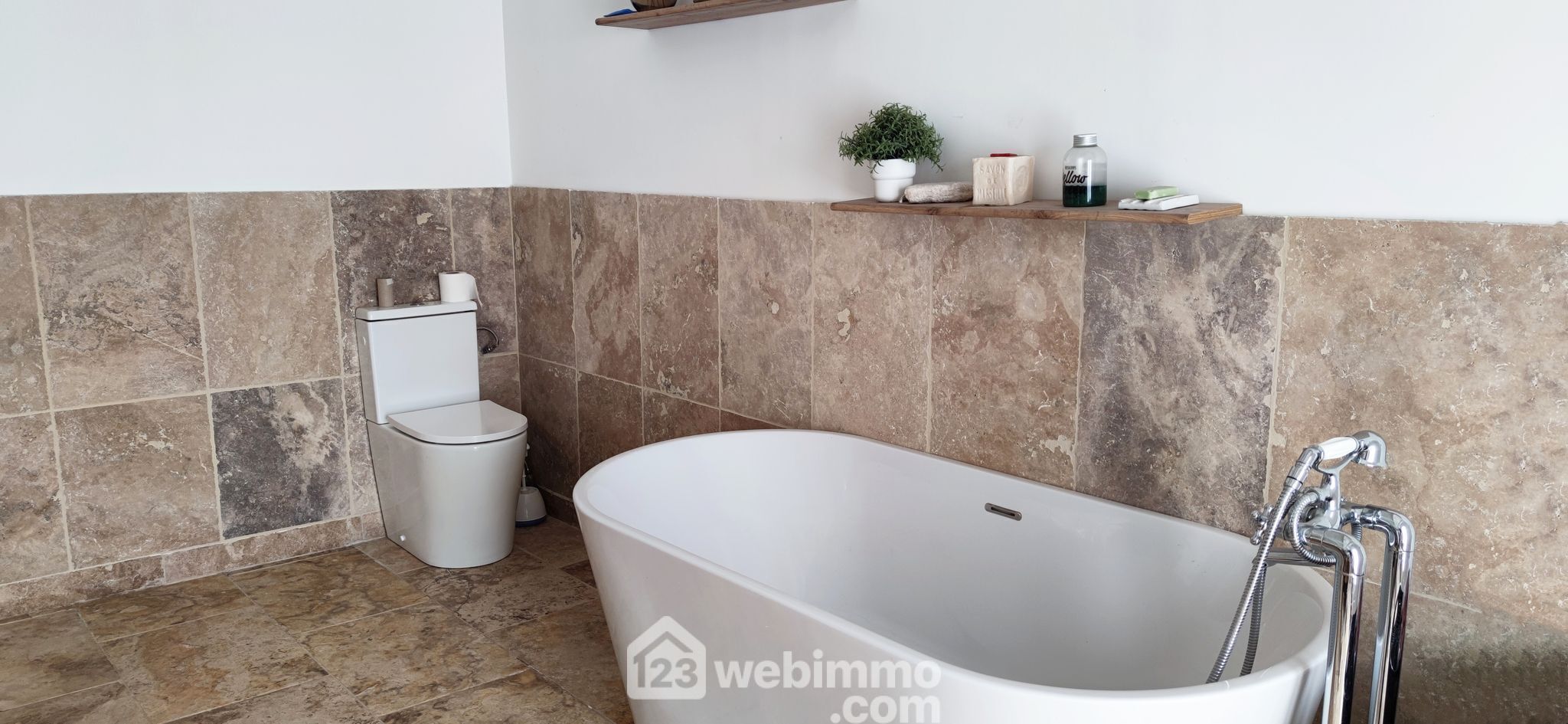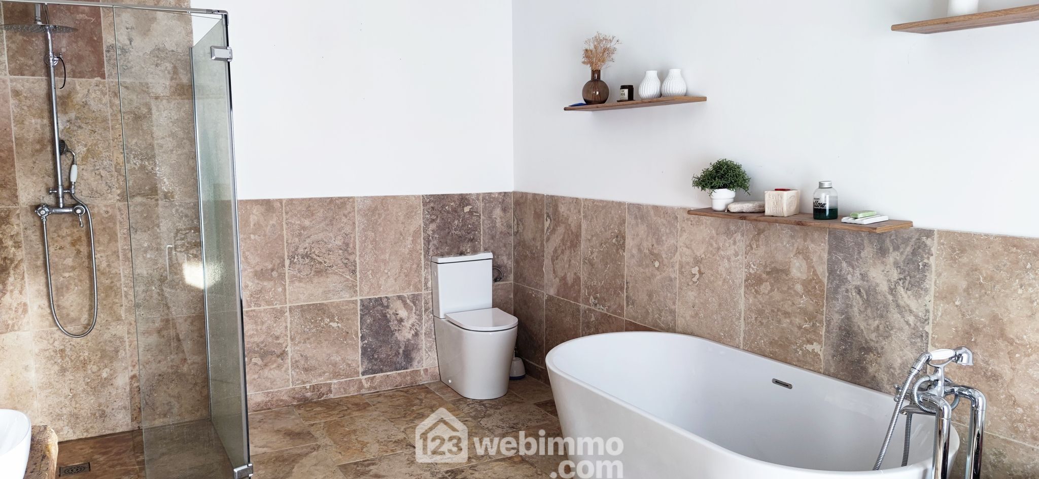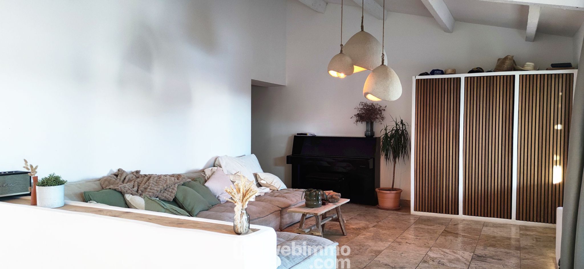 * Travertin dans toutes les pièces et sur la terrasse.