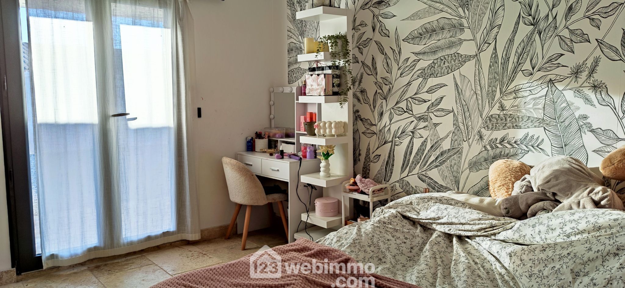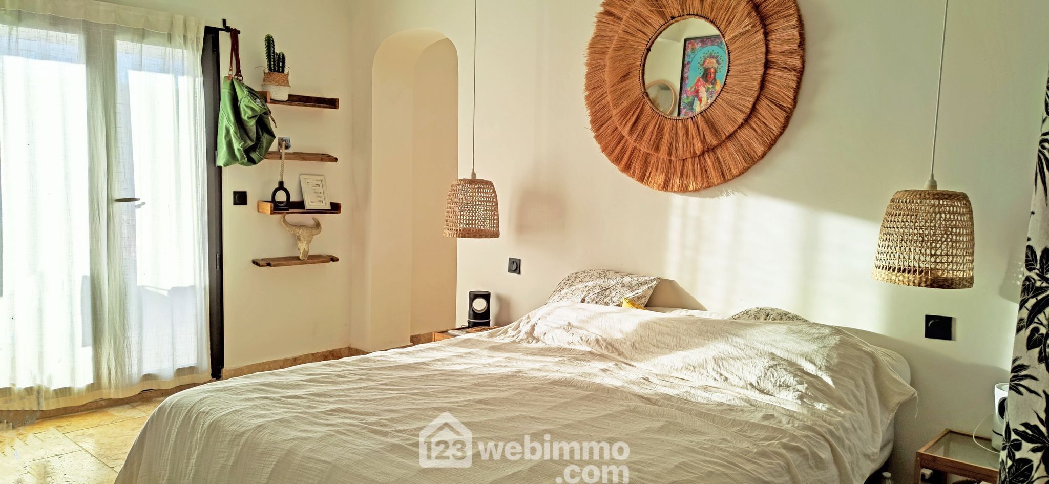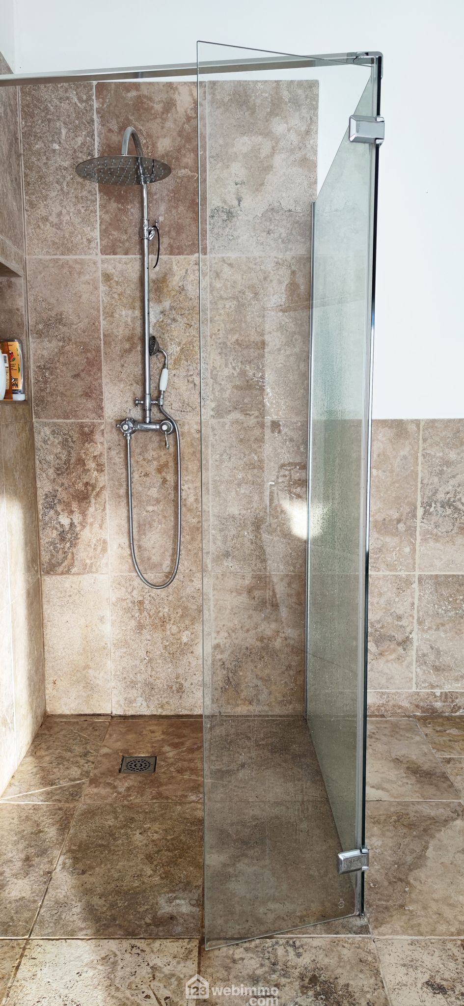 * Travertin dans toutes les pièces et sur la terrasse.