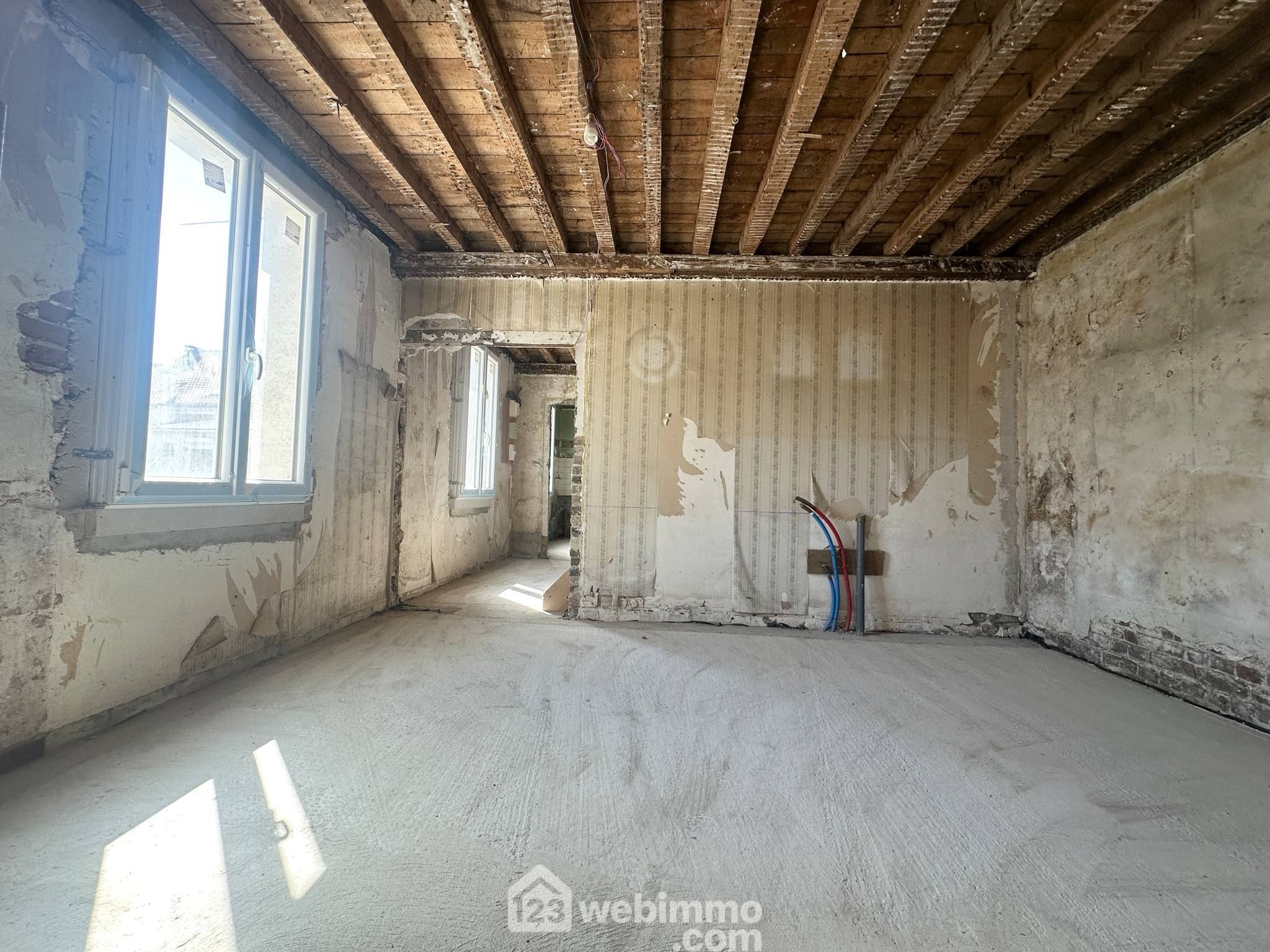 Profitez d’un séjour spacieux et lumineux de 39 m², d’une cuisine à aménager selon vos goûts, d’un bureau ou espace de rangement, ainsi que d’une salle de bains avec WC à créer. Les combles aménageables de 54 m² permettent d’envisager au moins 3 chambres !