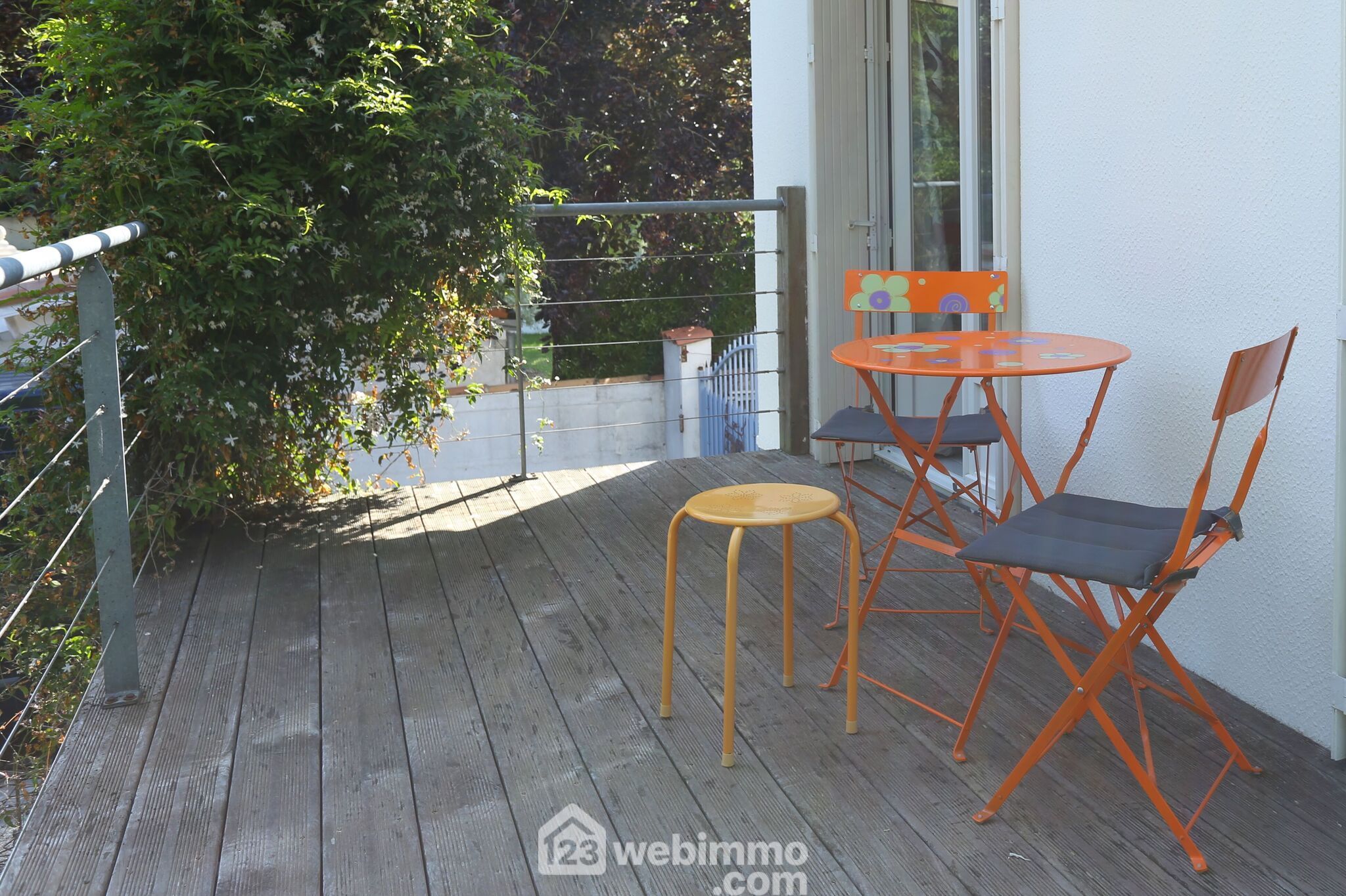A l'étage, elle se compose d'une grande pièce de vie traversante et lumineuse de 40m² comprenant salle à manger/salon agrémentée d'un poêle et ouvrant sur une terrasse bois. Cuisine indépendante, une chambre/bureau, une SDB, un WC.
