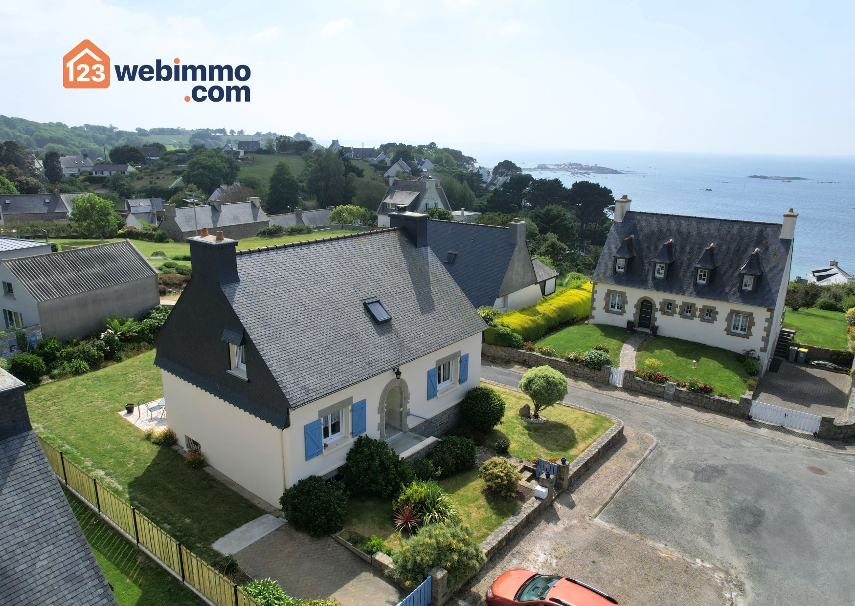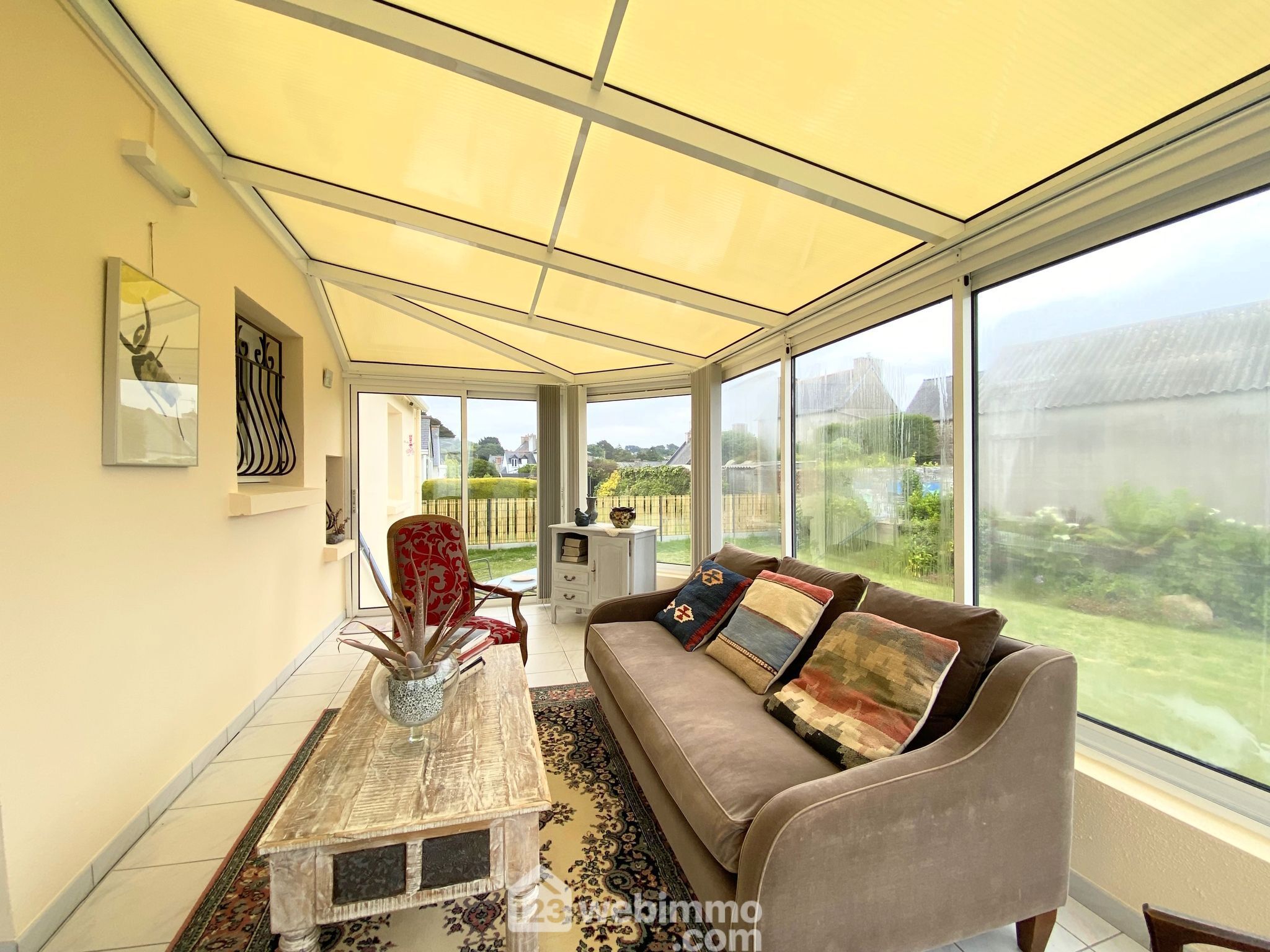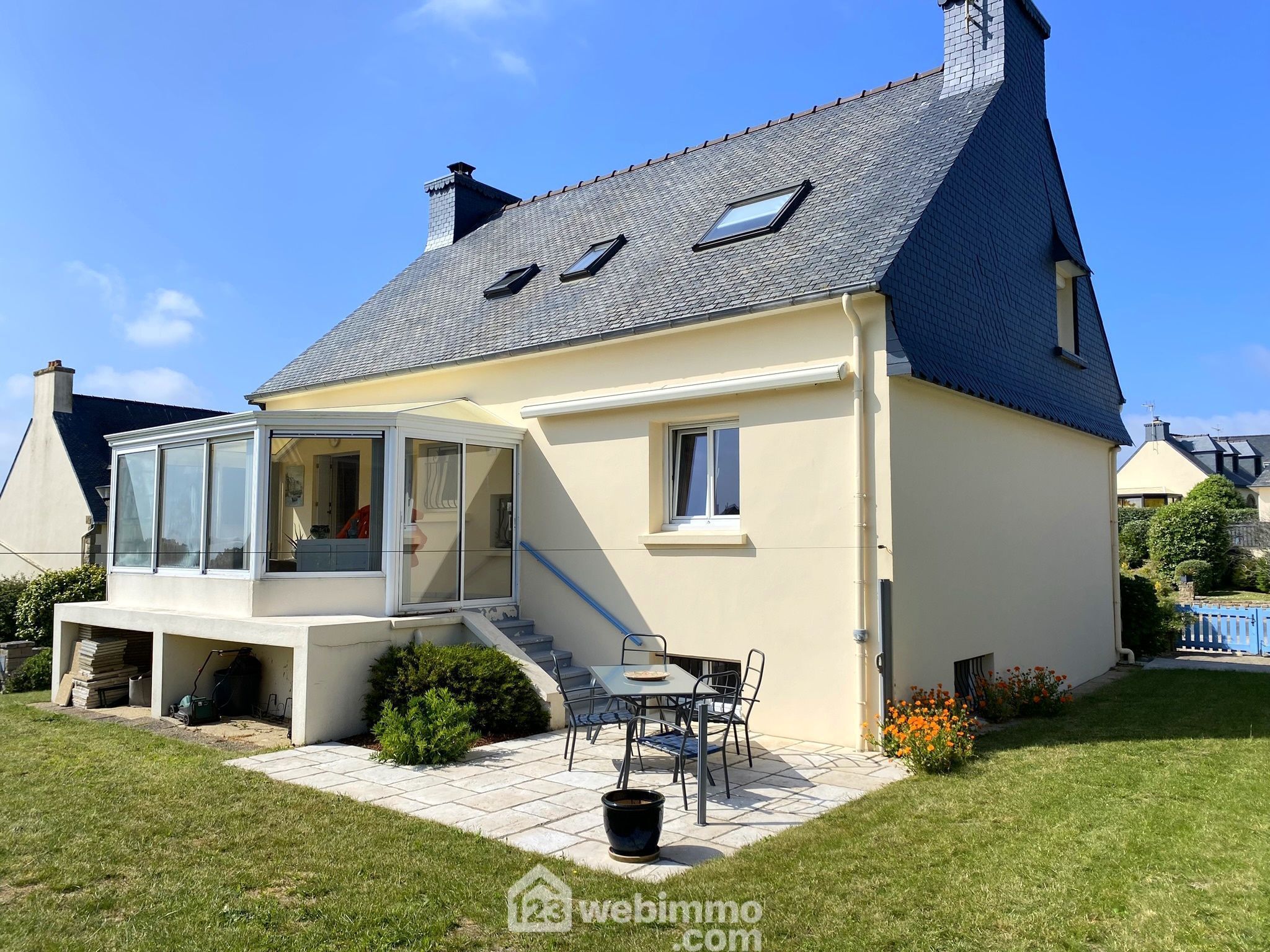 Au calme, à 300m de la plage de Notigou et du Dourven, sur un terrain de 559m2, maison néo-bretonne de 135m2 habitables avec sous-sol.