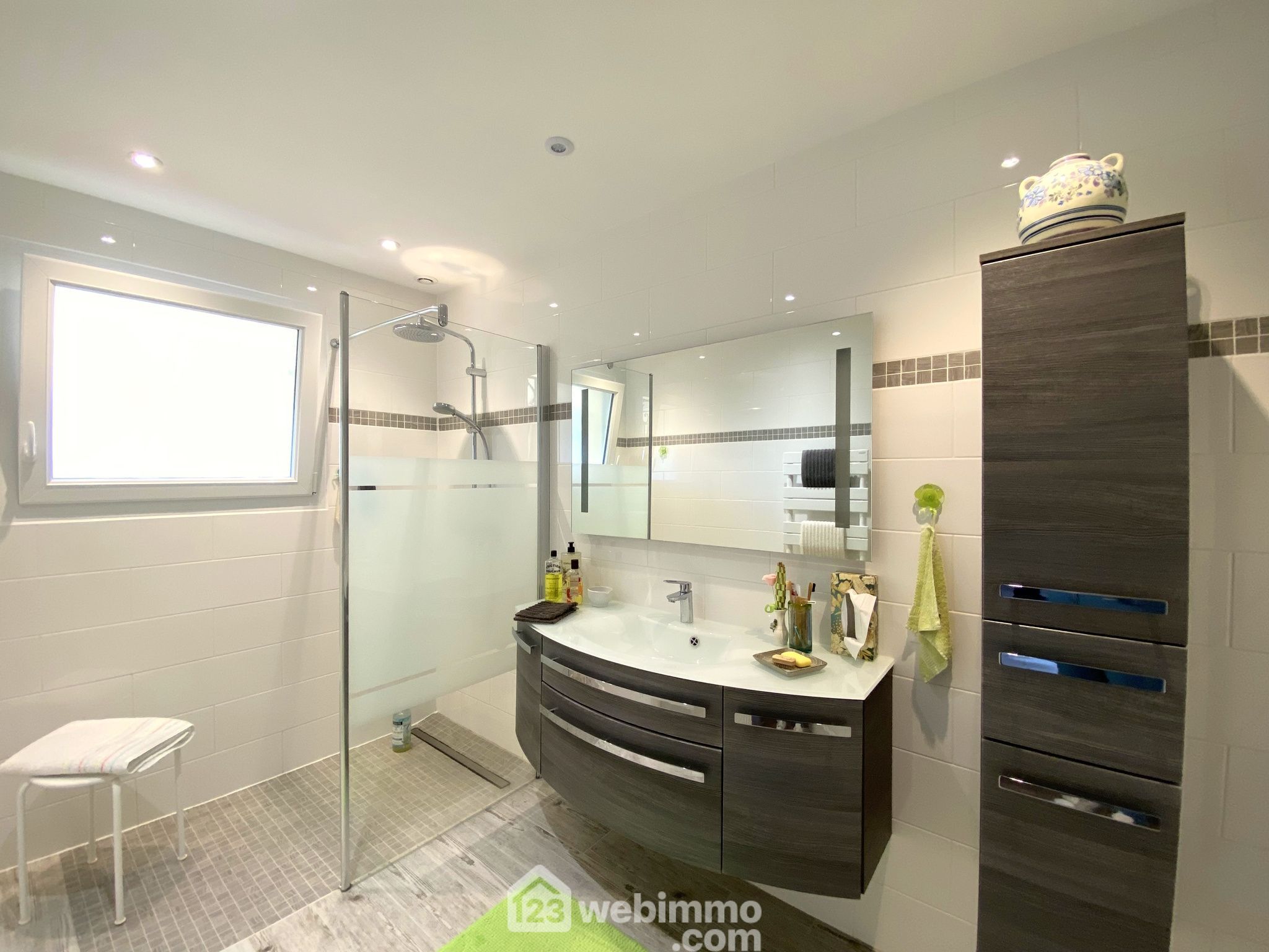 La maison dispose également d'un sous-sol total de 80m2 répartis en un espace garage de 36m2 avec porte automatique, un espace atelier de 20m2 et un espace buanderie avec évier de 24m2.