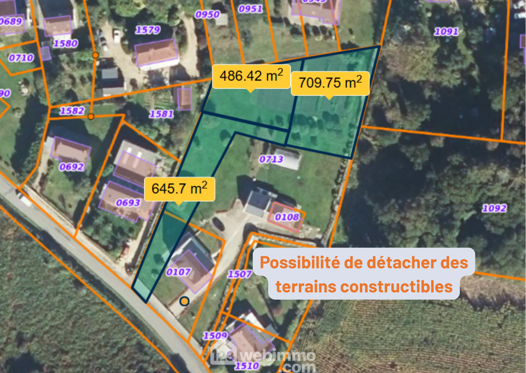 L’ensemble de la propriété est mis en vente. Toutefois, vous aurez aussi la possibilité de détacher deux lots constructibles, un véritable atout pour un projet d’investissement ou de valorisation patrimoniale (voir photo).