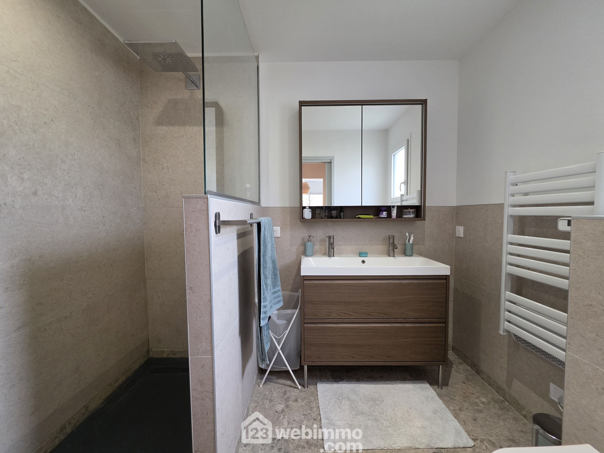 Dès l’entrée, vous serez séduits par une superbe pièce de vie baignée de lumière, ouverte sur l’extérieur grâce à ses larges baies vitrées à galandage, offrant une véritable continuité entre intérieur et extérieur.