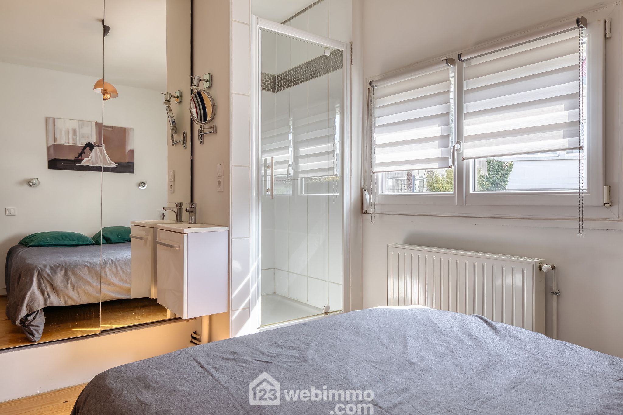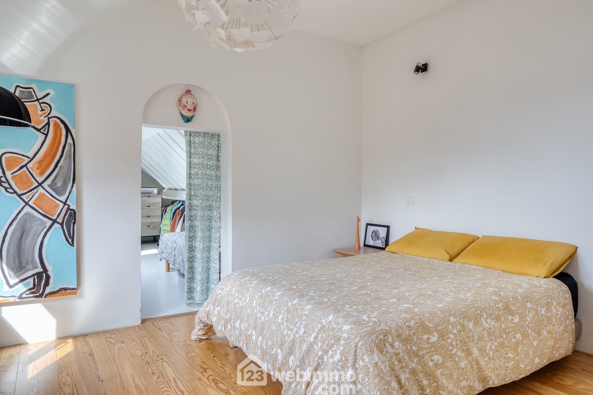À l’étage, l’espace nuit propose deux chambres. L’une dispose de sa douche privative, tandis que la seconde bénéficie d’une pièce en enfilade pouvant idéalement faire office de bureau ou de dressing. Une salle de douche ainsi que des toilettes séparées complètent ce niveau.