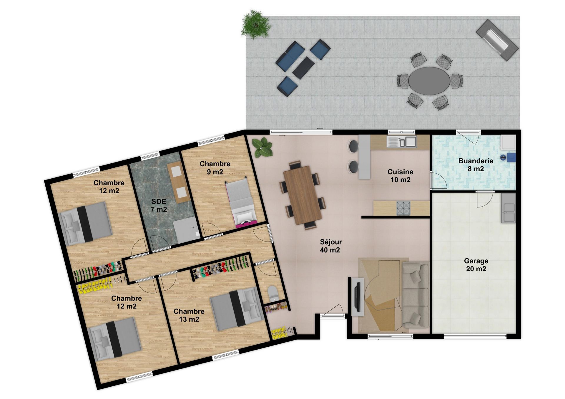 Maison plain-pied, 137 m2 habitables, 6 pièces, 4 chambres + 1 bureau indépendant, sur un terrain de 970 m2.
