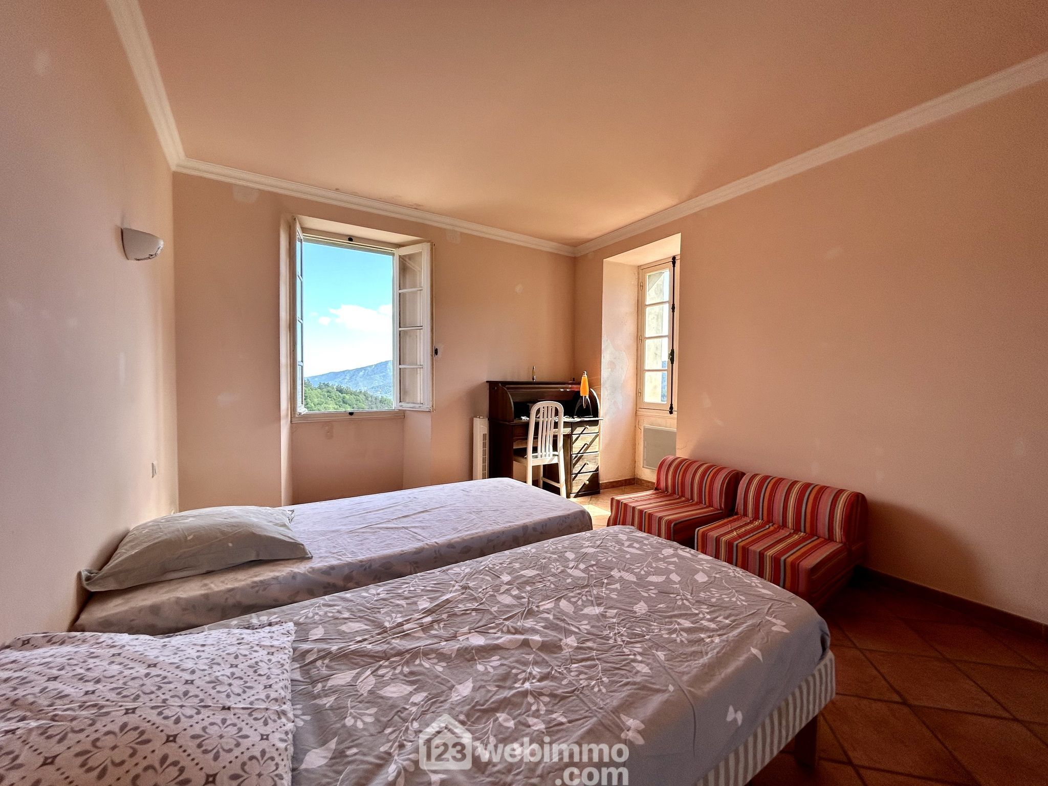 Castagniccia - Dans le village de Giocatojo, maison individuelle en pierres sèches de 2 étages, organisée en T4 de 140 m2 habitable. Complétés par un atelier de 13 m2 en rdc avec un accès sur l'exterieur et une cave de 13 m3 également.