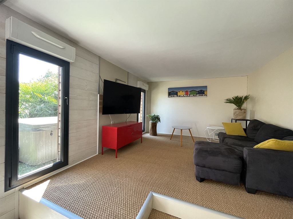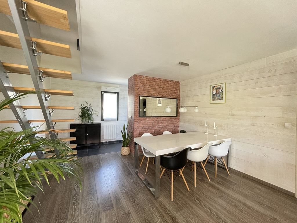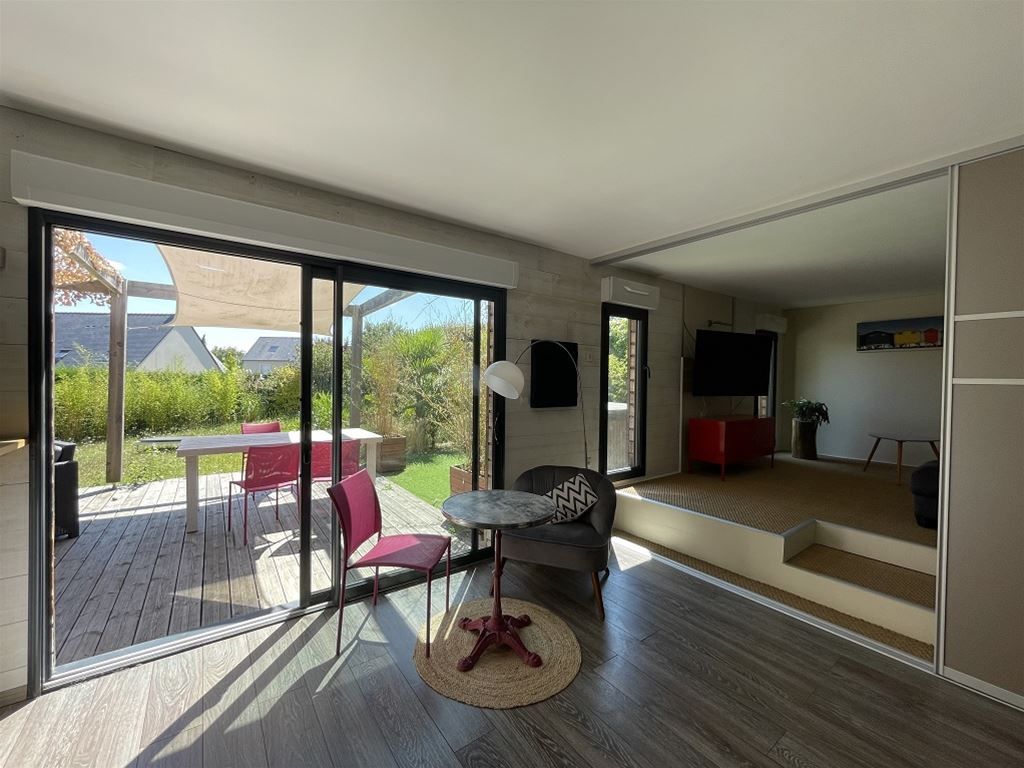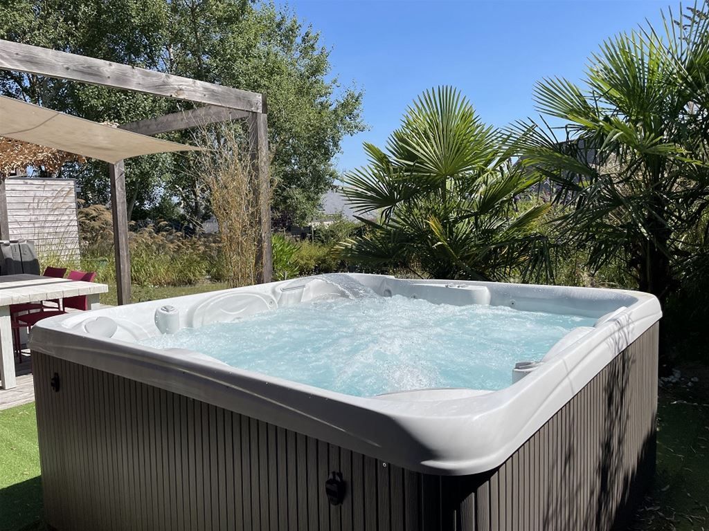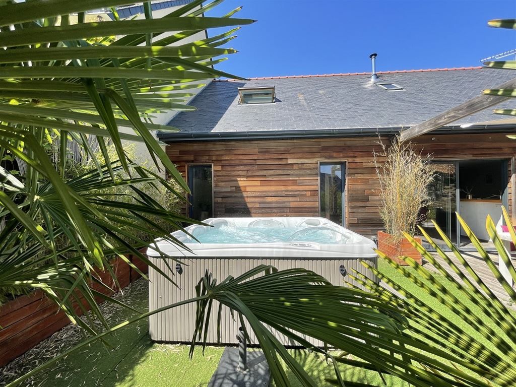 L'étage est composé d'une suite parentale de 22 m² et d'une chambre de 12 m². La maison possède une terrasse bois avec un spa 6 places.