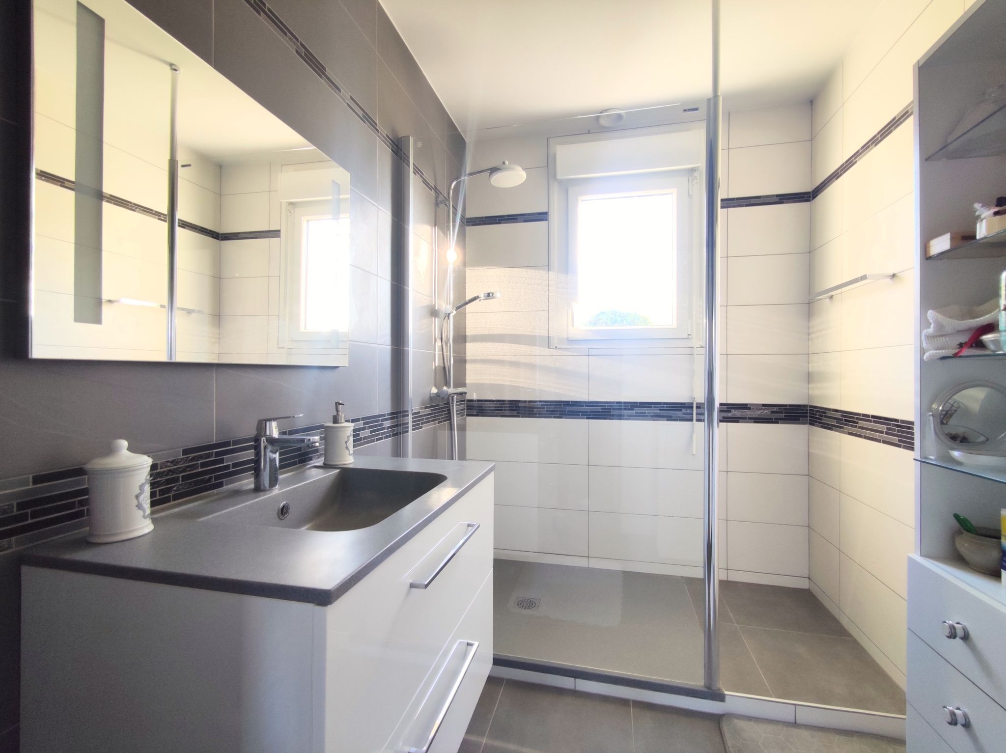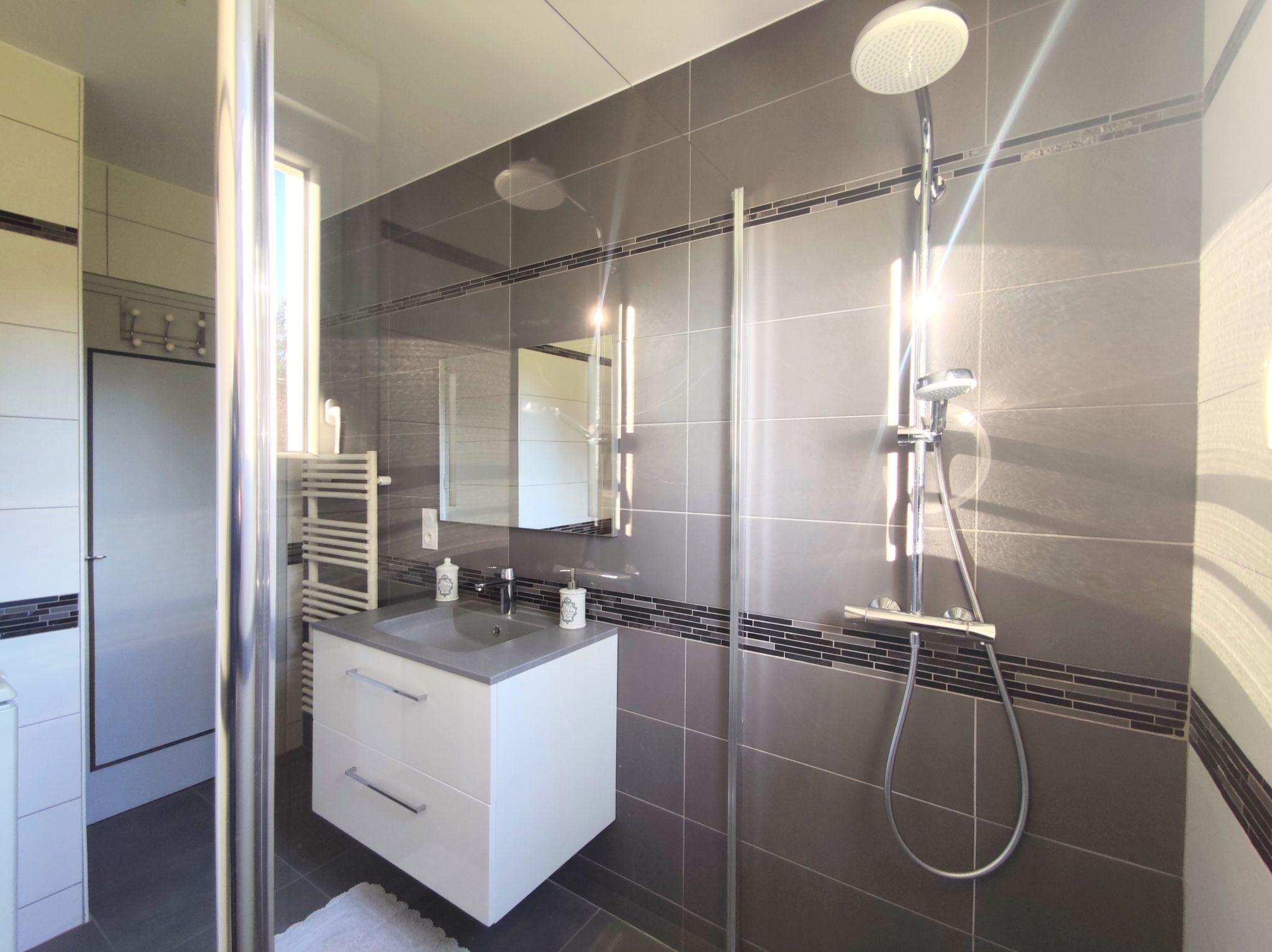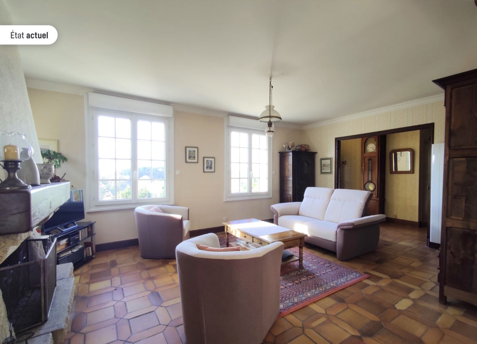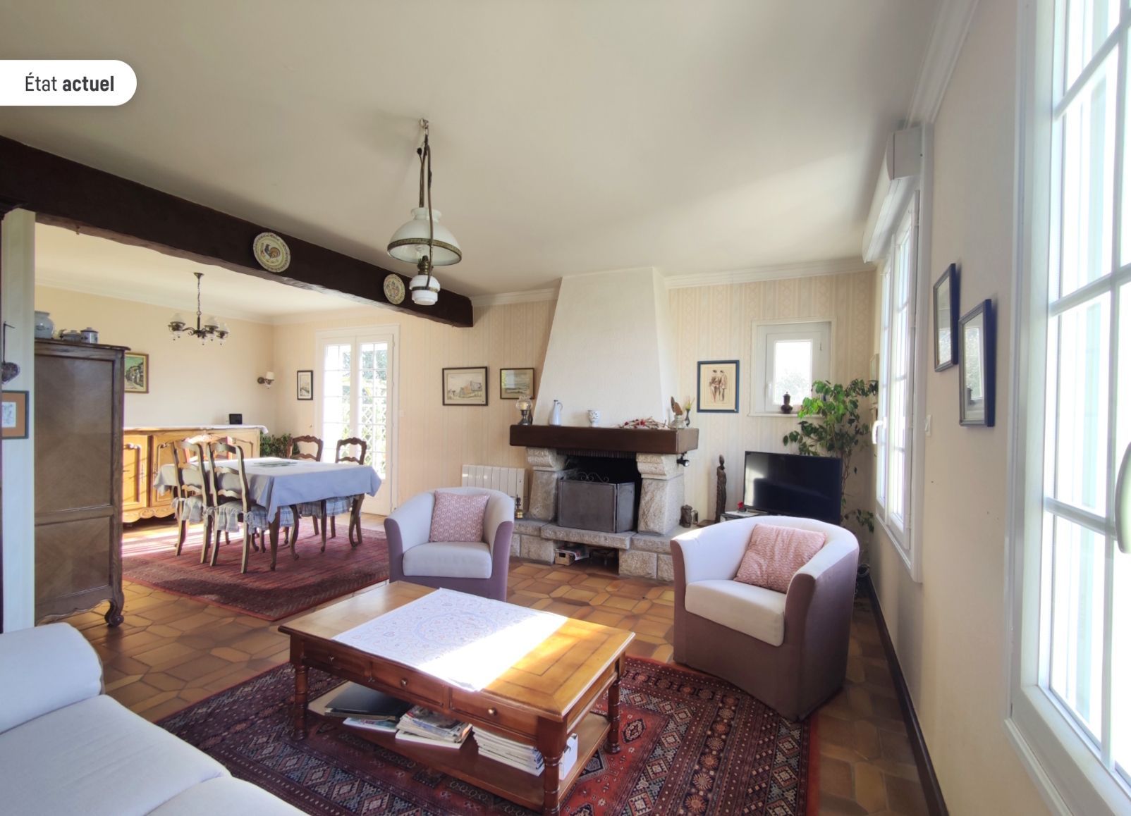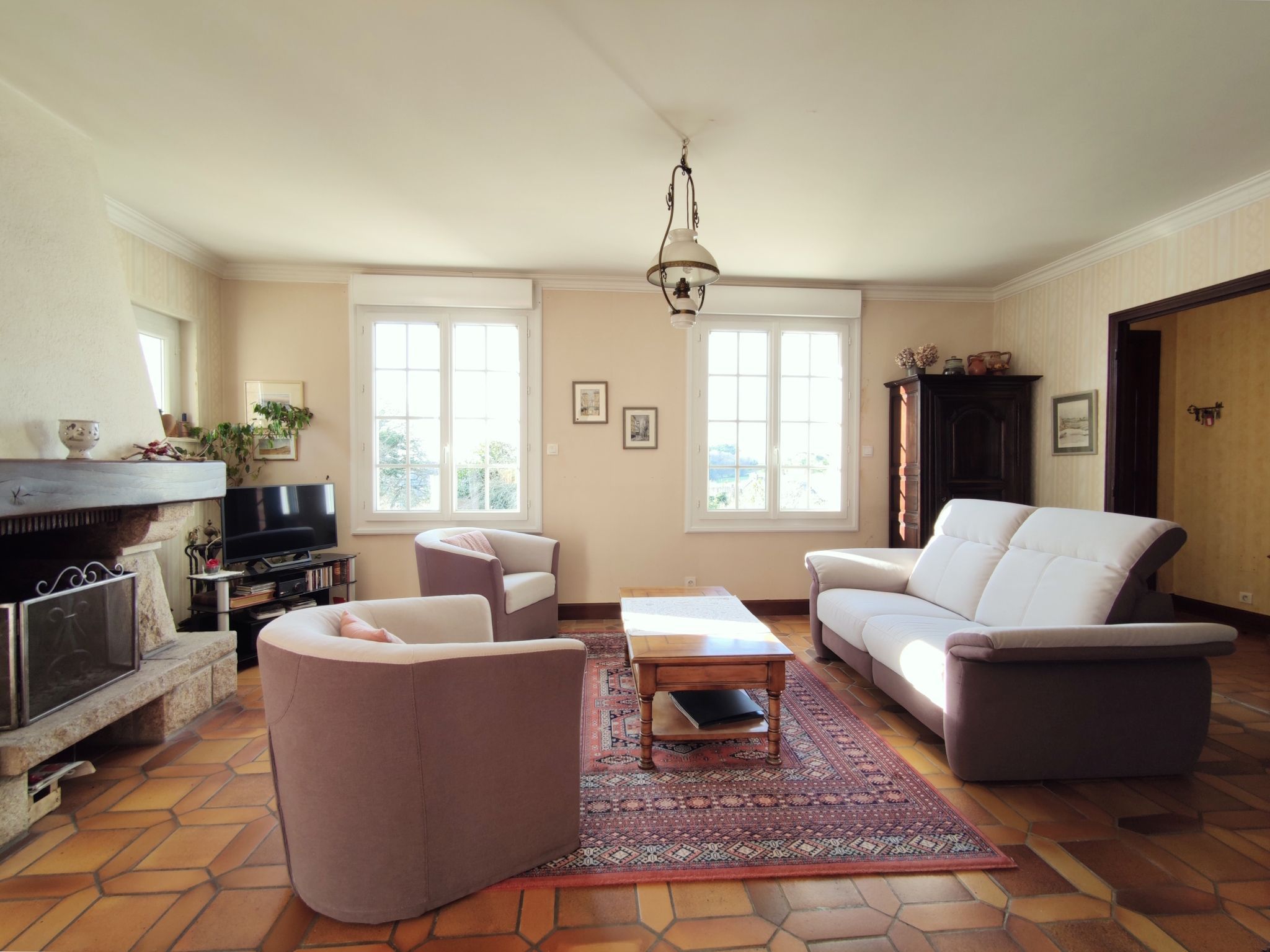 Sur un terrain de 1500m2, maison avec vue mer de 140m2 habitables de 5 chambres avec grand garage de 66m2 et terrasse au sud de 70m2.