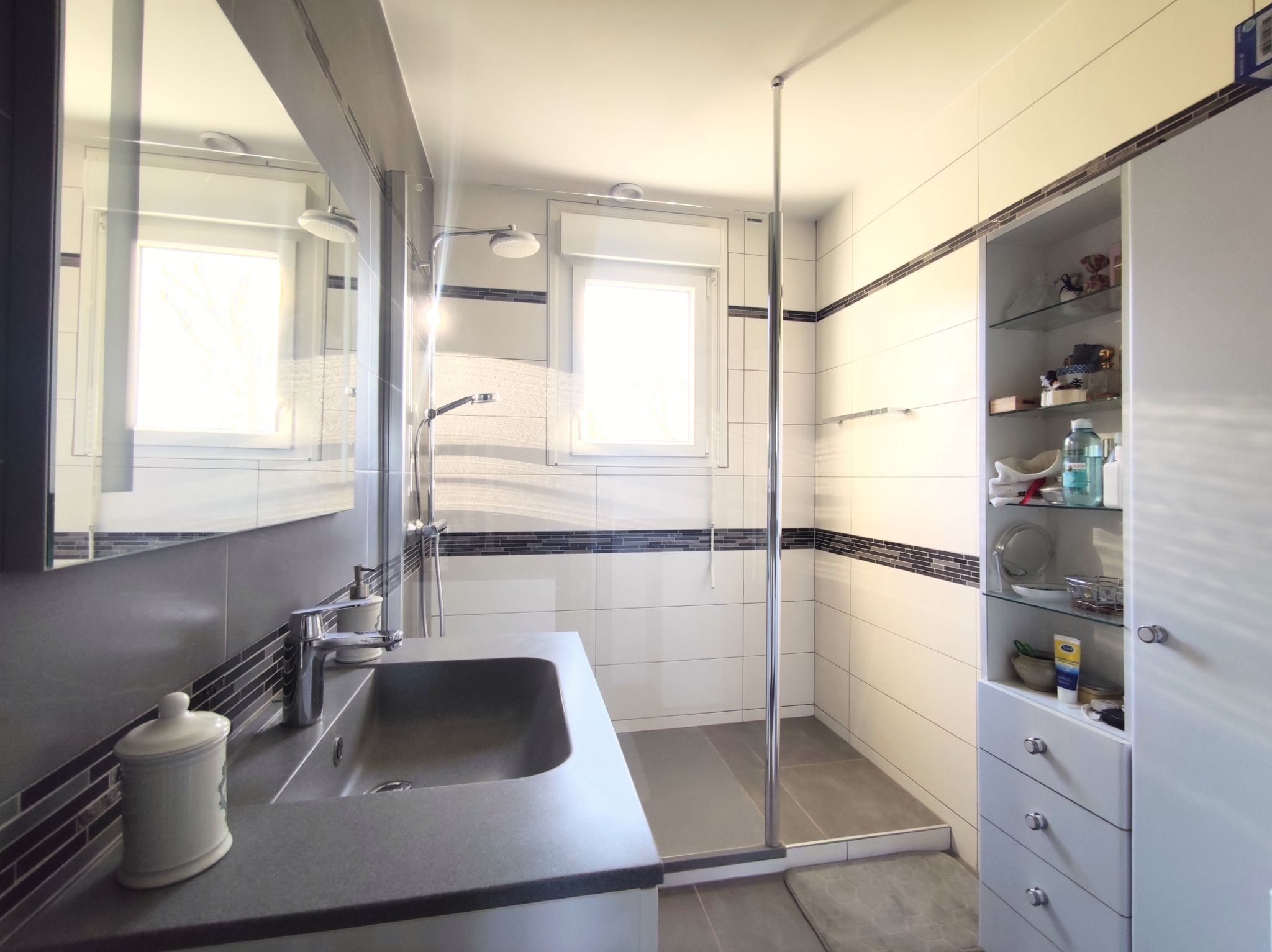 Le rez-de-chaussée se compose d'une confortable entrée de 10m2 avec placards de rangement, desservant une grande pièce de vie salon séjour salle à manger gorgée de lumière de 33m2, prolongée par une terrasse exceptionnelle de 70m2. Attenant, et avec la possibilité d'abattre le mur qui la sépare du salon, une cuisine d'époque aménagée et équipée de 10m2. Une chambre de 12m2 avec placard intégré, une seconde chambre/bureau de 10m2 ainsi qu'une salle de douche récente et un WC séparé complètent ce niveau de 86m2 qui offre un bel espace de vie de plain-pied.