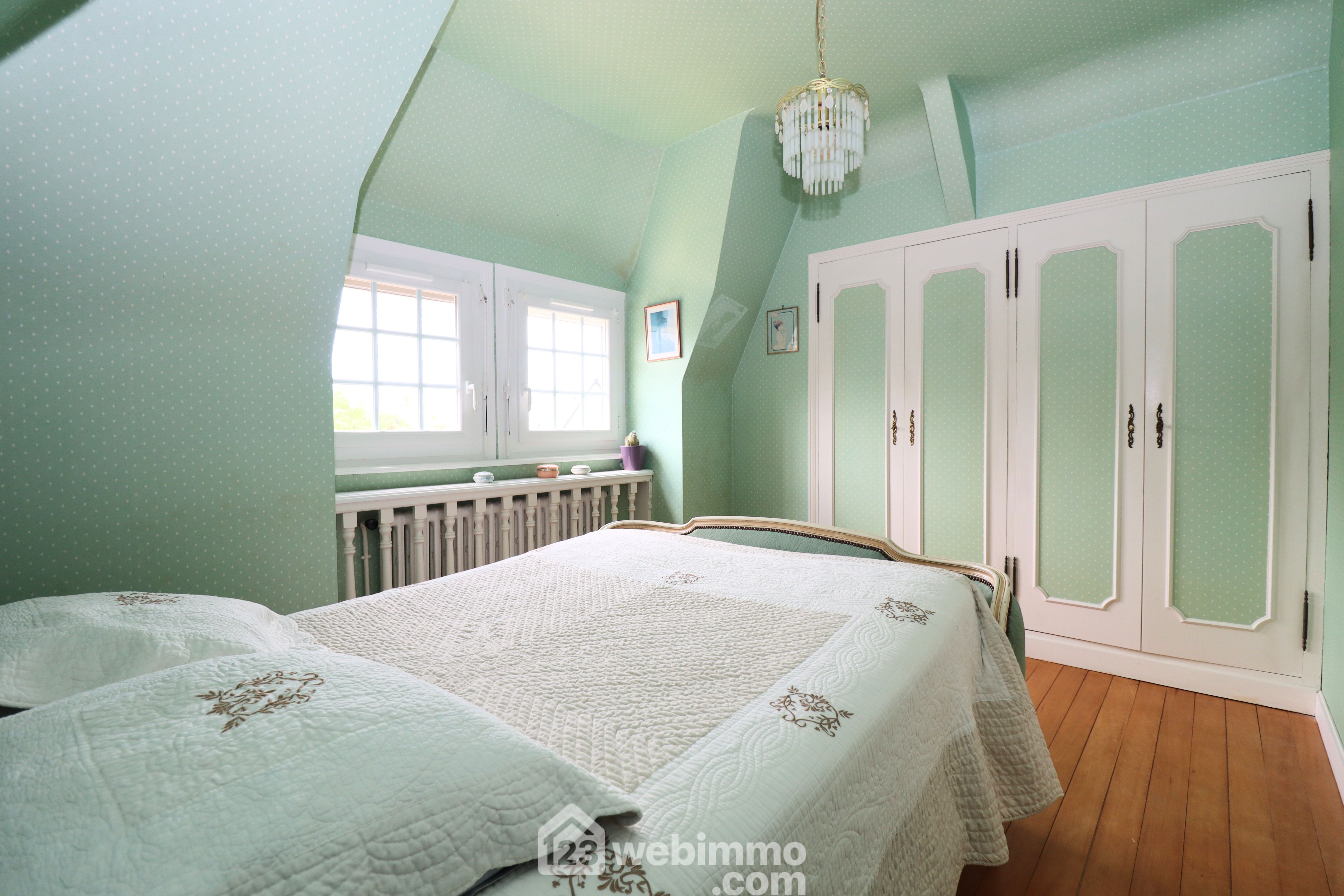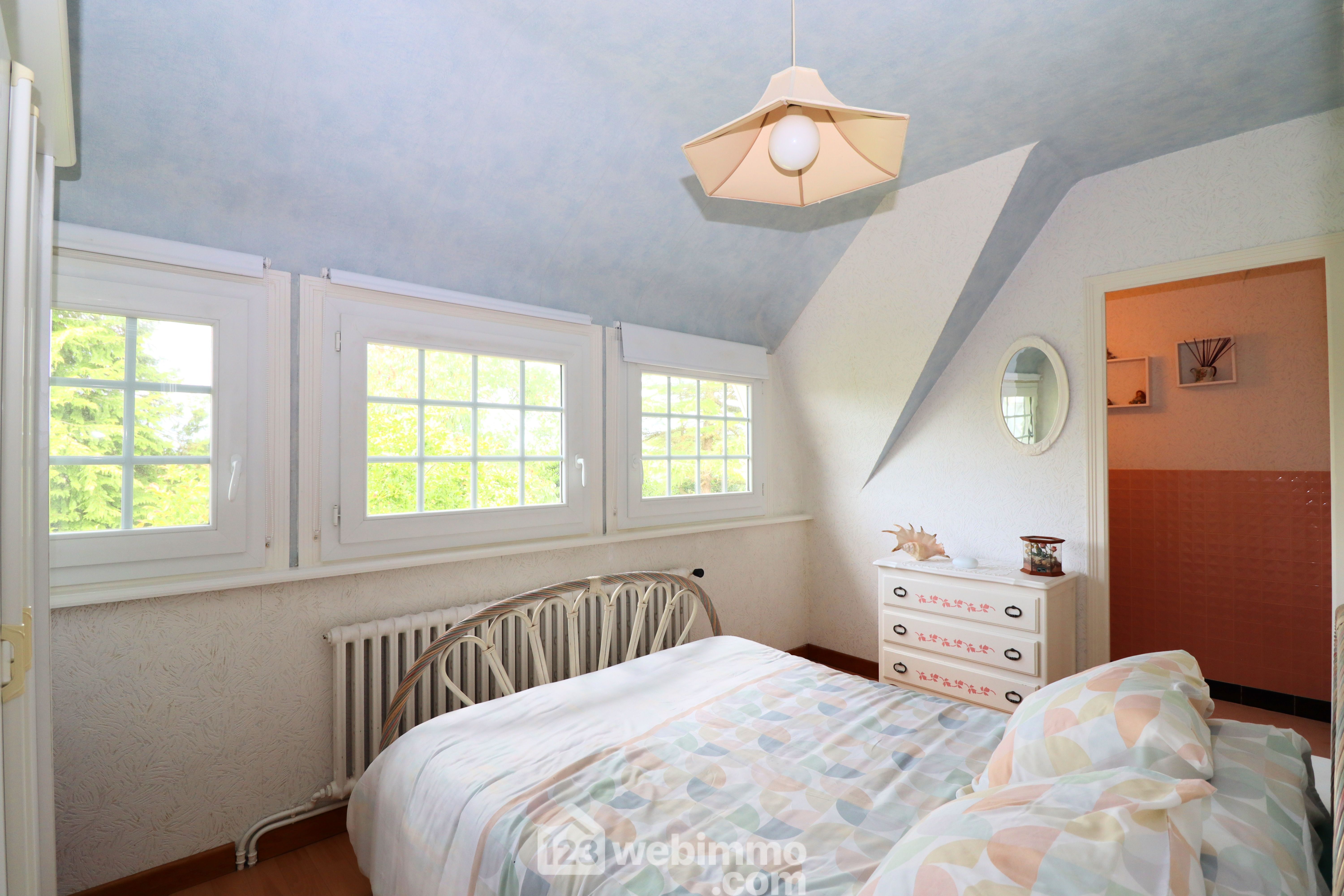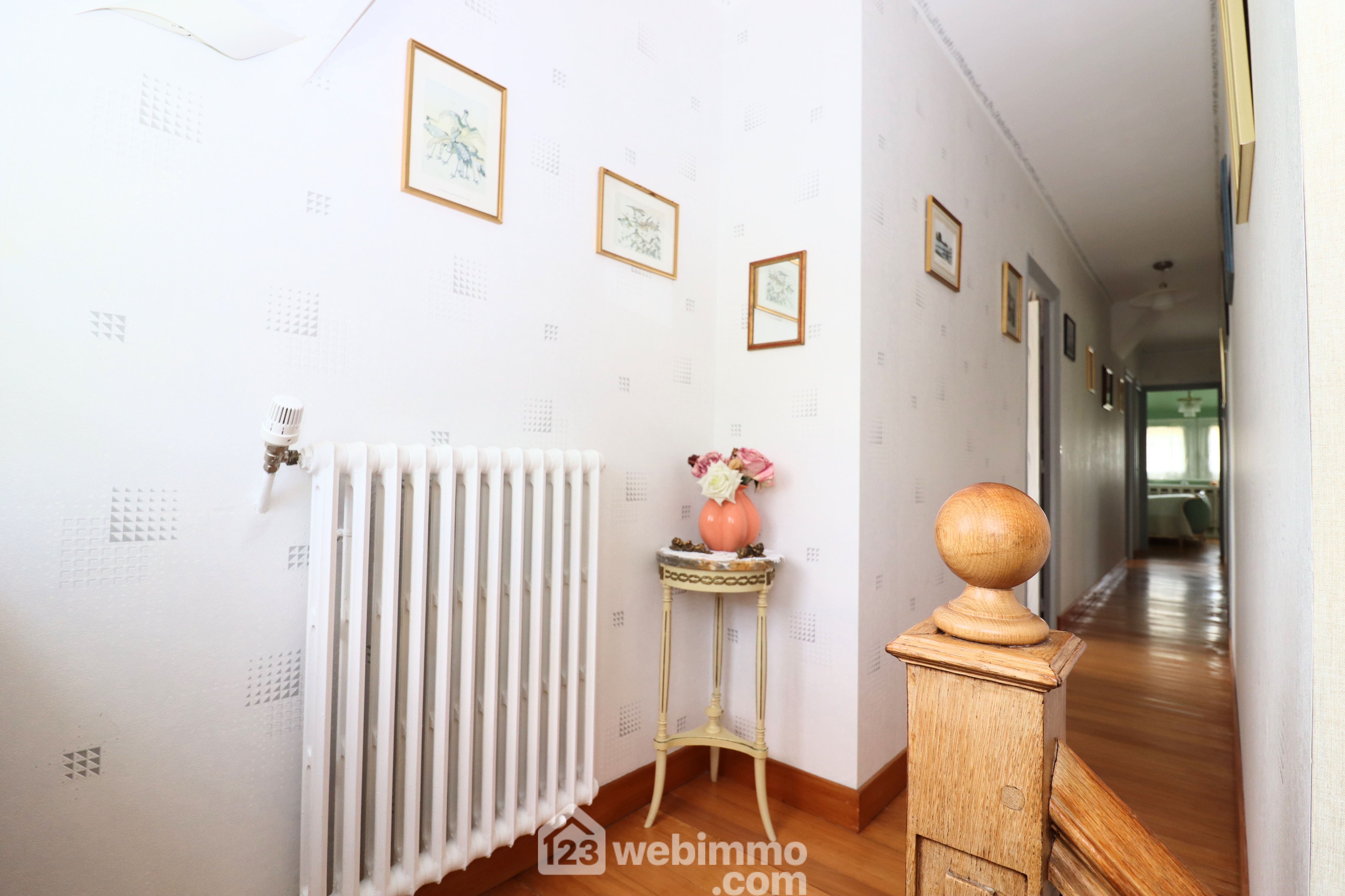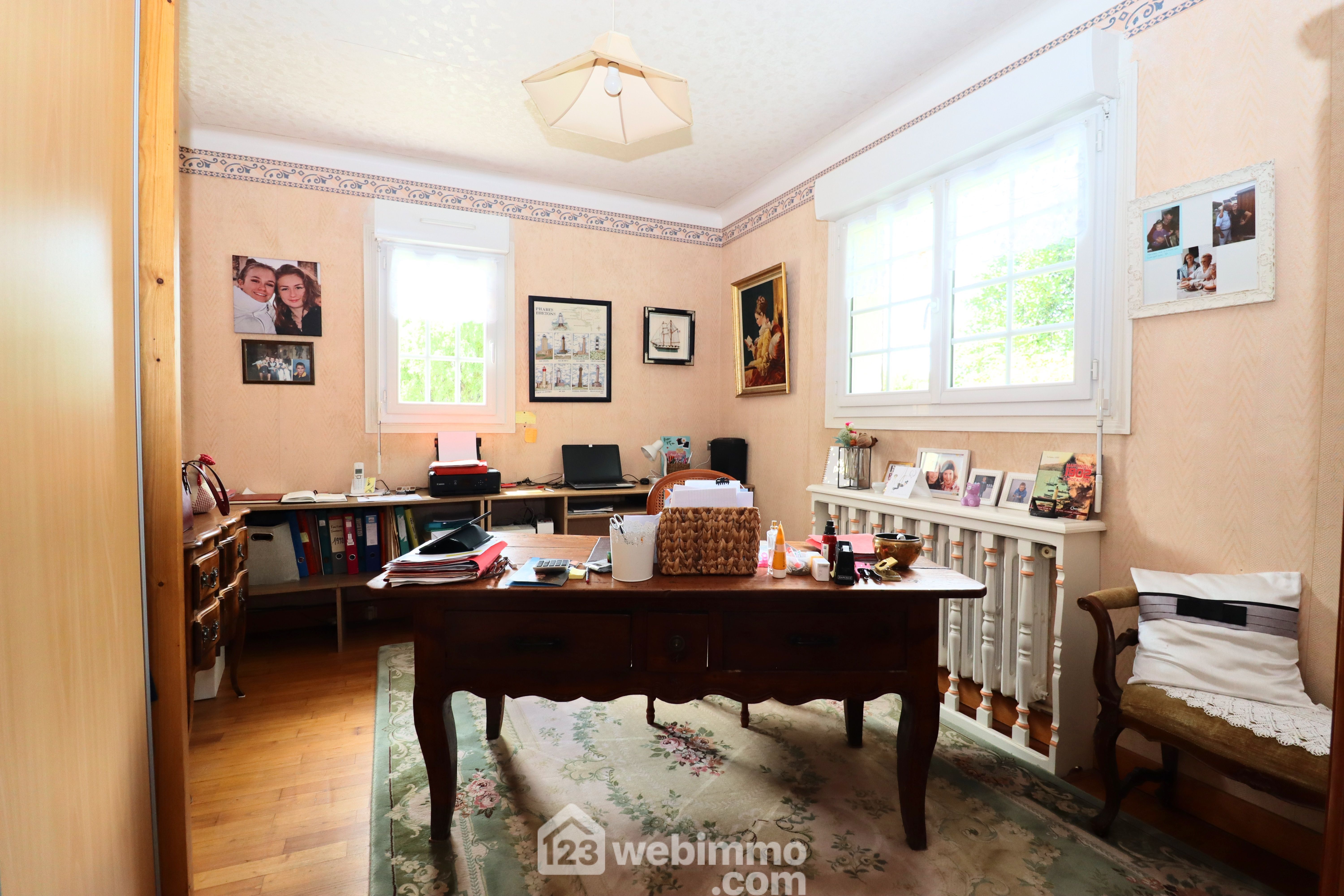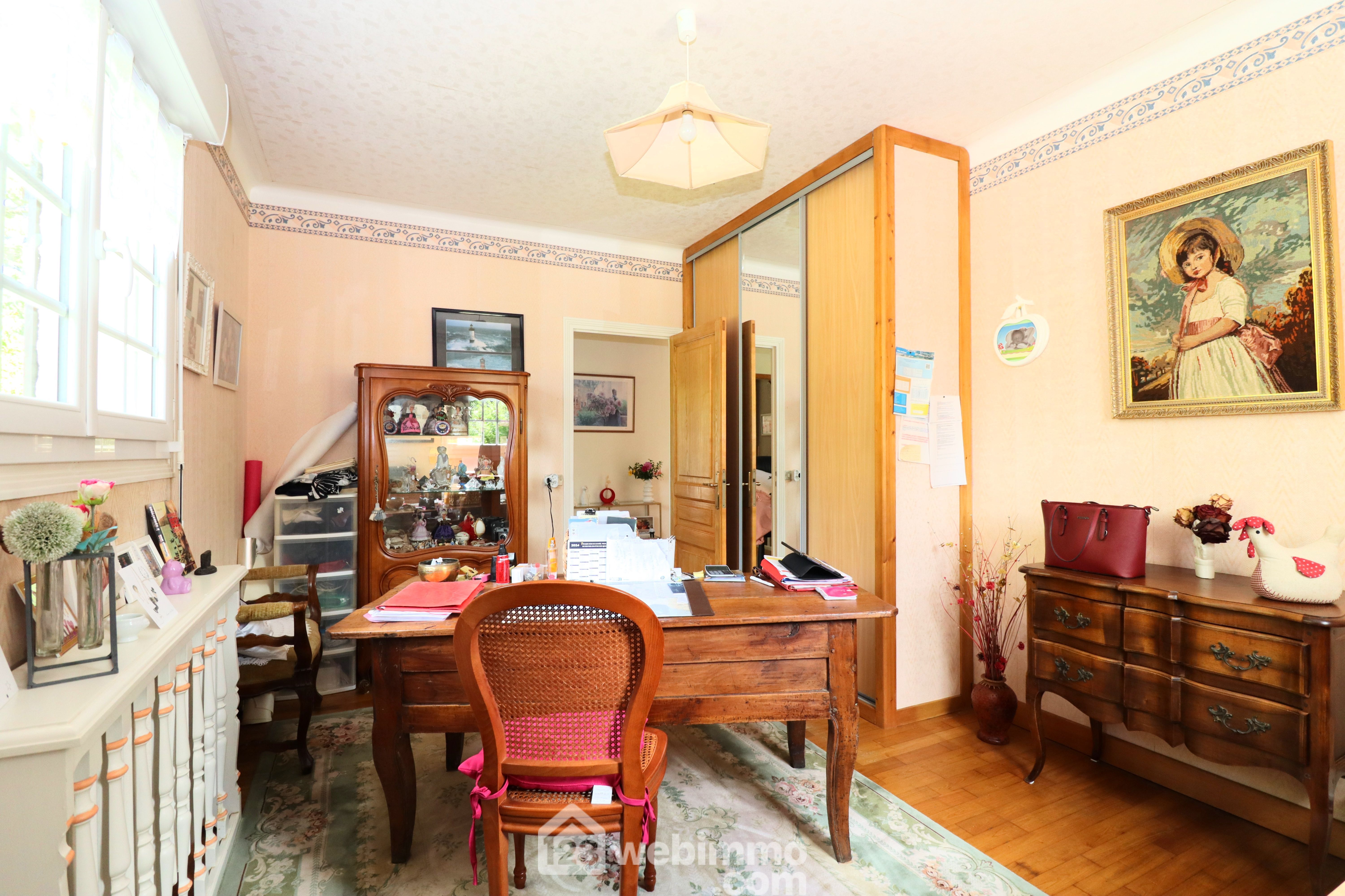 A l'étage, le palier de 9m2 dessert 3 chambres de 8 à 10m2 habitables, un bureau de 7m2 avec dressing, une salle de douches de 8m2 et un WC séparé.