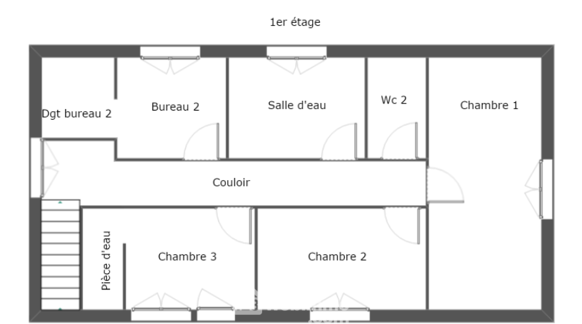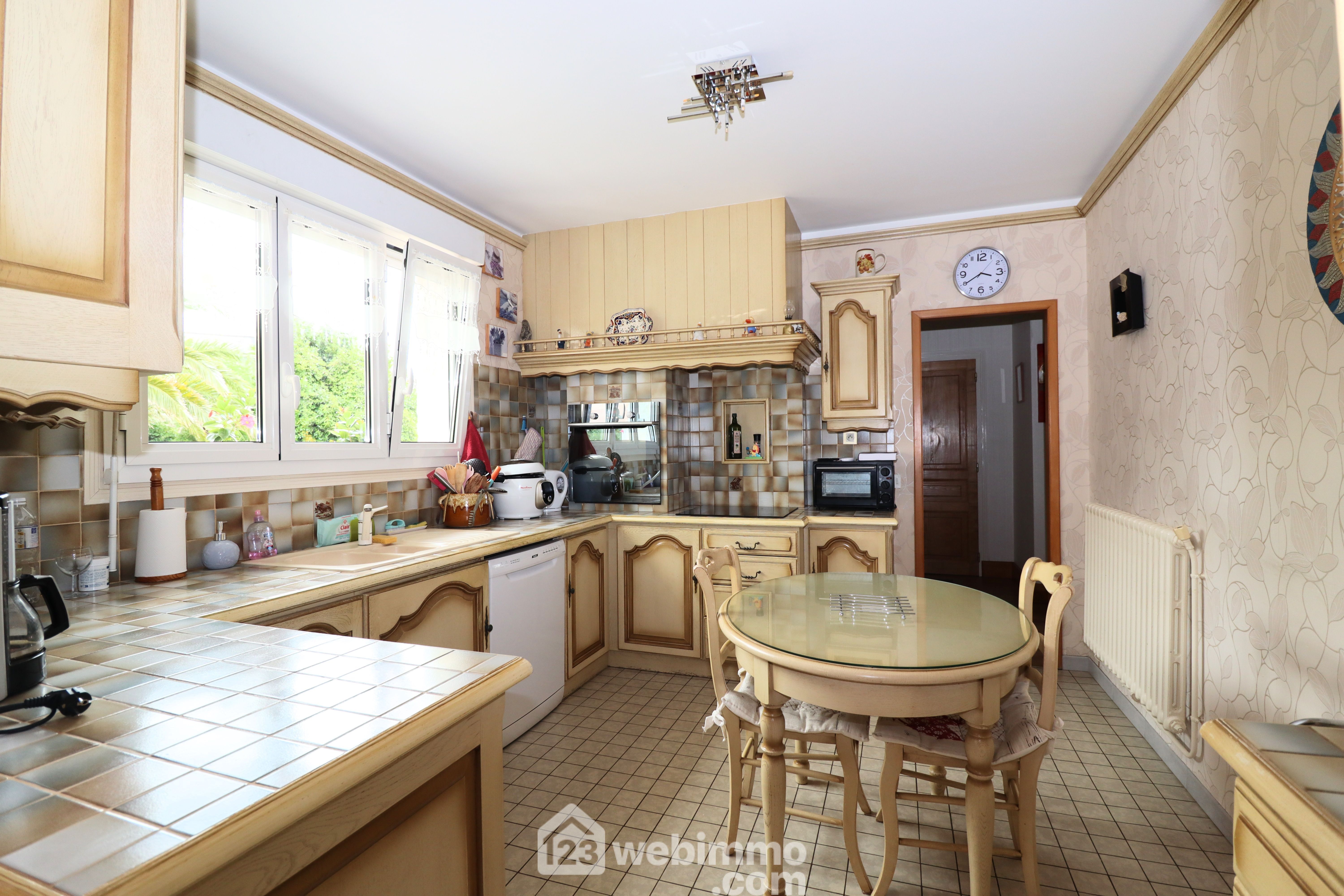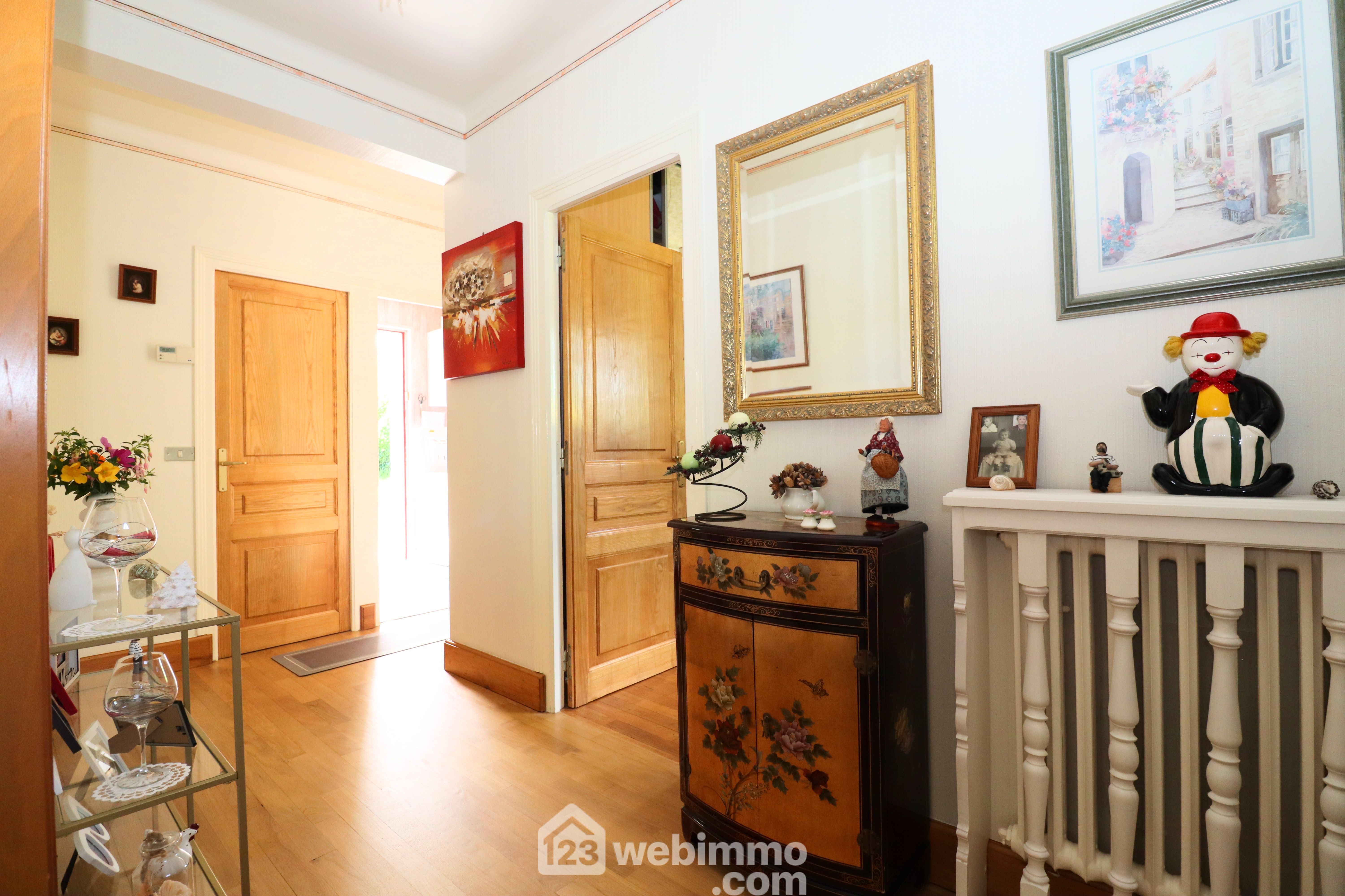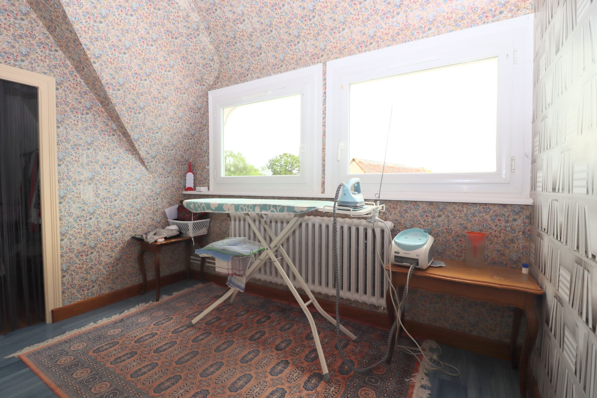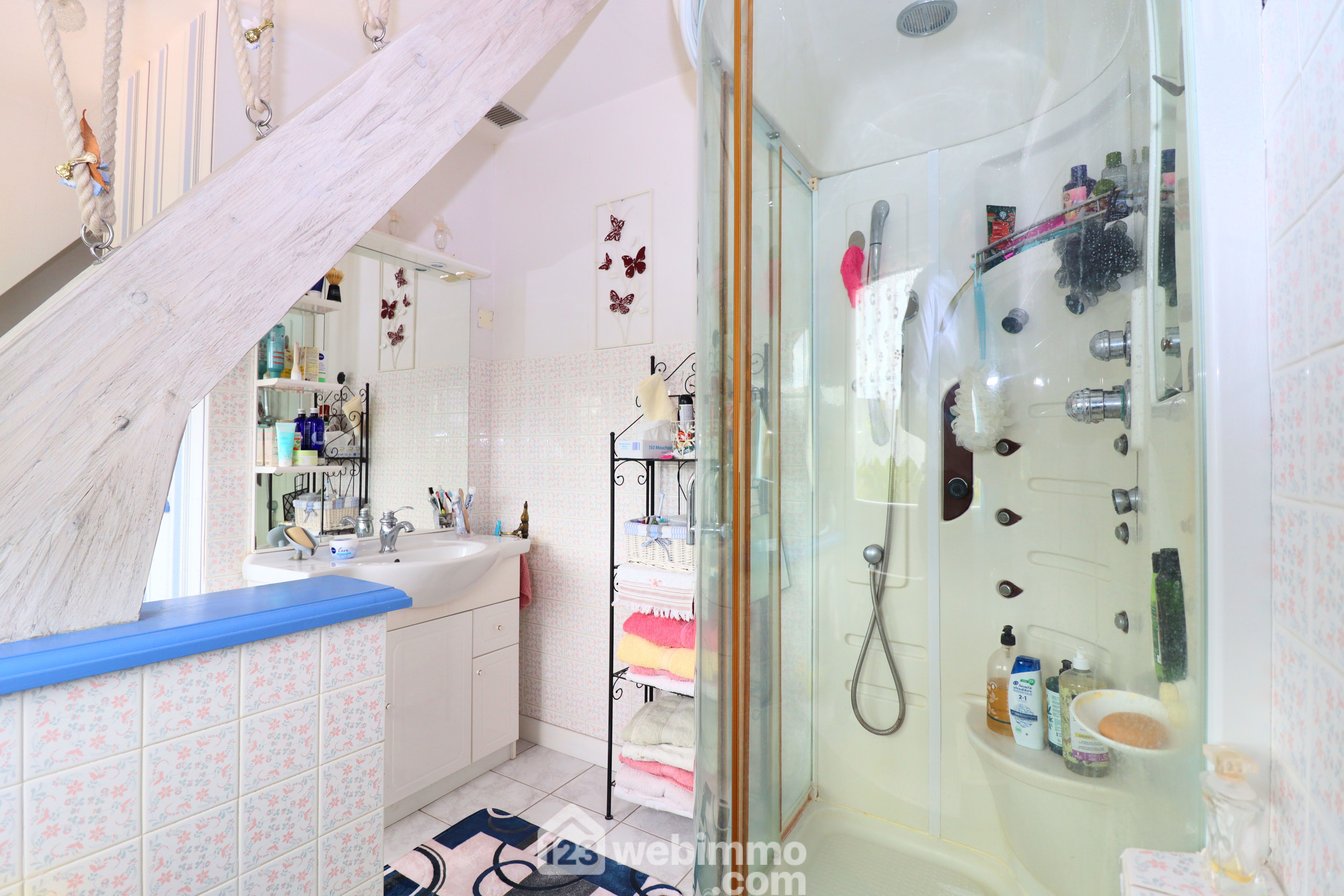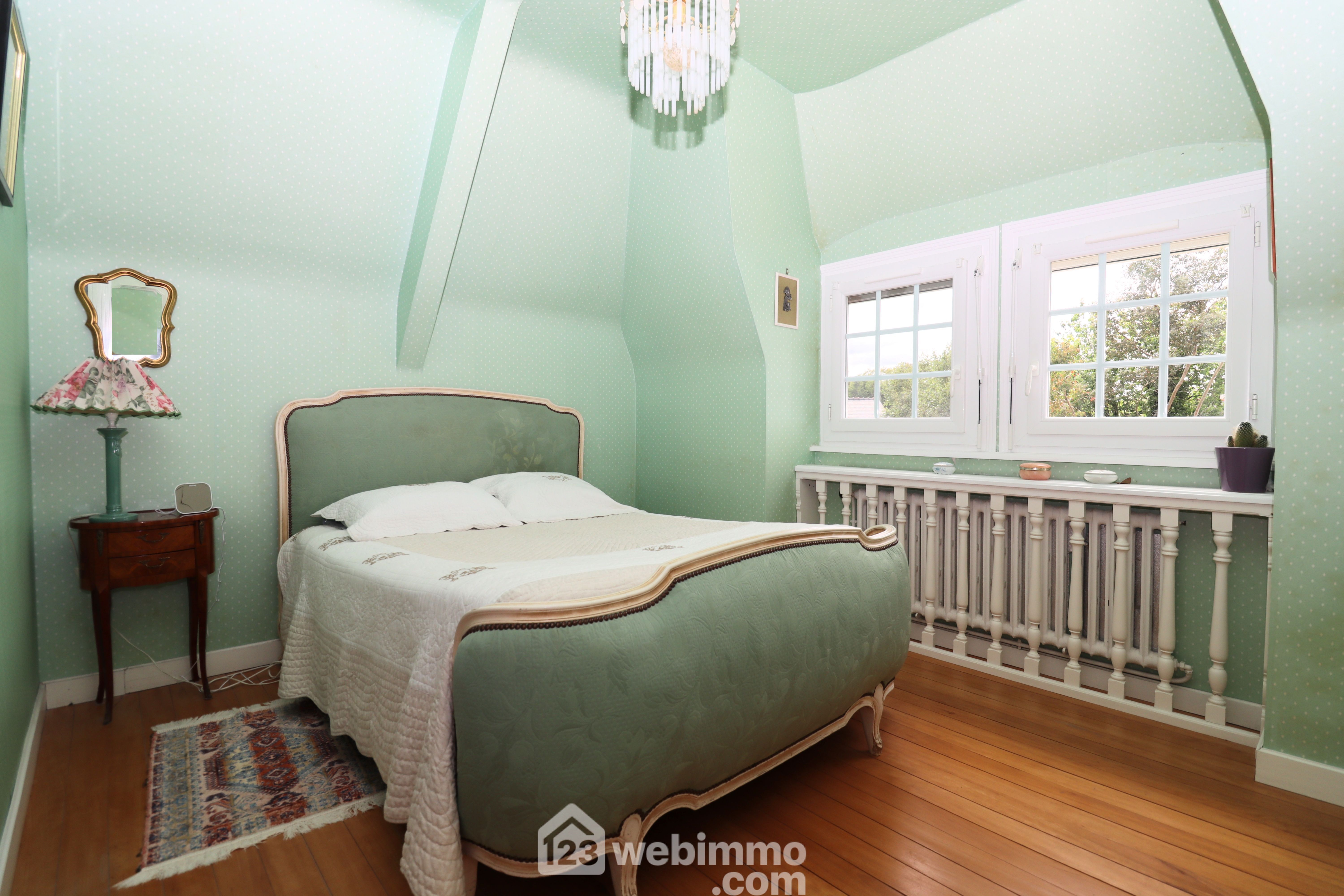 A l'étage, le palier de 9m2 dessert 3 chambres de 8 à 10m2 habitables, un bureau de 7m2 avec dressing, une salle de douches de 8m2 et un WC séparé.