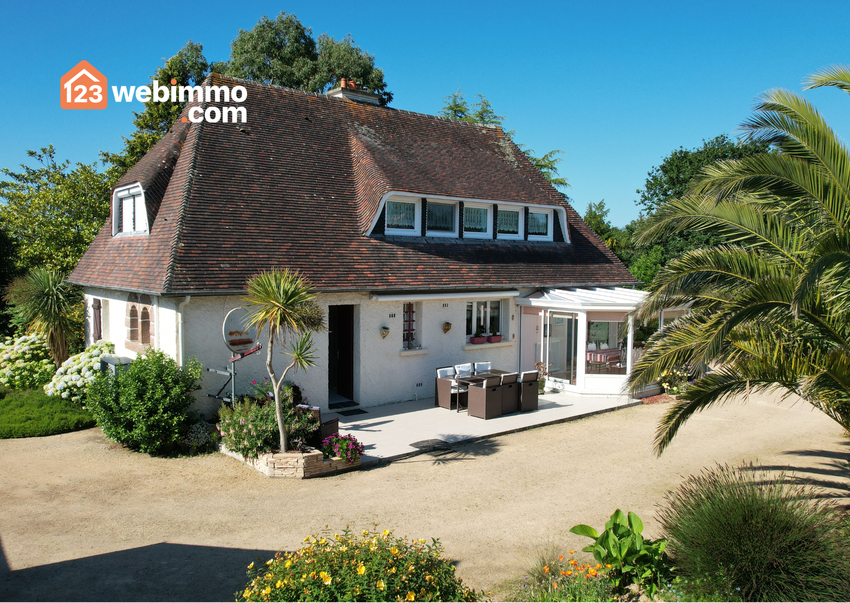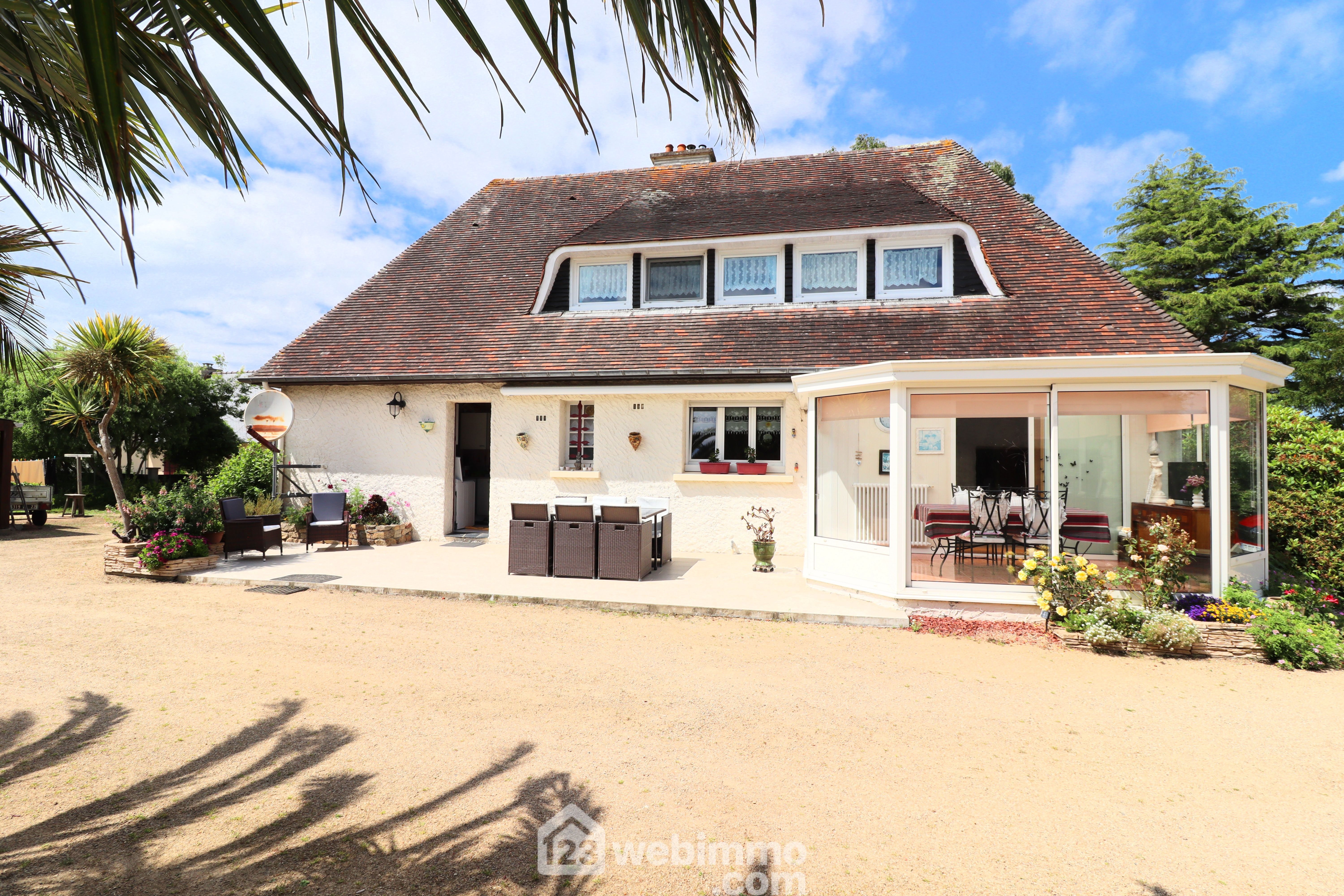 Au calme, à 950m de la mer, maison de 140m2 habitables orientée Sud sur un terrain de 1861m2 avec dépendance aménagée et garages.