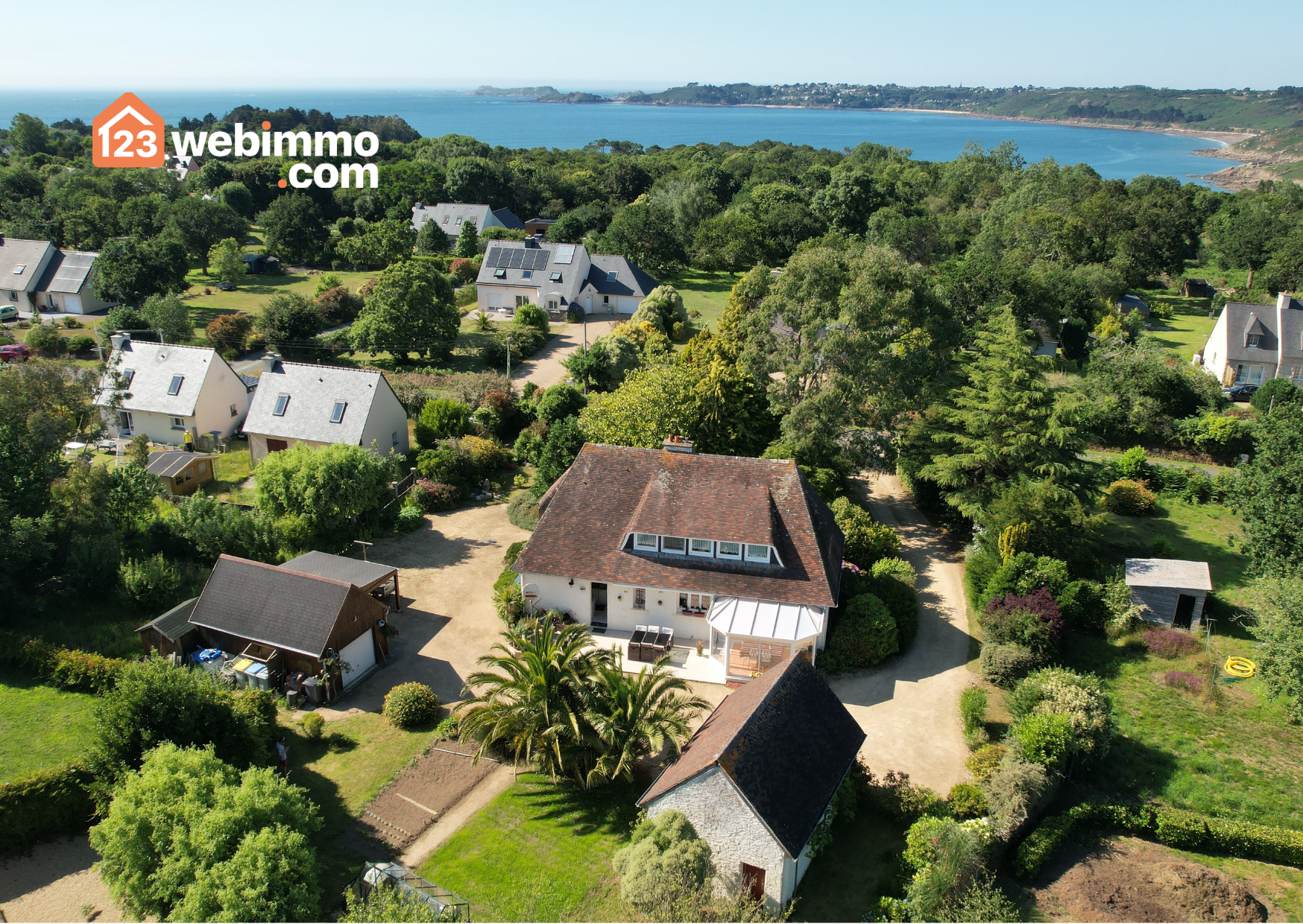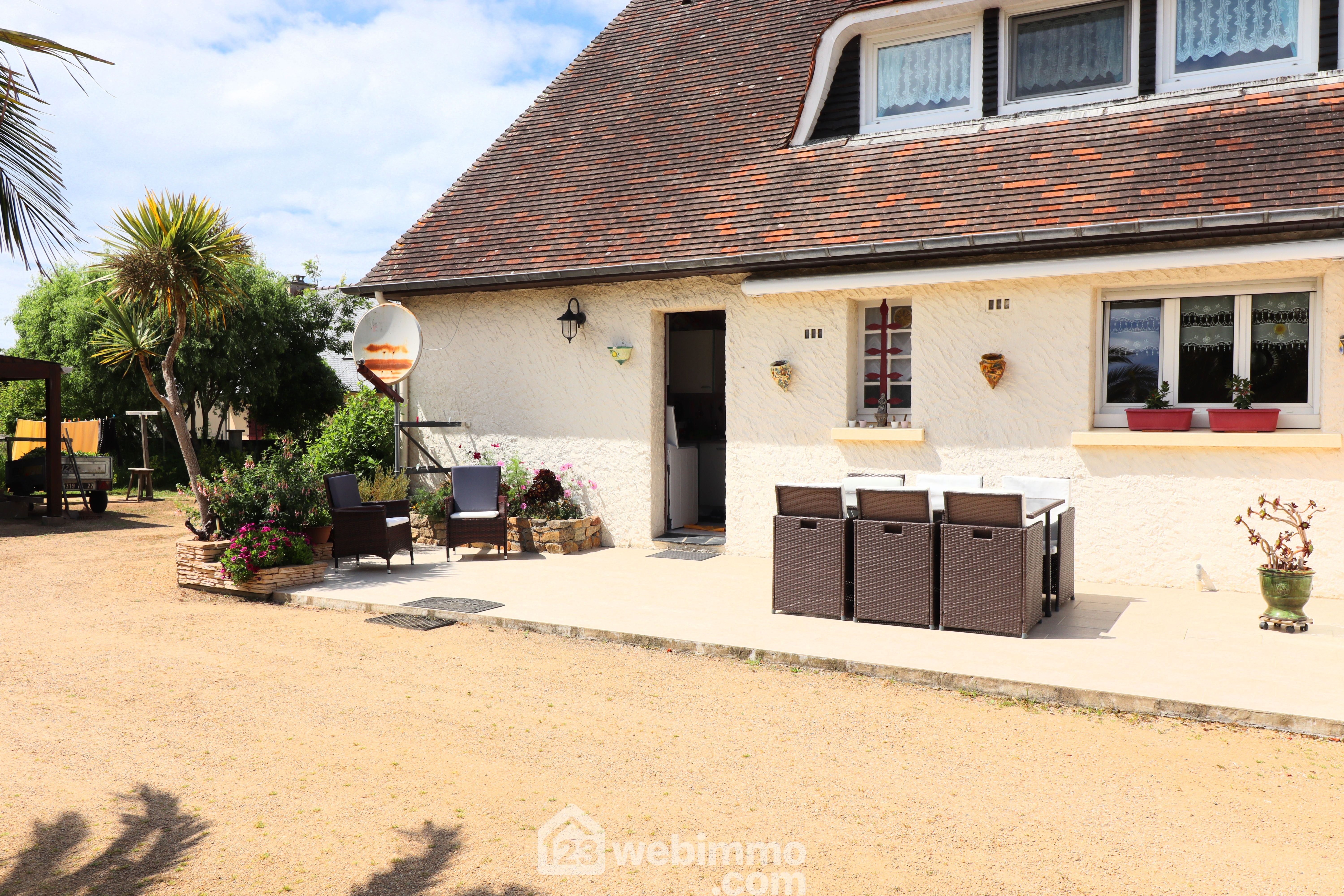 Sur la commune de Trédrez-Locquémeau, sur un terrain 1861m2, à 950m de la mer à pied et à 10km de Lannion et sa gare TGV, maison de 140m2 habitables + studio indépendant, datant de 1970, orientée Sud.