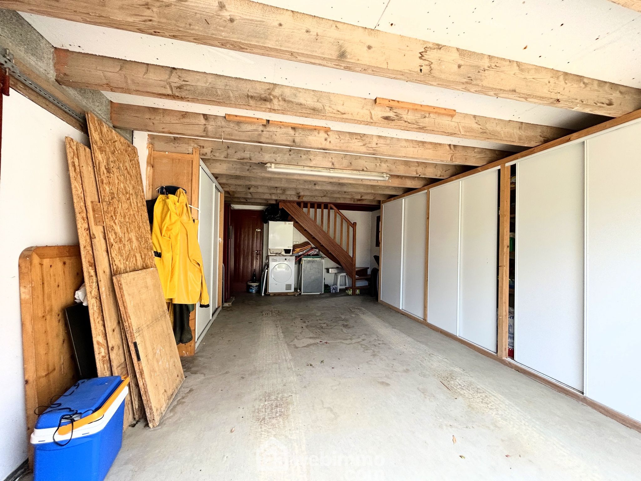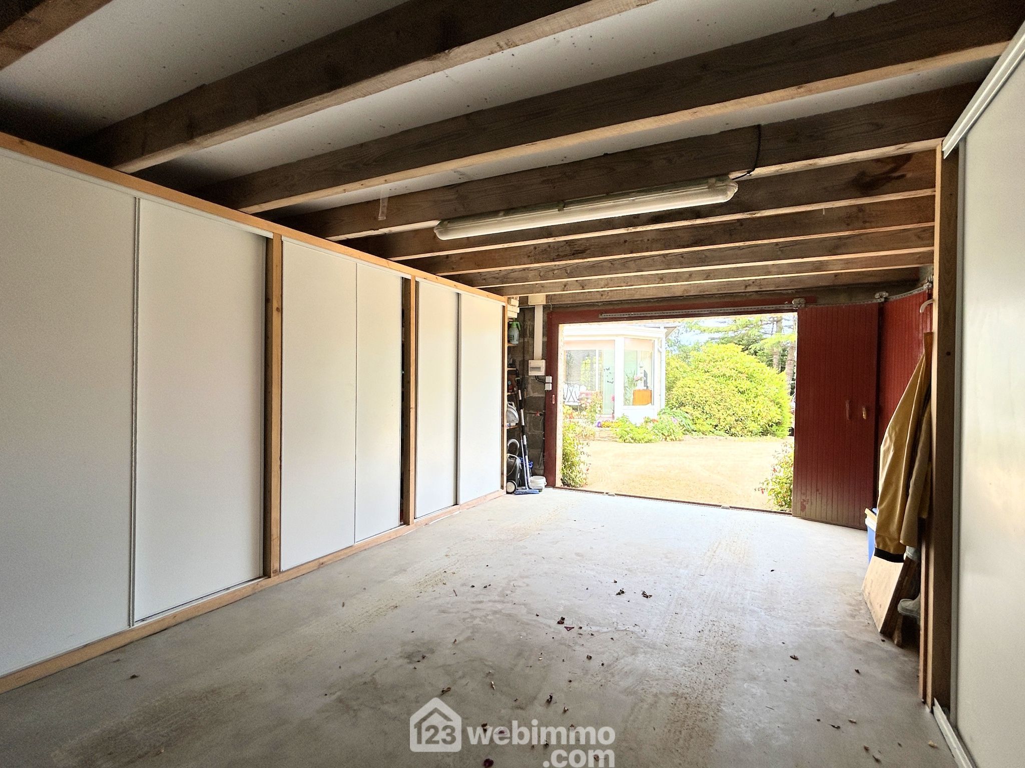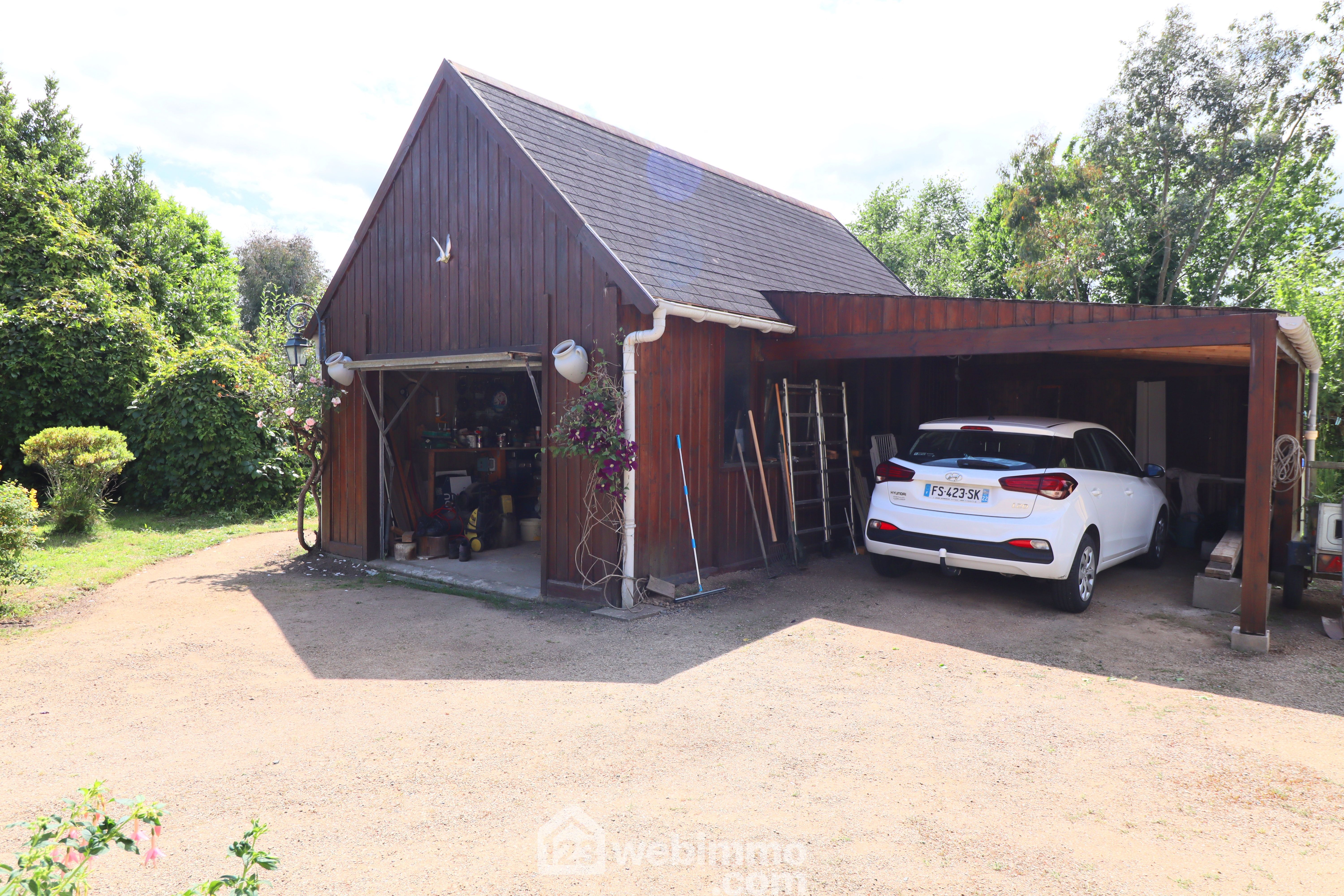 A l'extérieur, la propriété s'étend sur un terrain constructible de 1861m2 paysager et renferme un premier garage de 26m2 qui dispose à l'étage d'un studio comprenant une chambre de 18m2 au sol, 9m2 habitables et un WC séparé. A l'ouest, la propriété comprend un deuxième garage en bois sur dalle béton de 27m2 et un carport de 19m2.