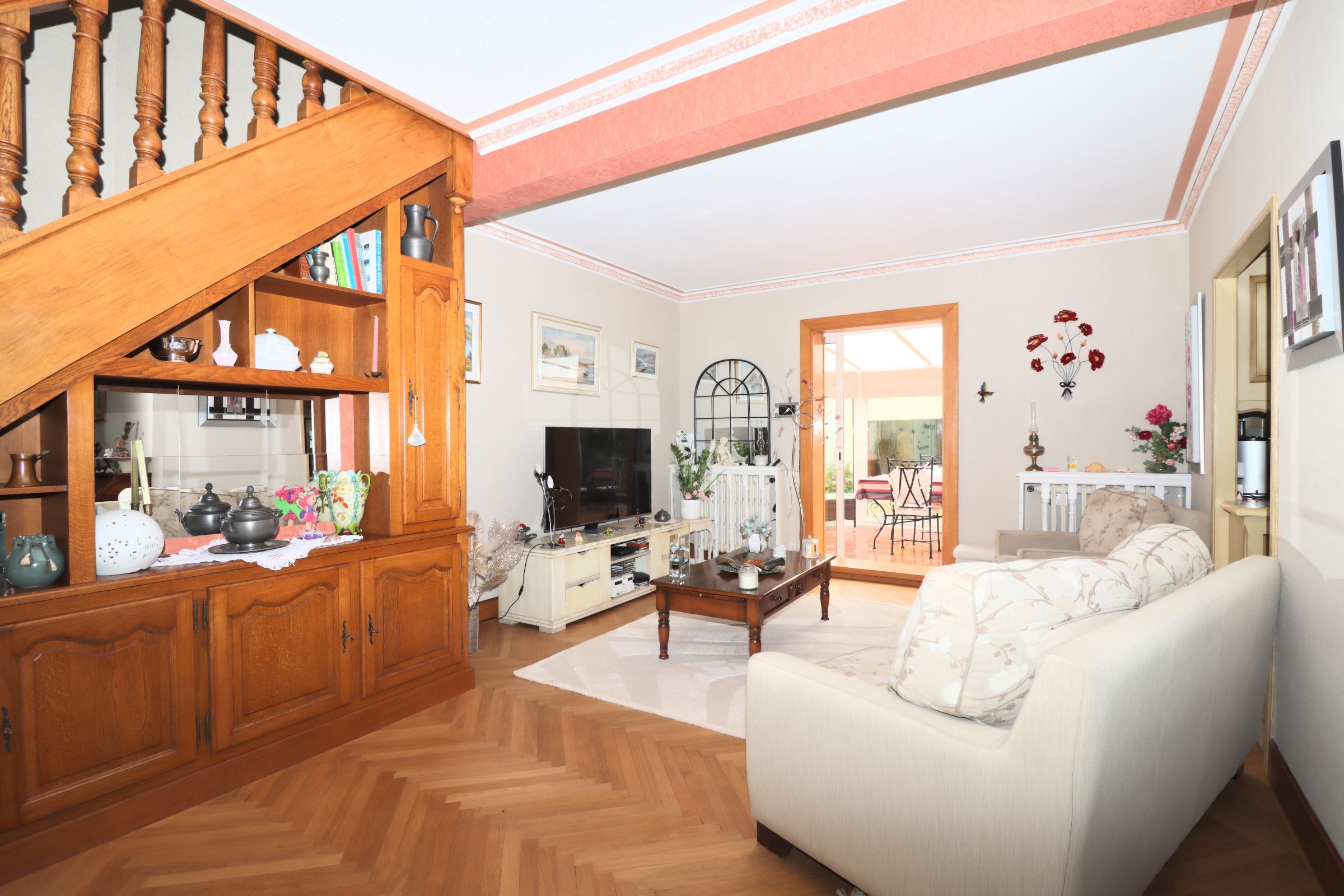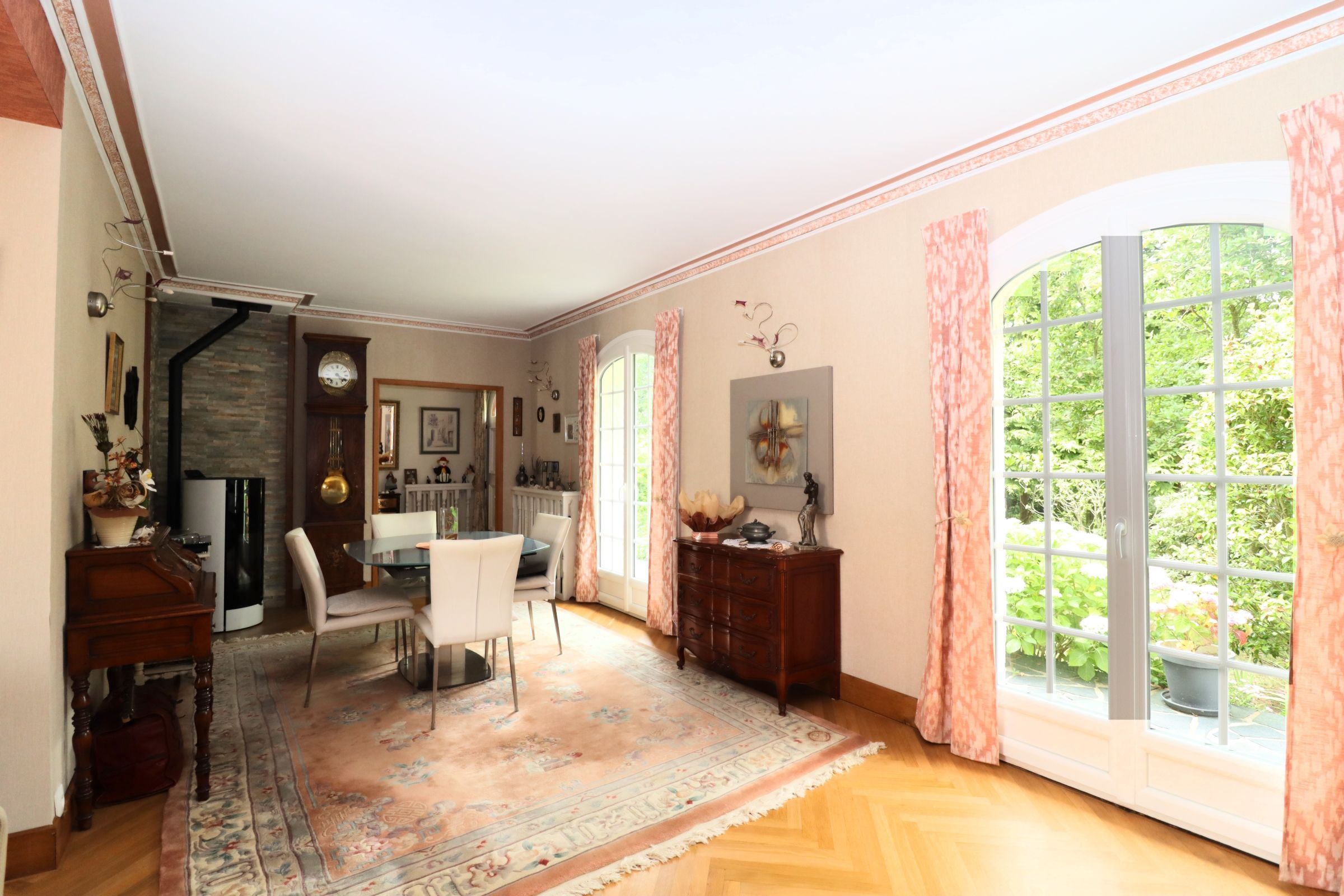 Le rez-de-chaussée se compose d'une entrée de 7m2 desservant une belle pièce de vie salle à manger / salon de 34m2 prolongée d'une lumineuse véranda de 12m2 orientée plein sud. Ce niveau se poursuit par une cuisine indépendante de 11m2, une chambre avec placards intégrés de 13m2 aujourd'hui aménagée en bureau, une arrière cuisine - buanderie de 10m2, un WC séparé, un espace chaufferie.