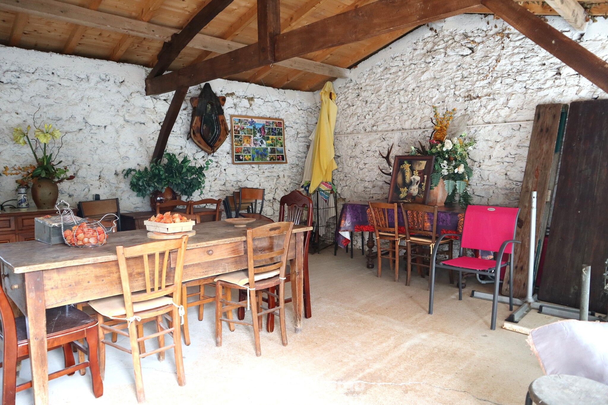 Maison en pierre, 145 m2 habitables, 4 pièces, 3 chambres. Terrain de 3167 m2 avec nombreuses dépendances.