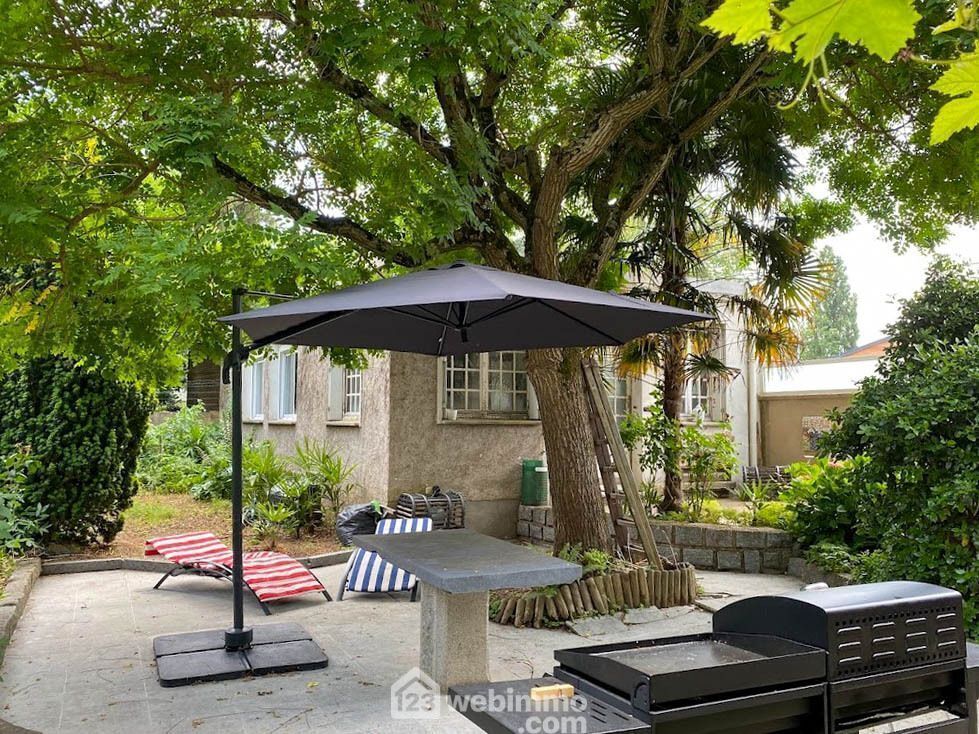 Le jardin arboré avec une terrasse offre un espace extérieur paisible et intime, idéal pour vos moments de détente après une journée active en ville.